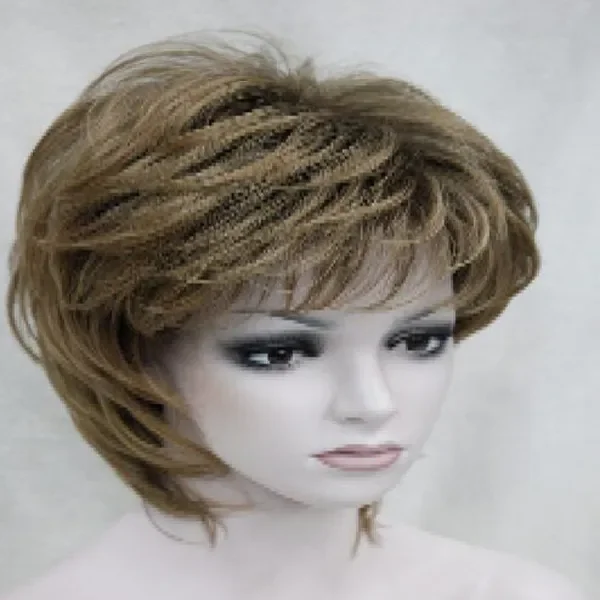 New Women Short Ladies Mixed Golden Brown Curly Daily Hair Wig