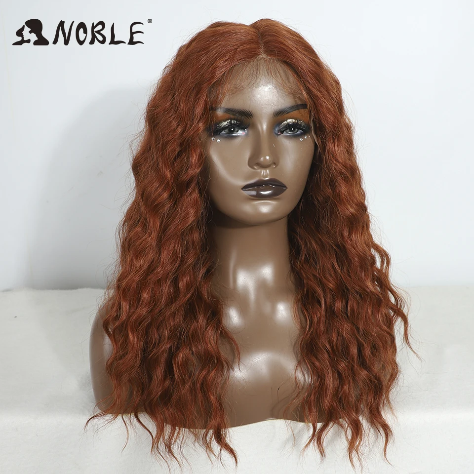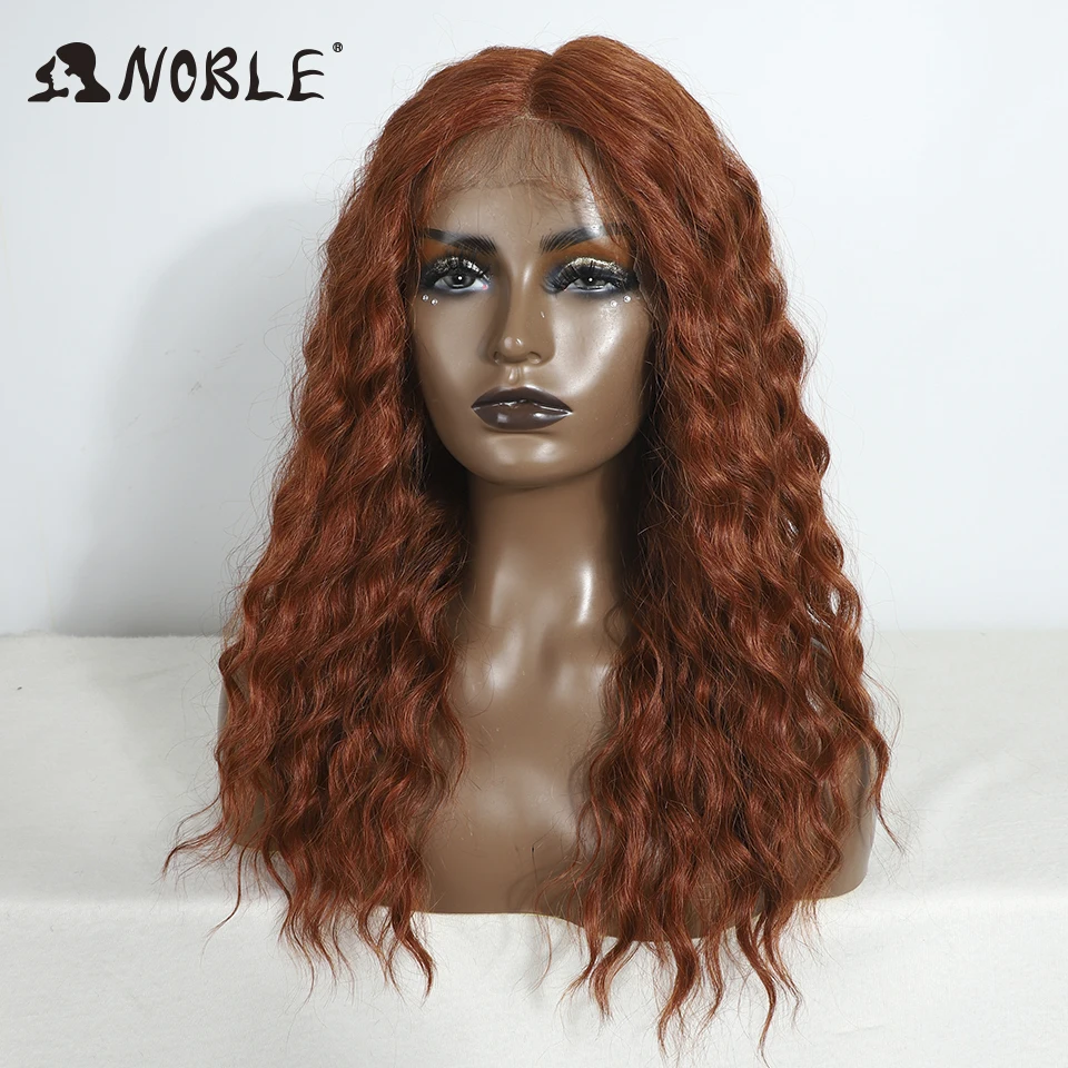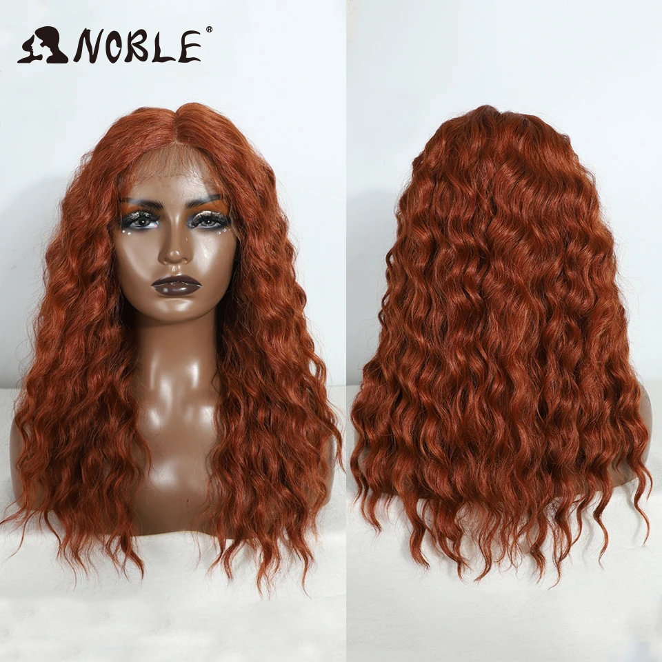 Noble Cosplay Synthetic Lace Front Wig 20" Baby Hair Curly Wig Medium Part Red Lace Wig For Women Ombre Blonde Lace Front Wig