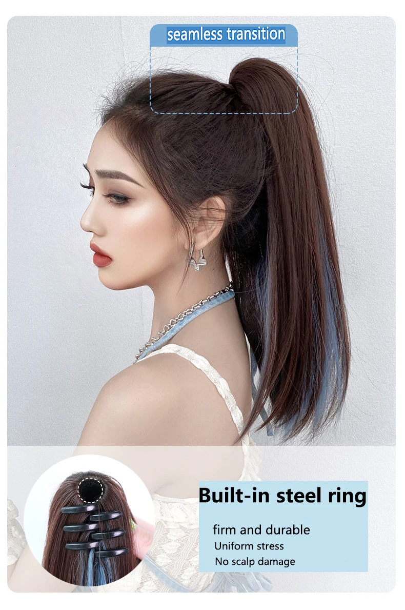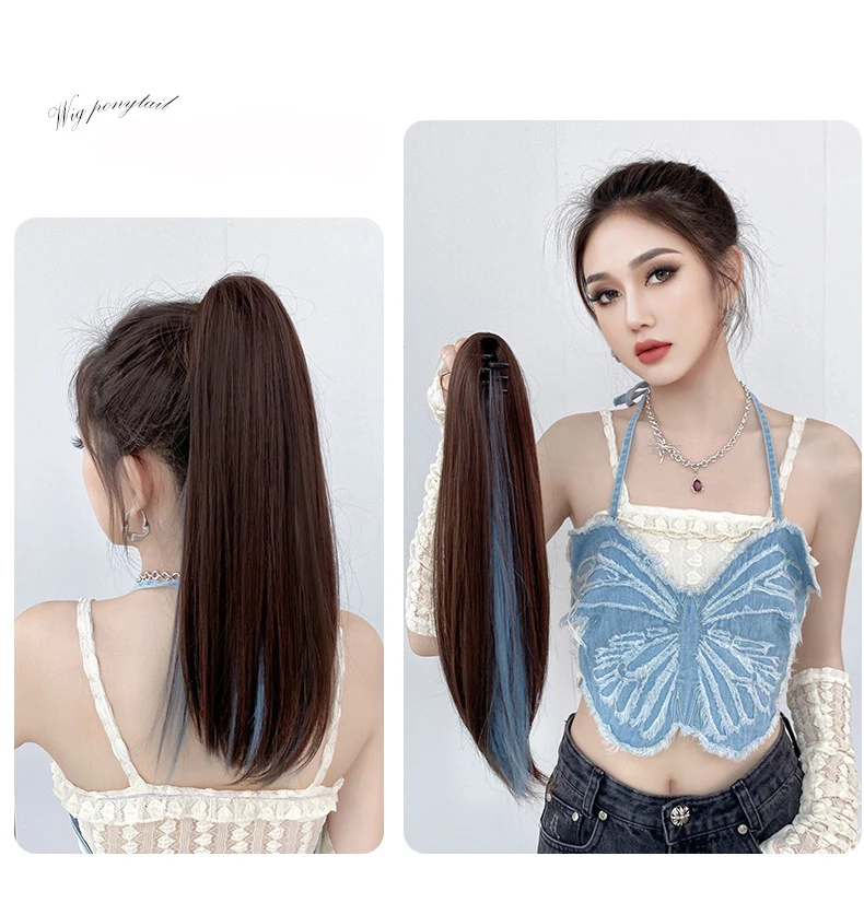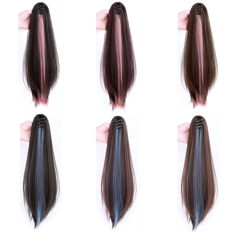 Ombre Color Straight Claw Clip On Ponytail Hair Extension Synthetic Ponytail Extension Hair For Women Pony Tail Hair Hairpiece