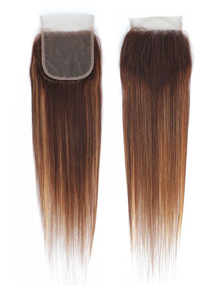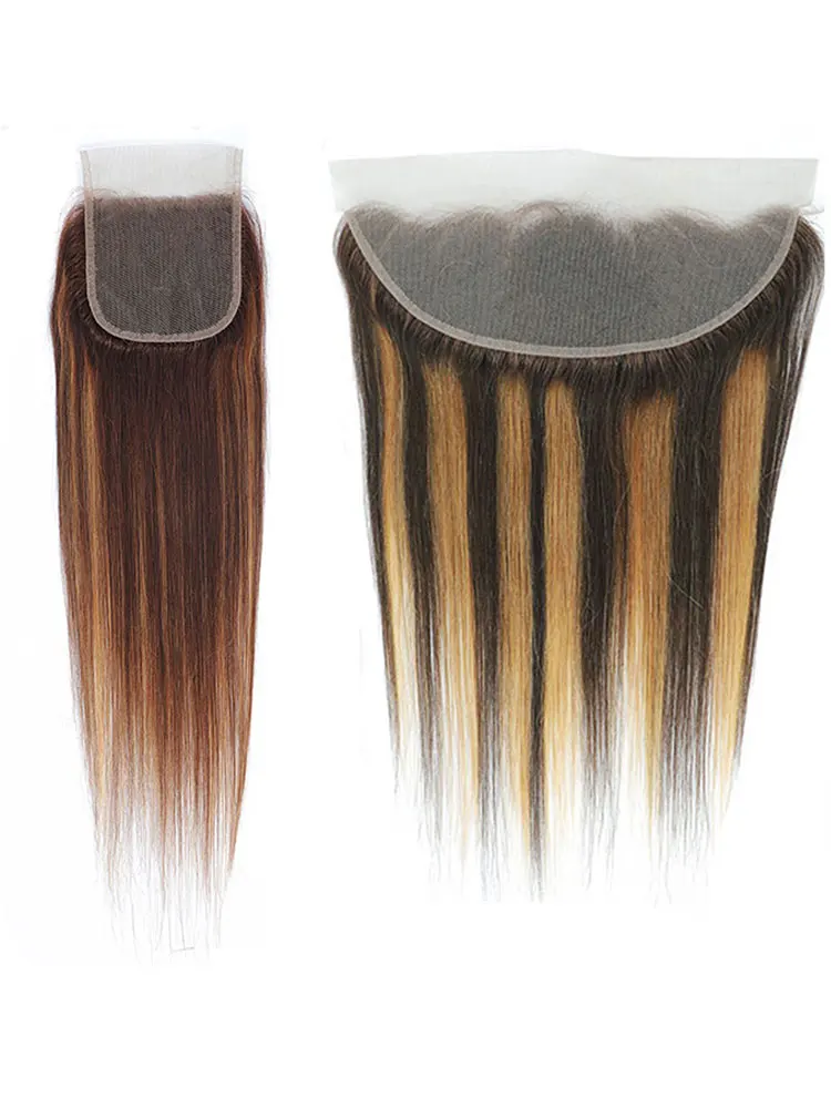 P4/27 Highlight Lace Closure Human Hair Ombre Brown Blonde Ear to Ear 13x4 Lace Frontal Straight Human Hair 4x4 Lace Closure