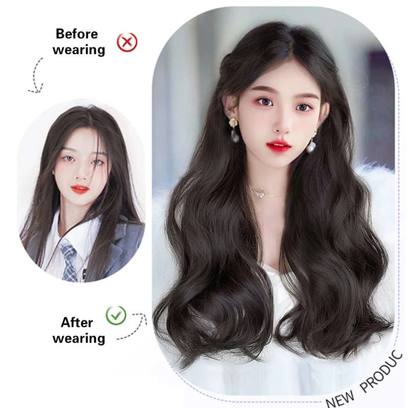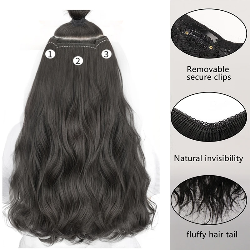 PAGEUP Synthetic Hair extension Wavy hair Heat-Resistant Fiber Fake Hair Wig Long Hair Piece with two clips Three-piece suit