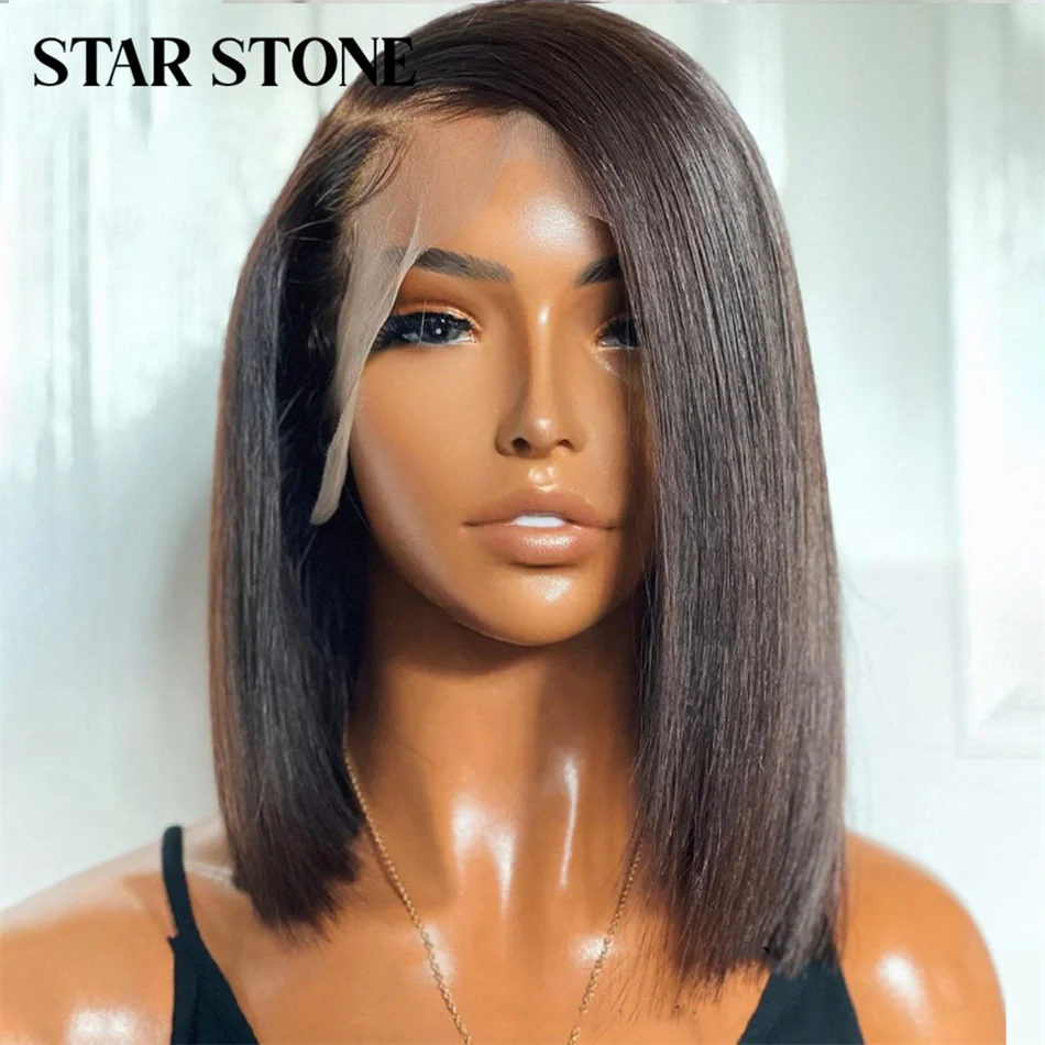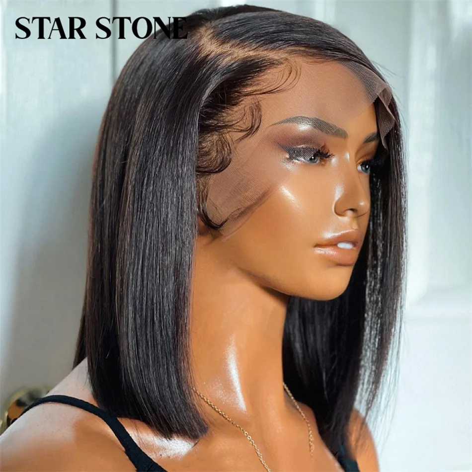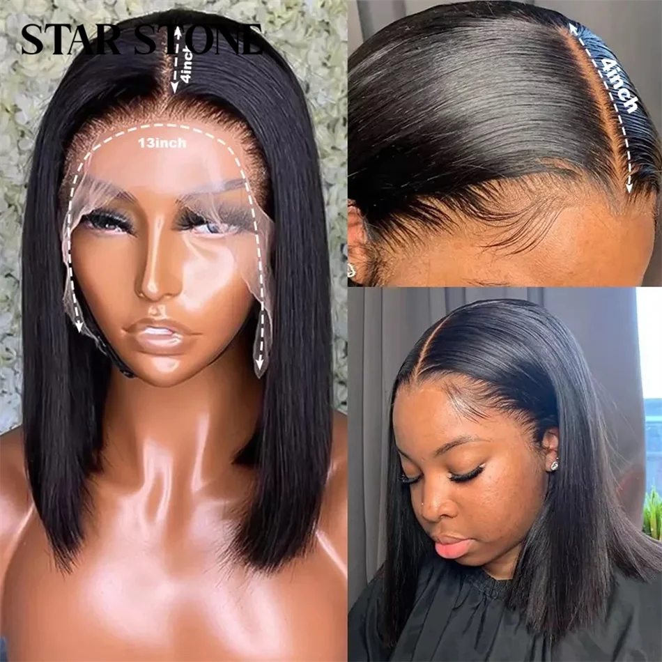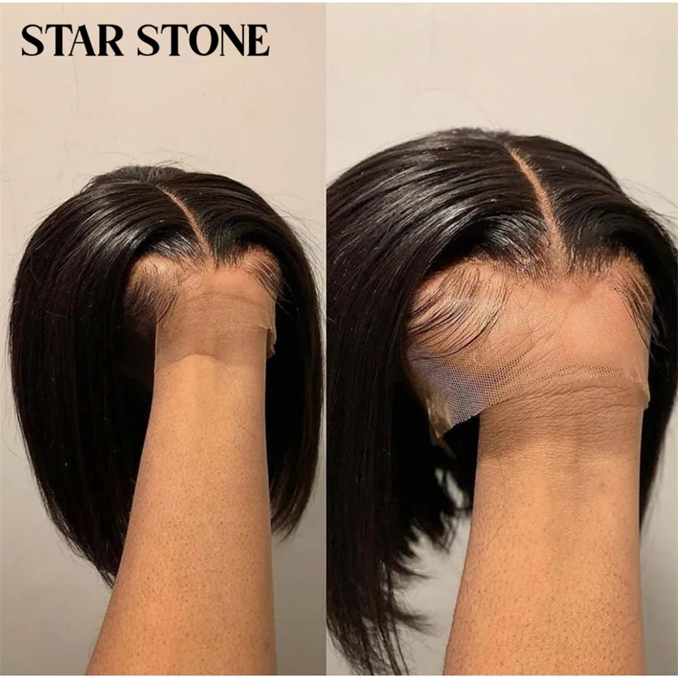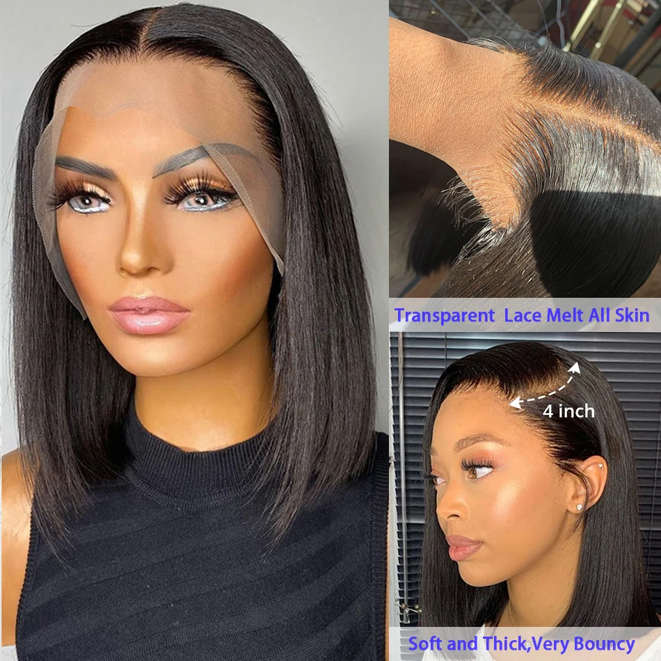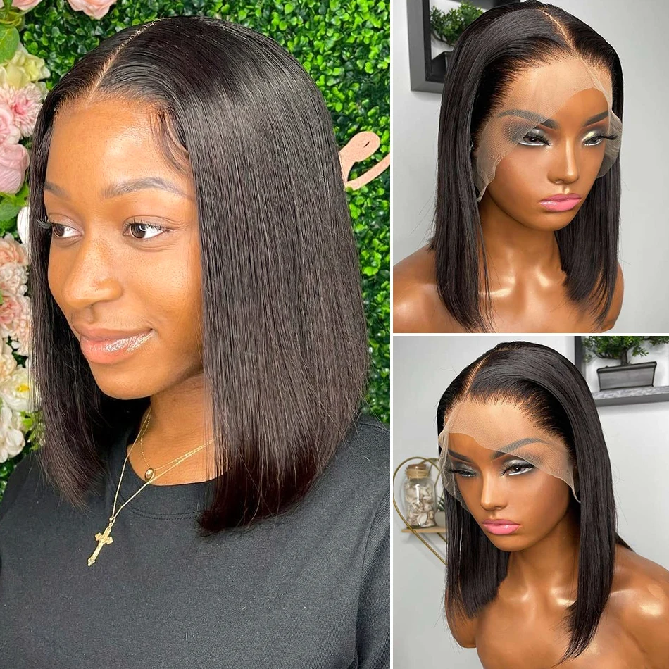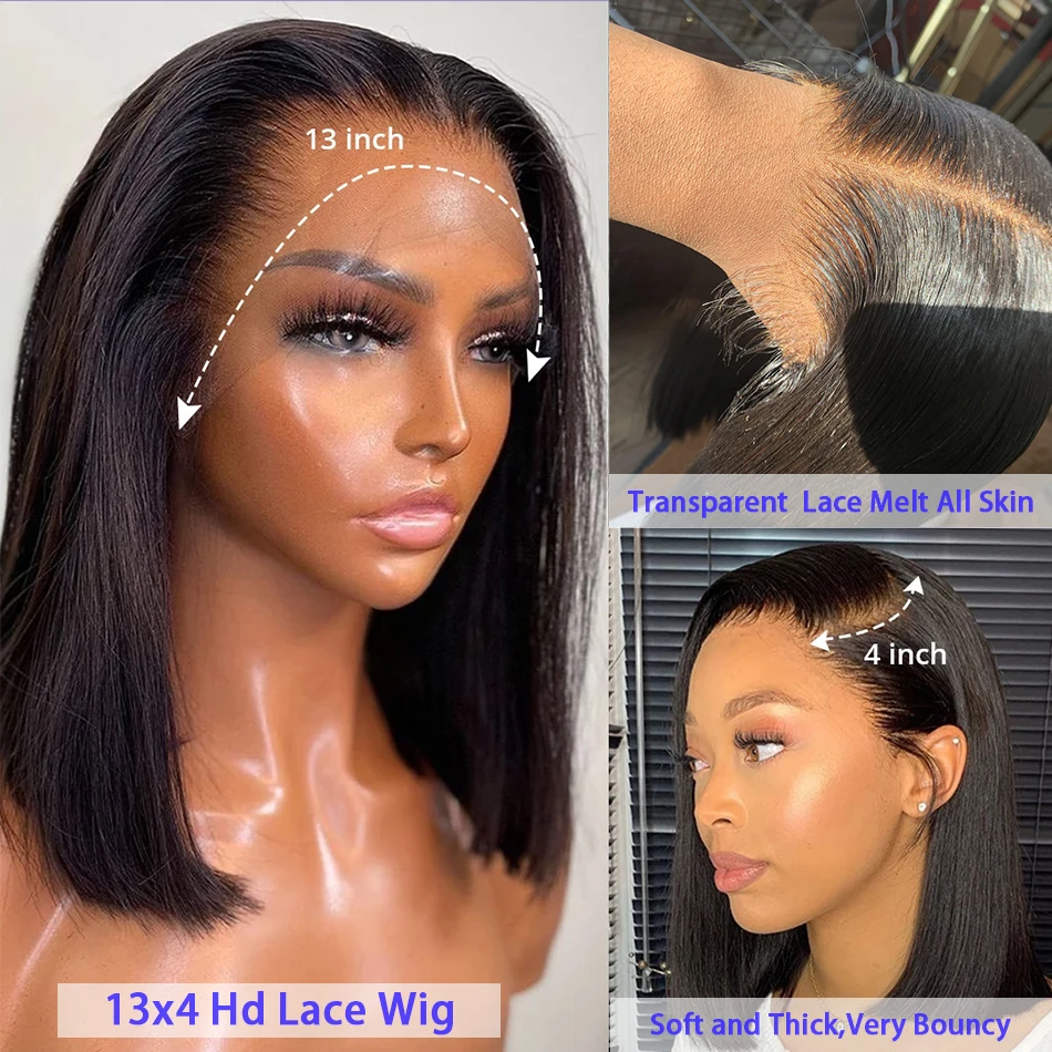 Peruvian Short Bob Wig Straight 13x4 Lace Frontal Human Hair Wigs for Women Pre Pluck Transparent Bone Straight Lace Frontal Wig