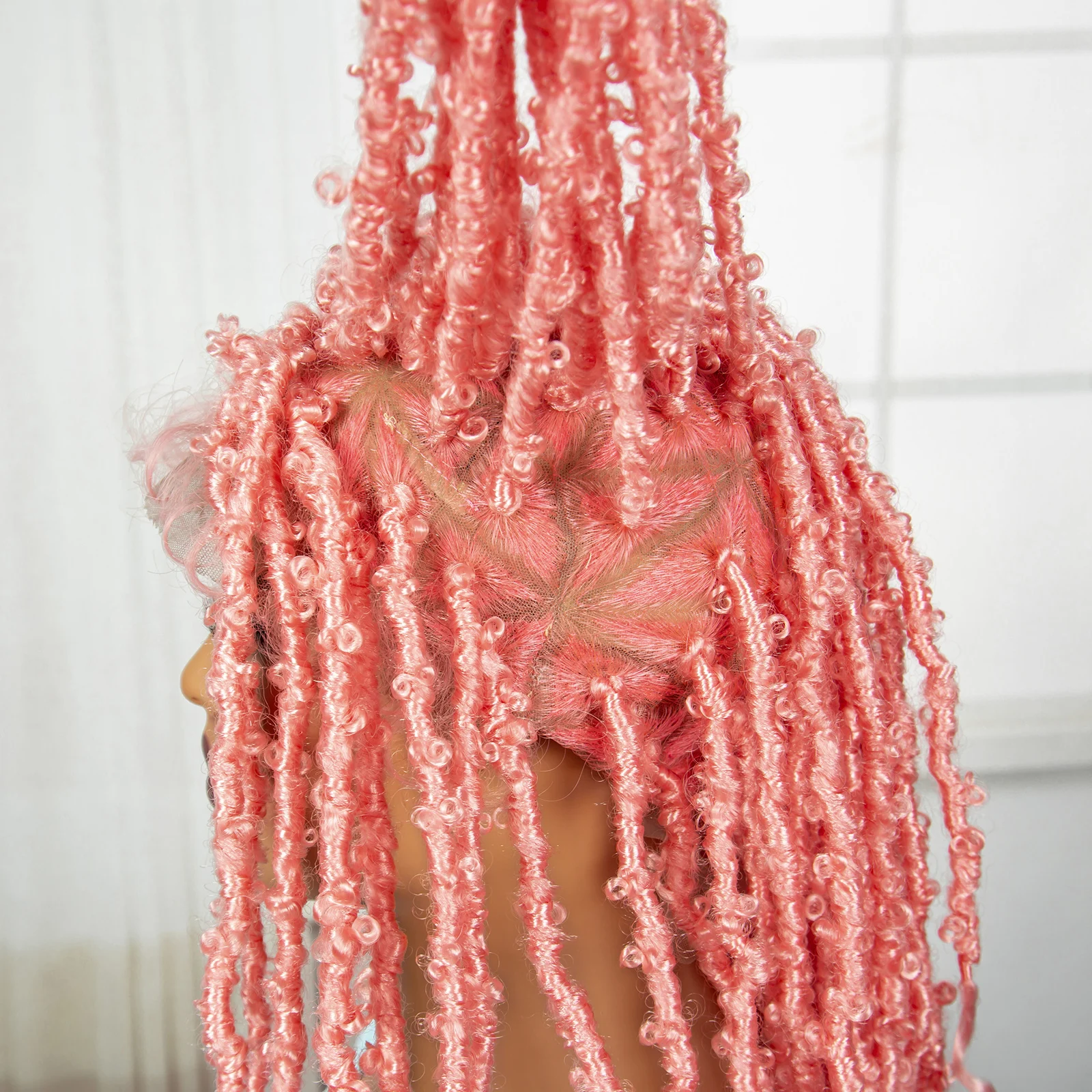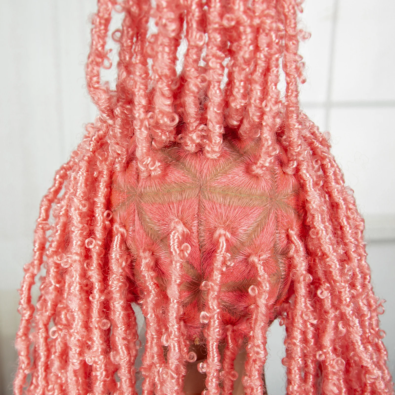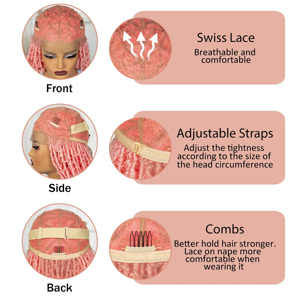 Pink 22 Inch Synthetic Braided Wigs Transparent Full Lace Braided Wigs with Curly Ends Knotless Box Braids Wigs with Baby Hair