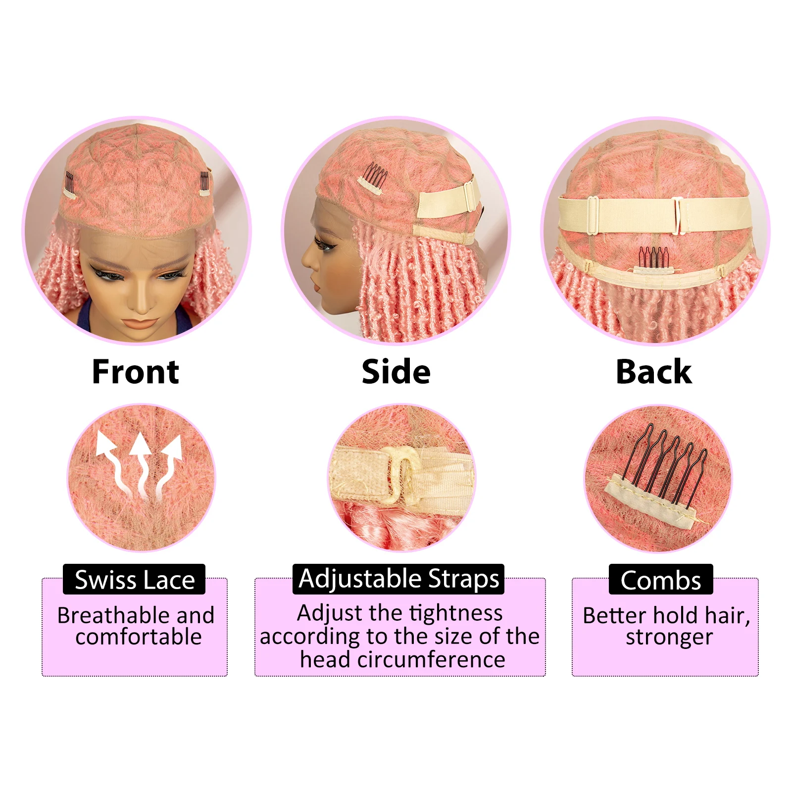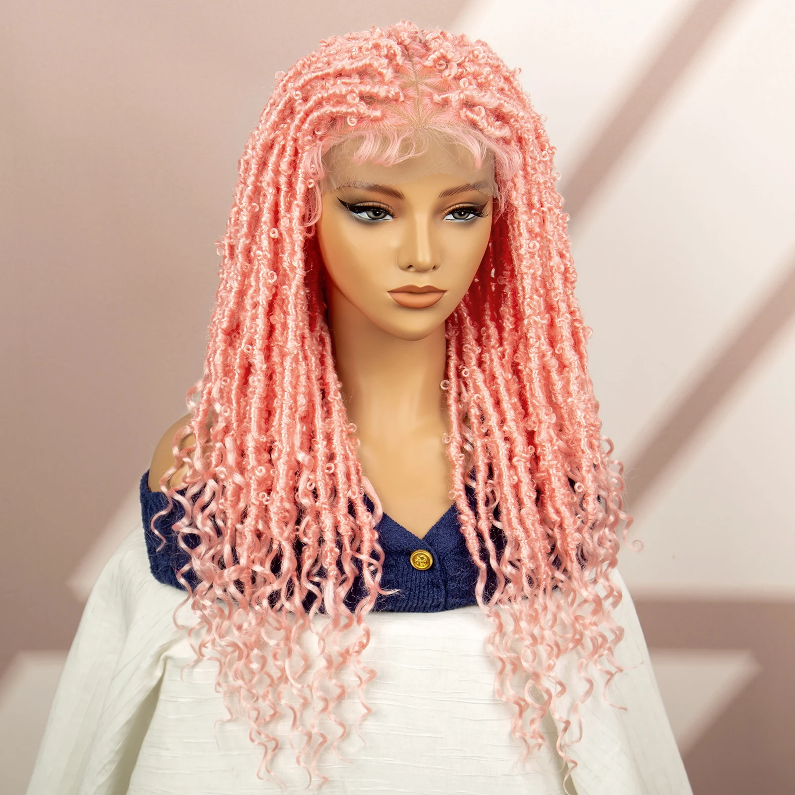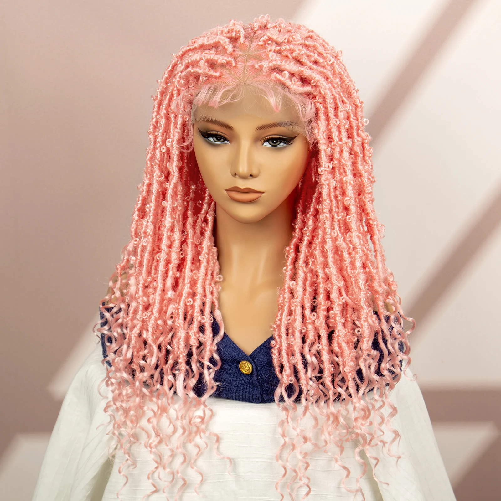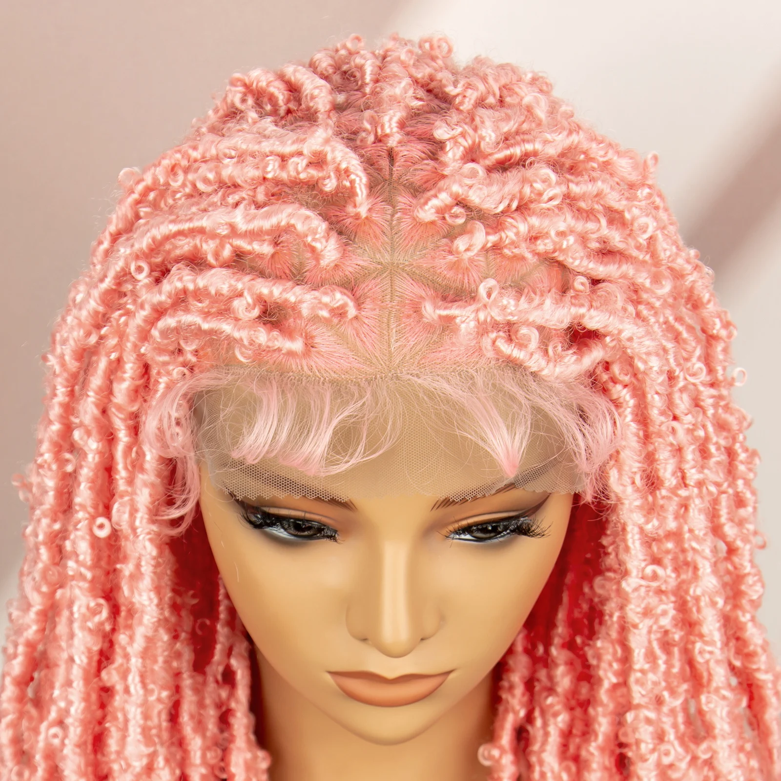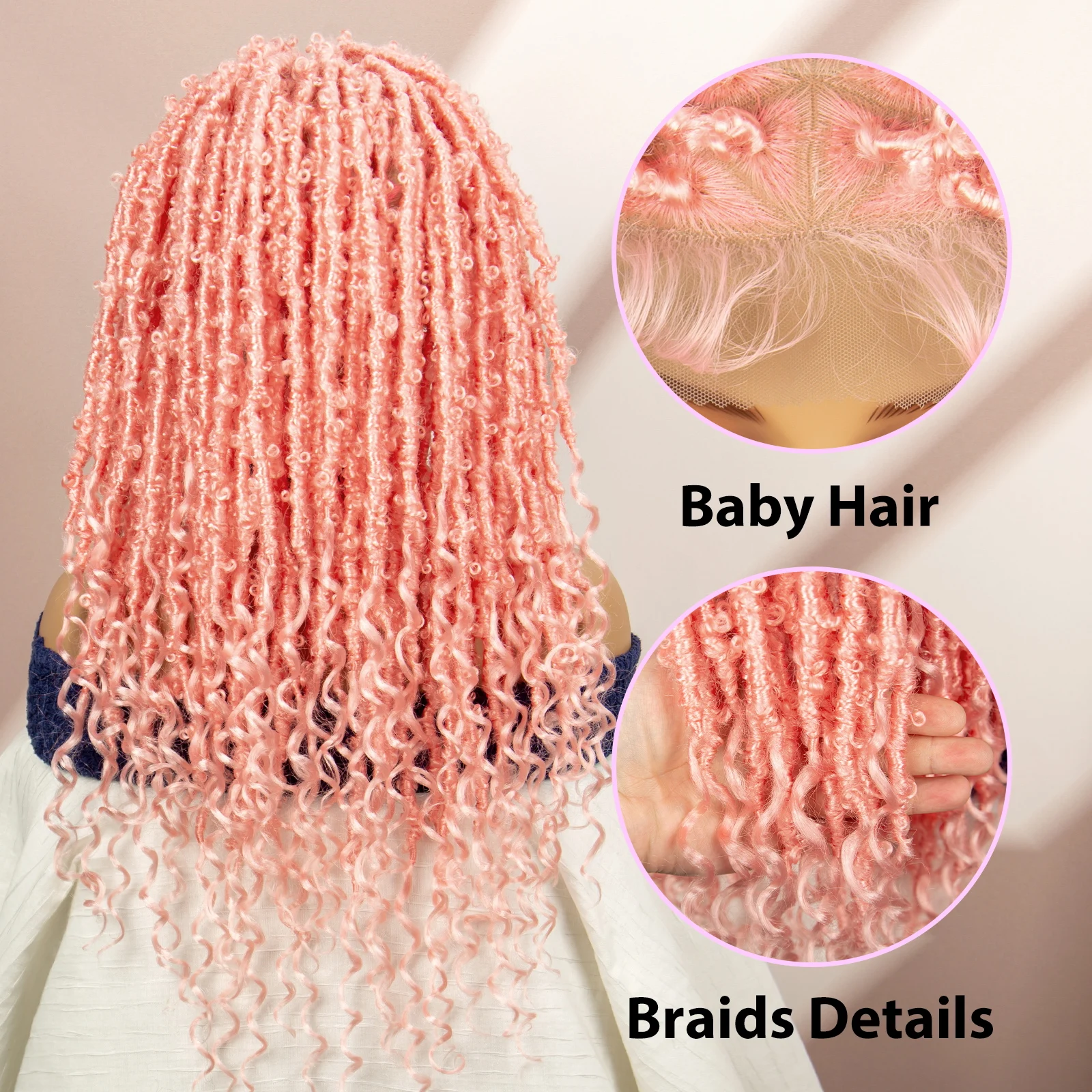 Pink Synthetic Braided Wigs Butterfly Locs Braids Wigs Full lace Braiding Wigs with Baby Hair Lightwight Wigs for Afican Women
