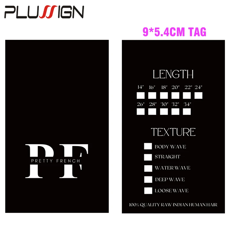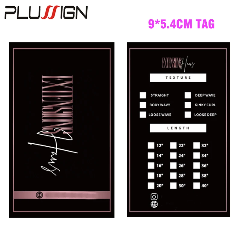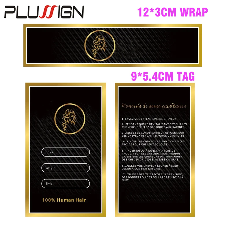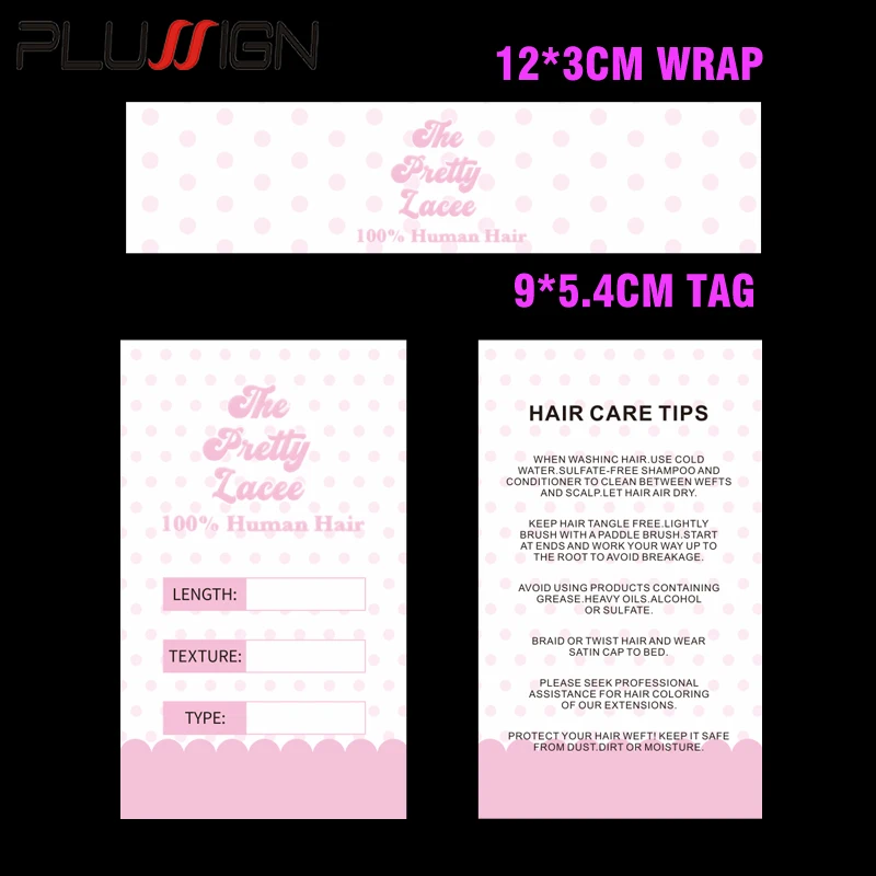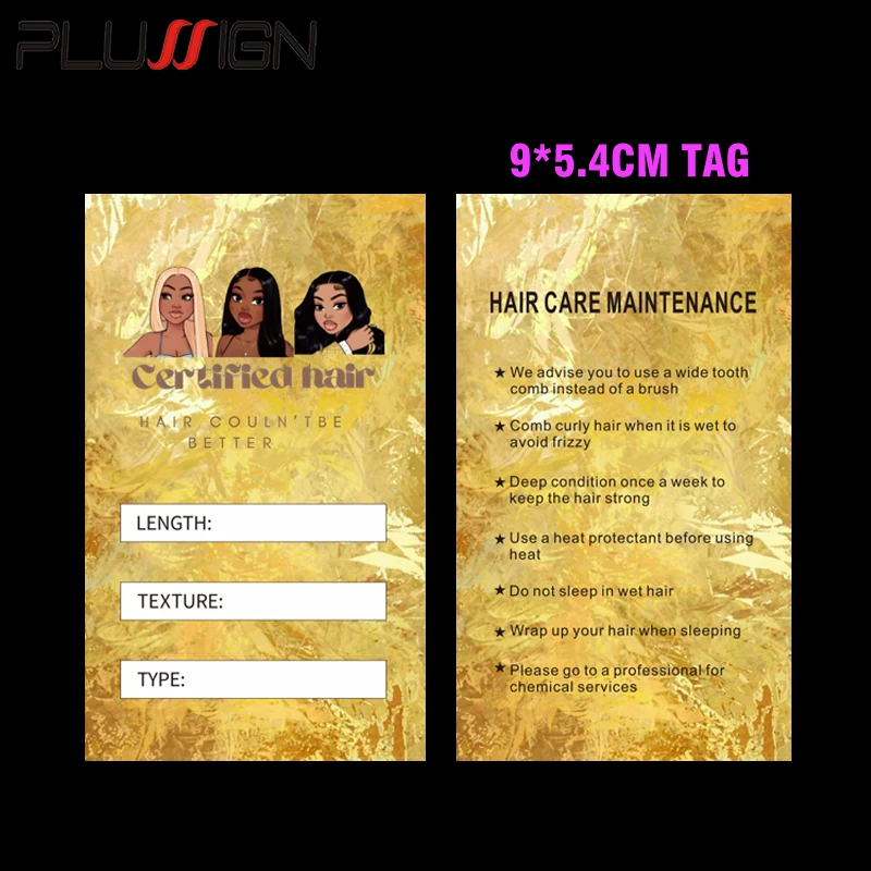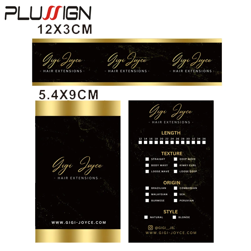 Plussign Wig Tags And Labels Custom Packaging Hair Tags For Bundles 12*3Cm Self-Adhesive Label 9*5.4Cm Hair/Wig Hang Tags 200Pcs