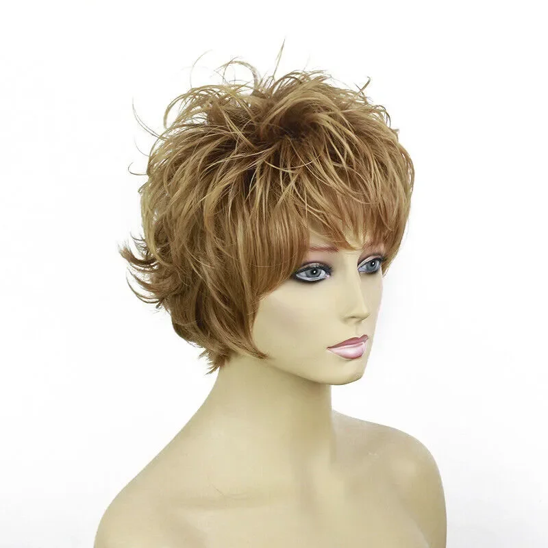 Popular Short Mixed Blonde Brown Wavy Cosplay Hair Wig