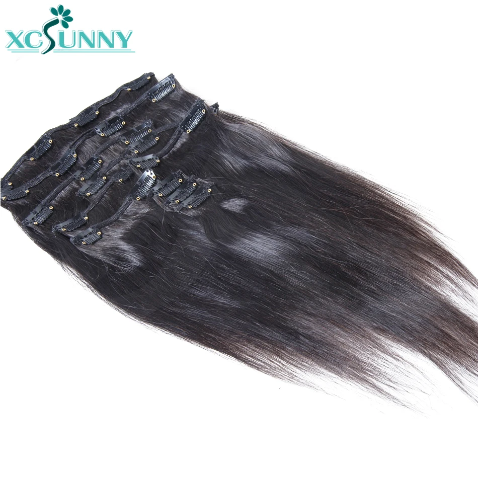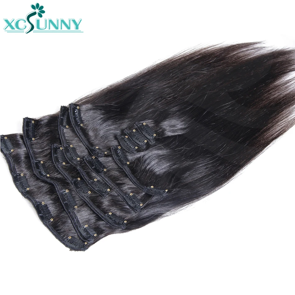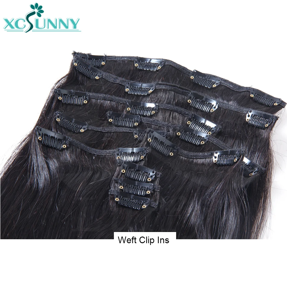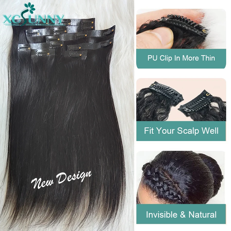 PU Clip In Human Hair Extensions Burmese Weft Clip Ins Straight Hair Extensions For Black Women 3 Set For A Full Head
