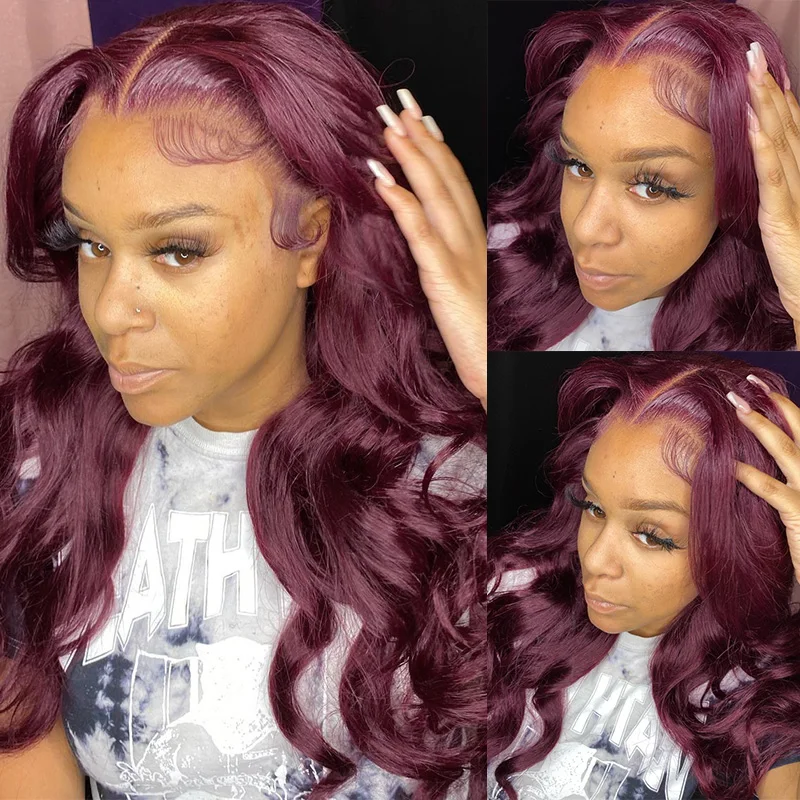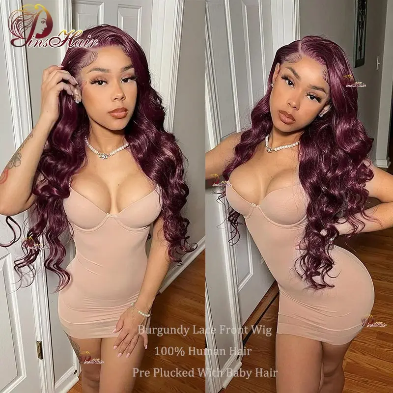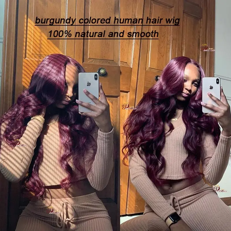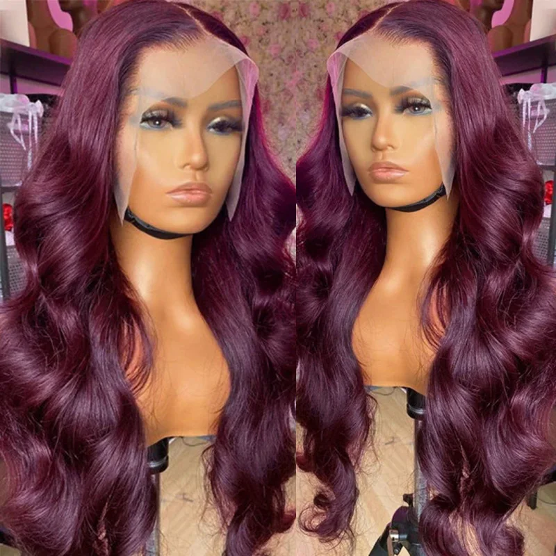 Red Body Wave Lace Front Human Hair Wigs 13x6 Transparent Lace Frontal Wig Burgundy Color Remy Human Hair Pre Plucked 34 inches