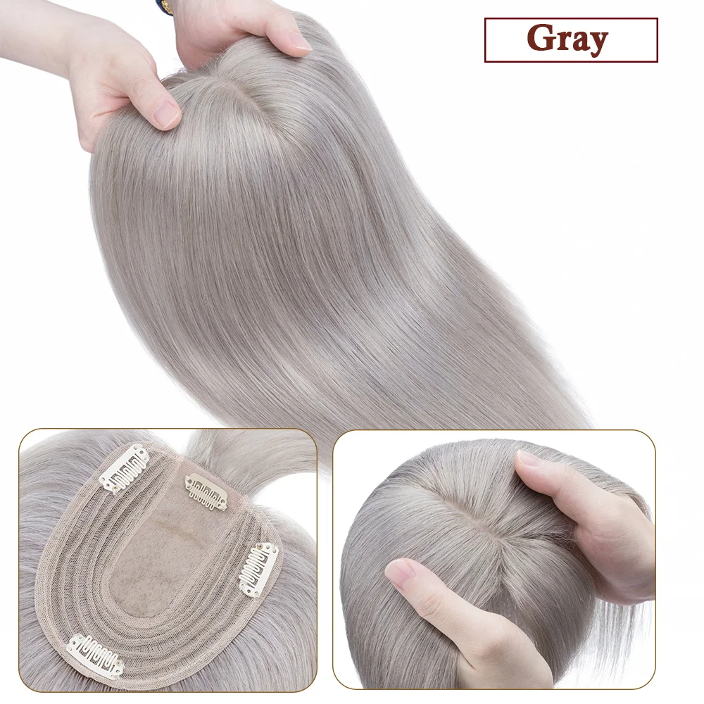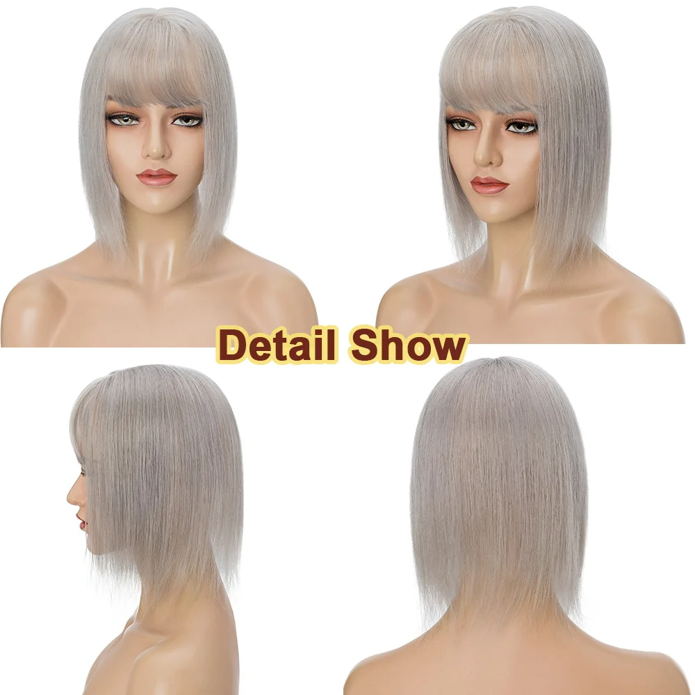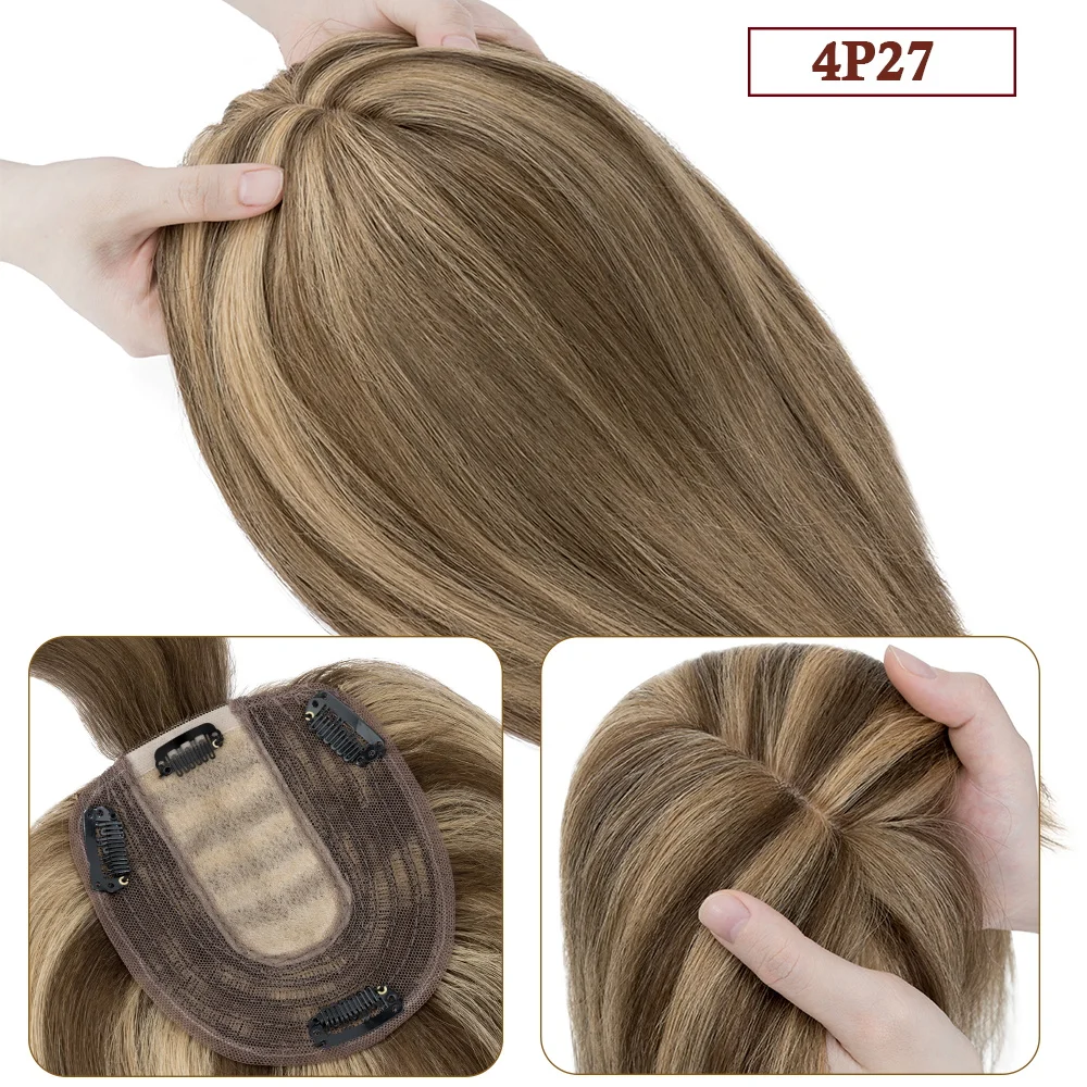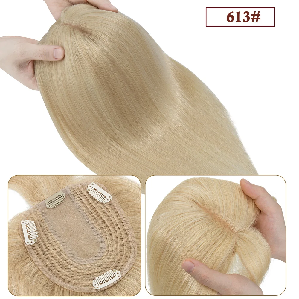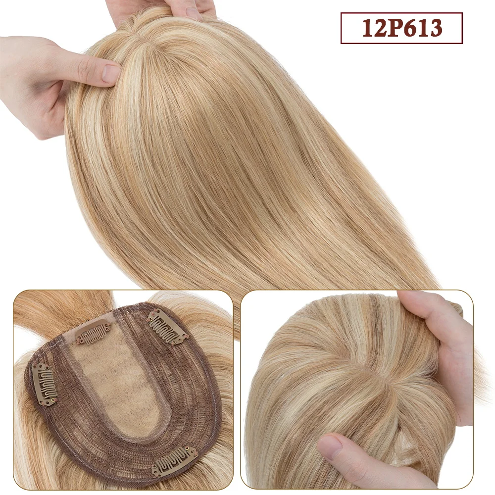 Rich Choices 10x12cm Human Hair Toppers With Bangs Natural Silk Base Clip in Topper Top Hair in Hair Extension for Women