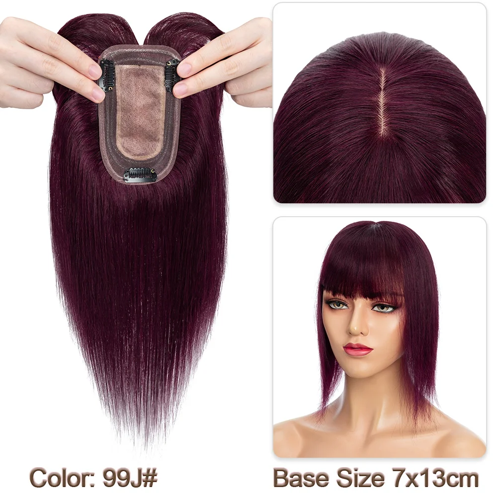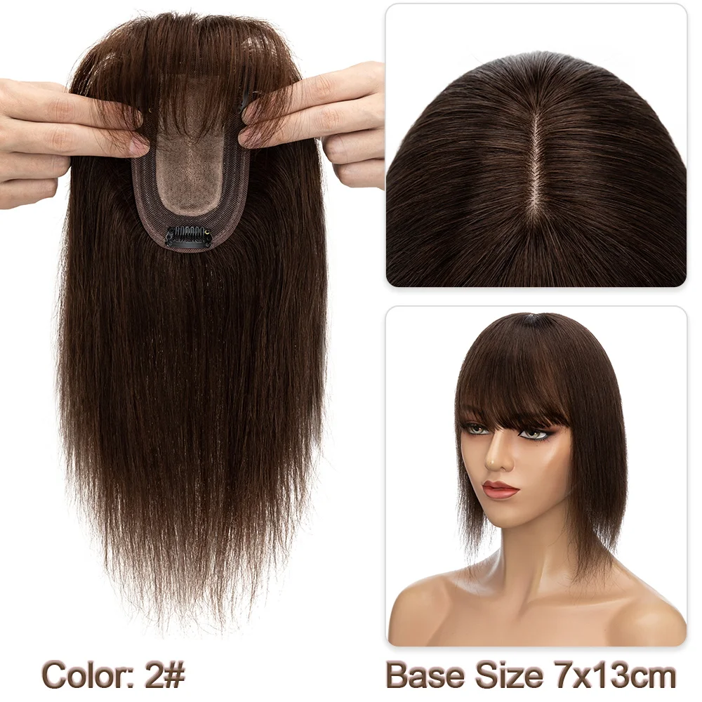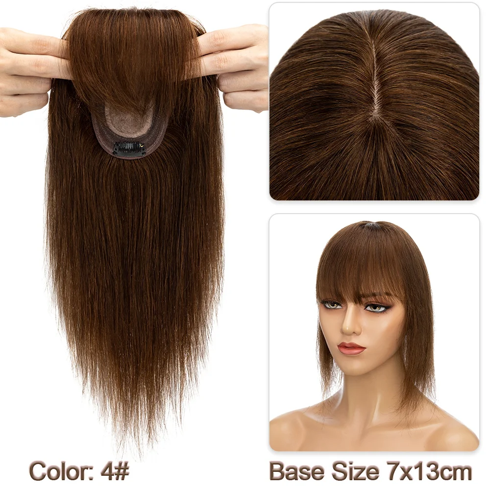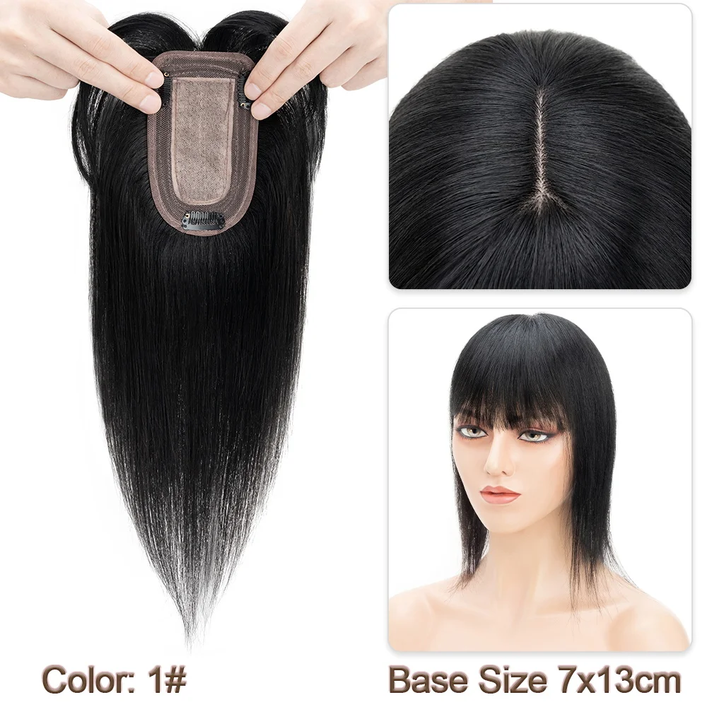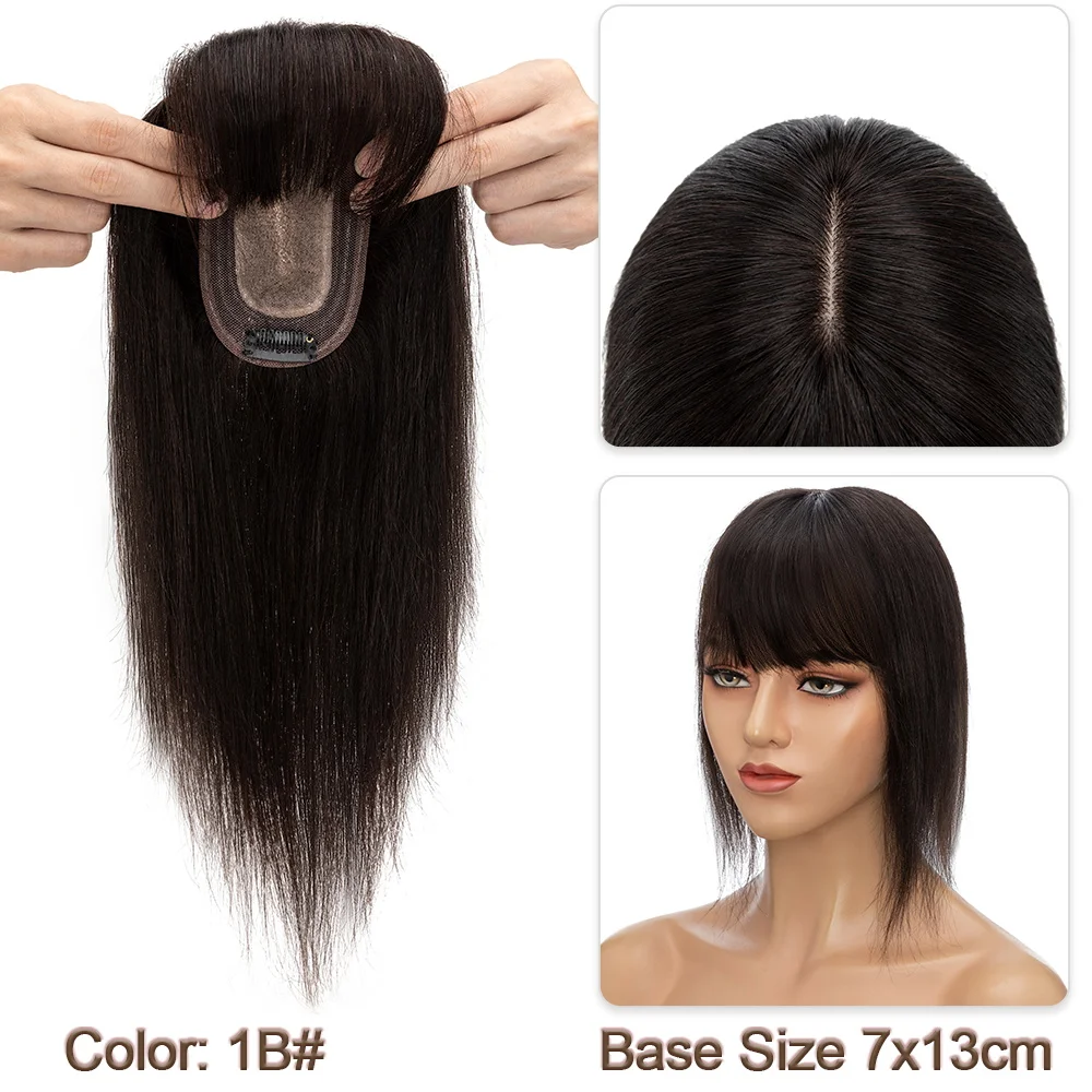 Rich Choices Hair Toppers for Women Real Human Hair Topper with Bangs 150% Density 7 * 13CM Silk Base Clip in Top Hair Pieces