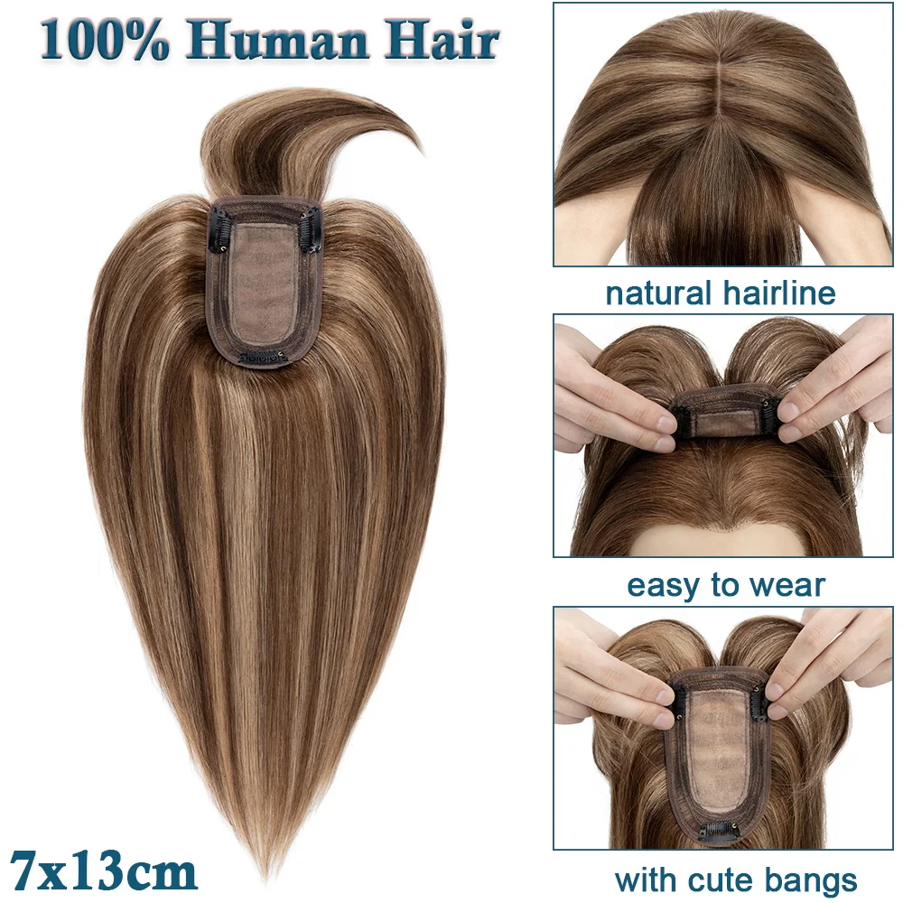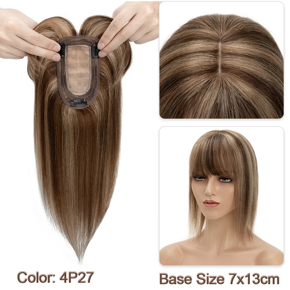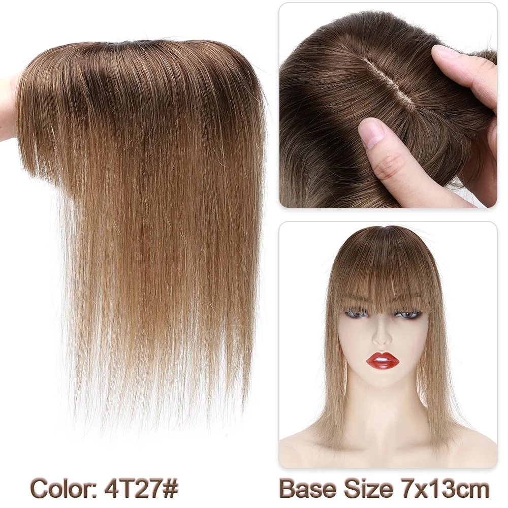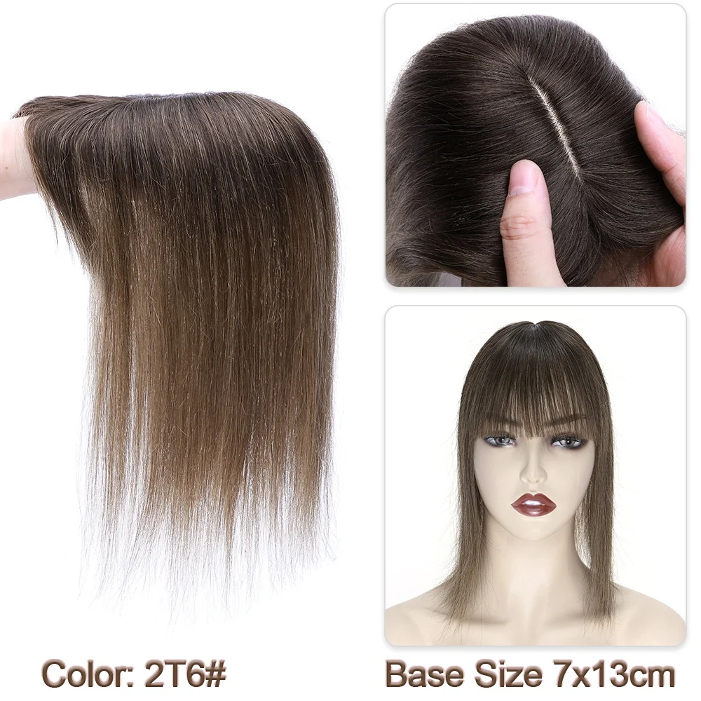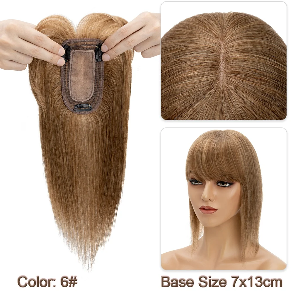 Rich Choices Hair Toppers for Women Real Human Hair Topper with Bangs 150% Density 7 * 13CM Silk Base Clip in Top Hair Pieces