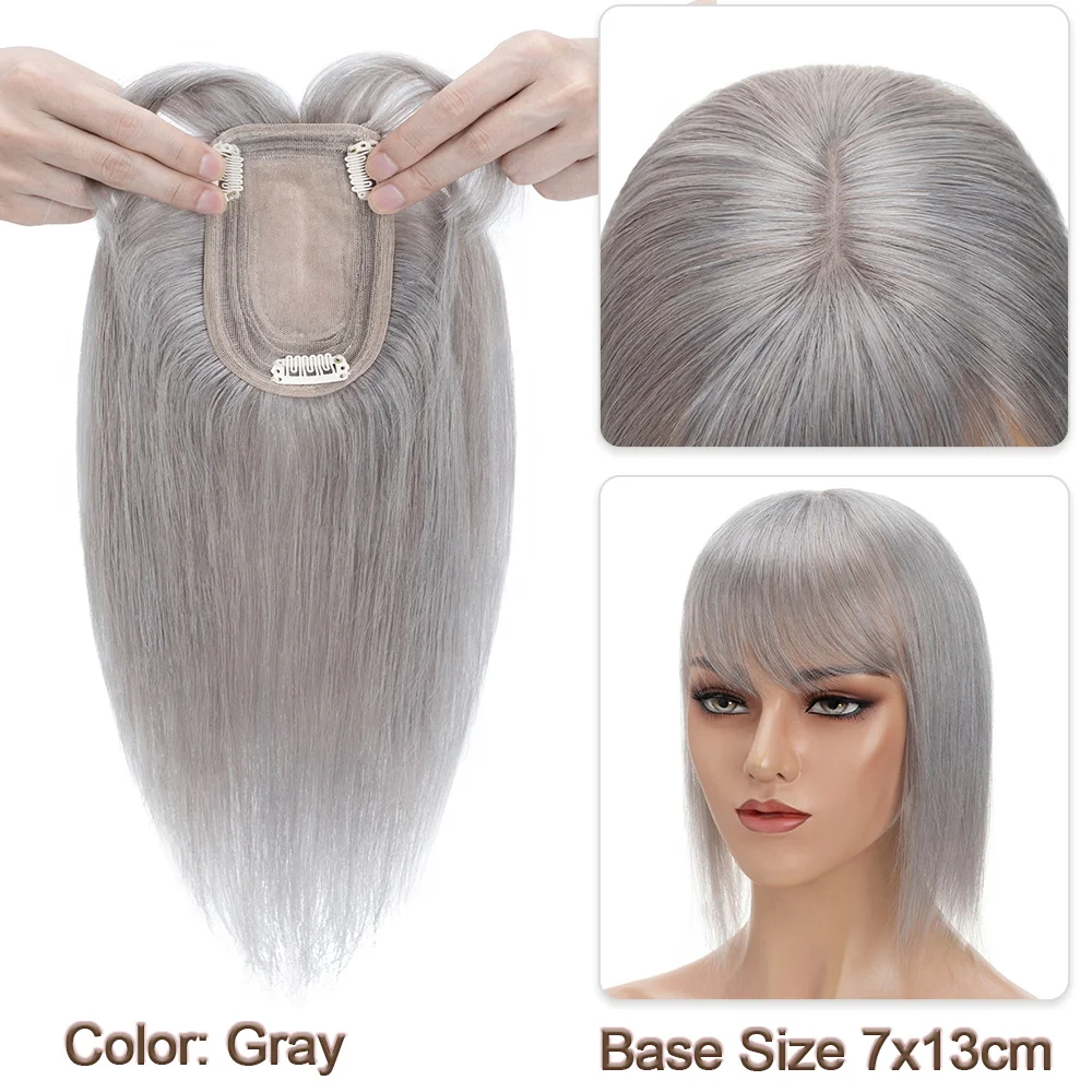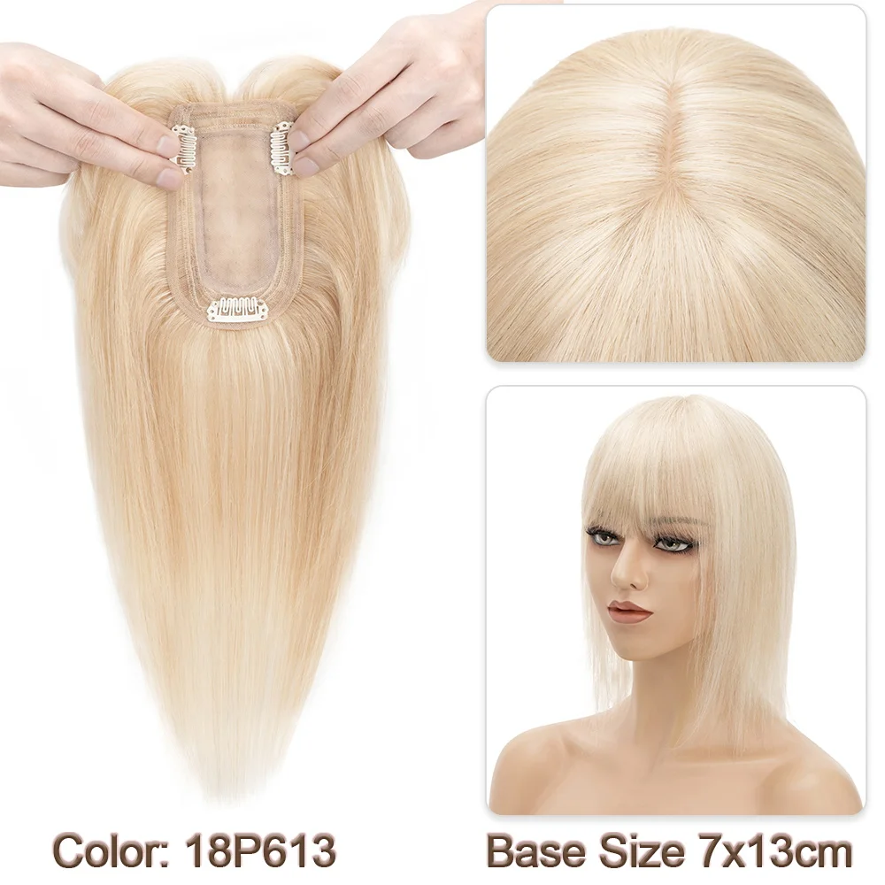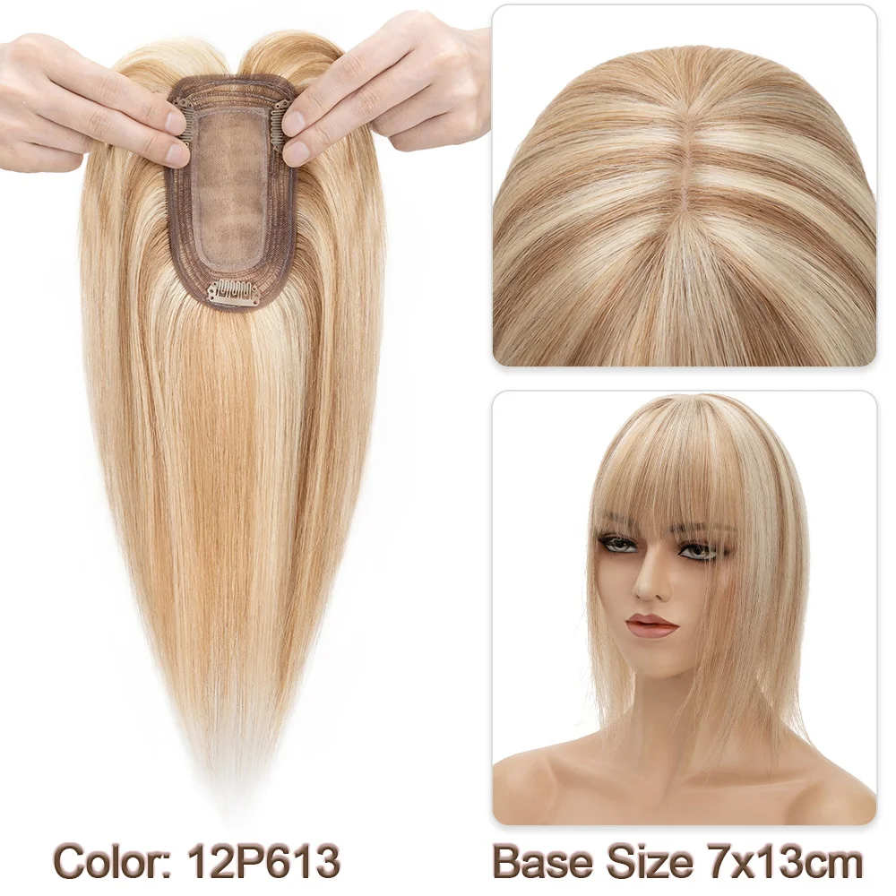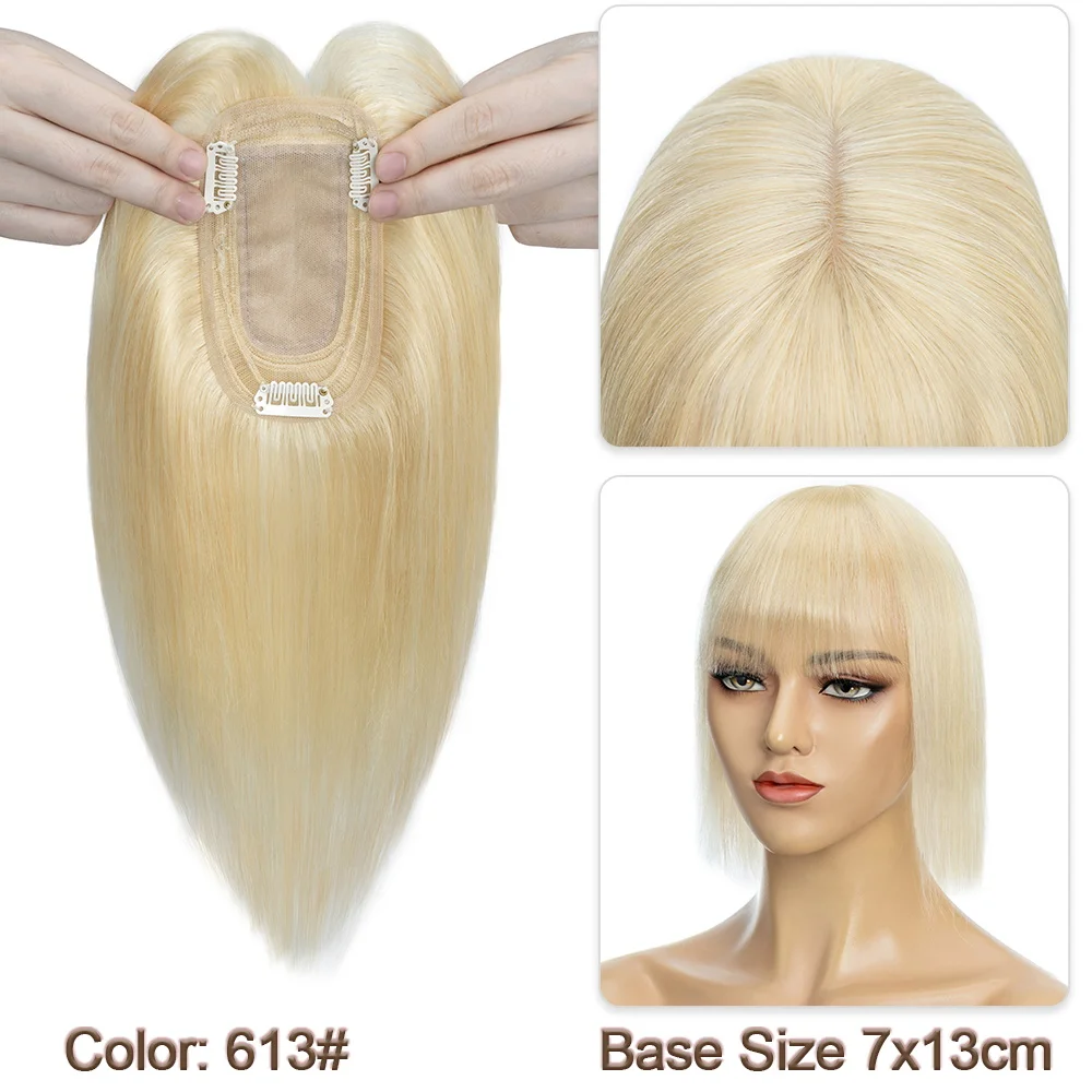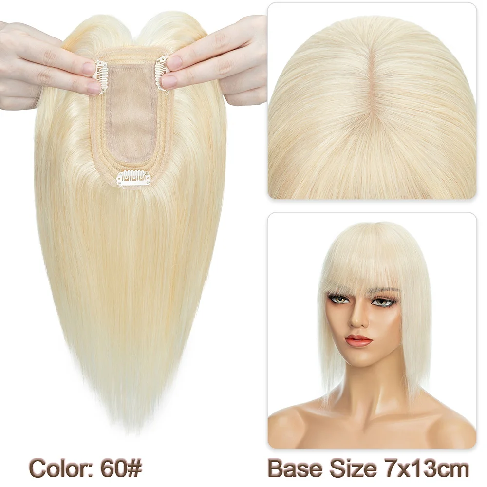 Rich Choices Hair Toppers for Women Real Human Hair Topper with Bangs 150% Density 7 * 13CM Silk Base Clip in Top Hair Pieces