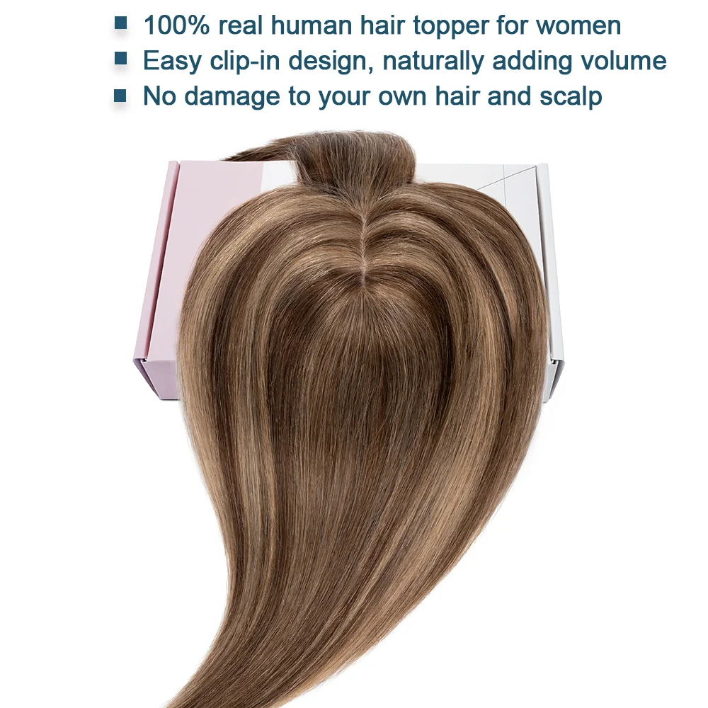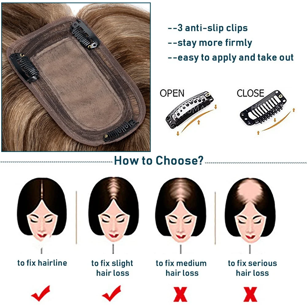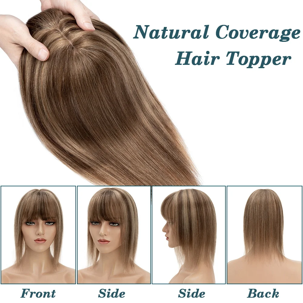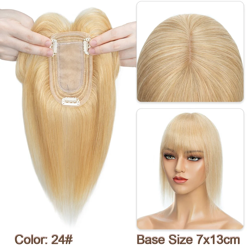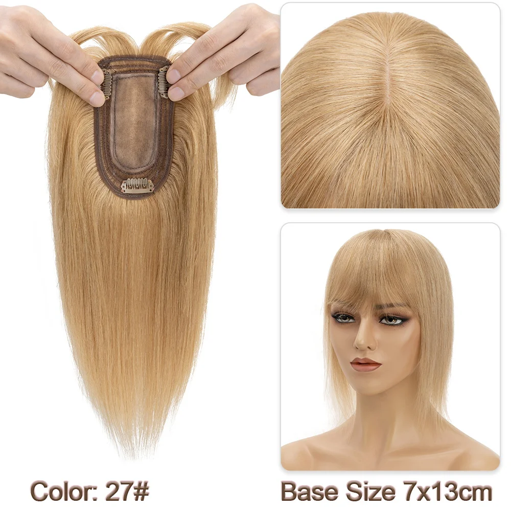 Rich Choices Hair Toppers for Women Real Human Hair Topper with Bangs 150% Density 7 * 13CM Silk Base Clip in Top Hair Pieces