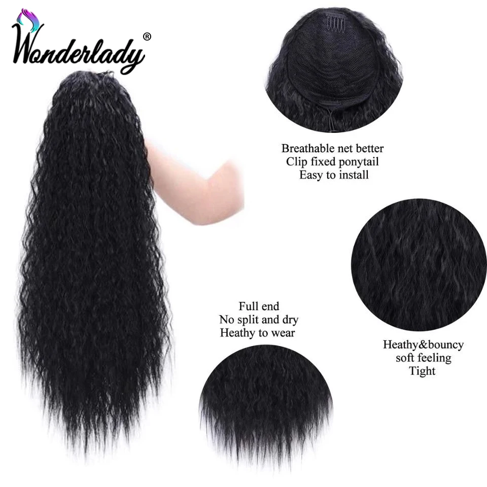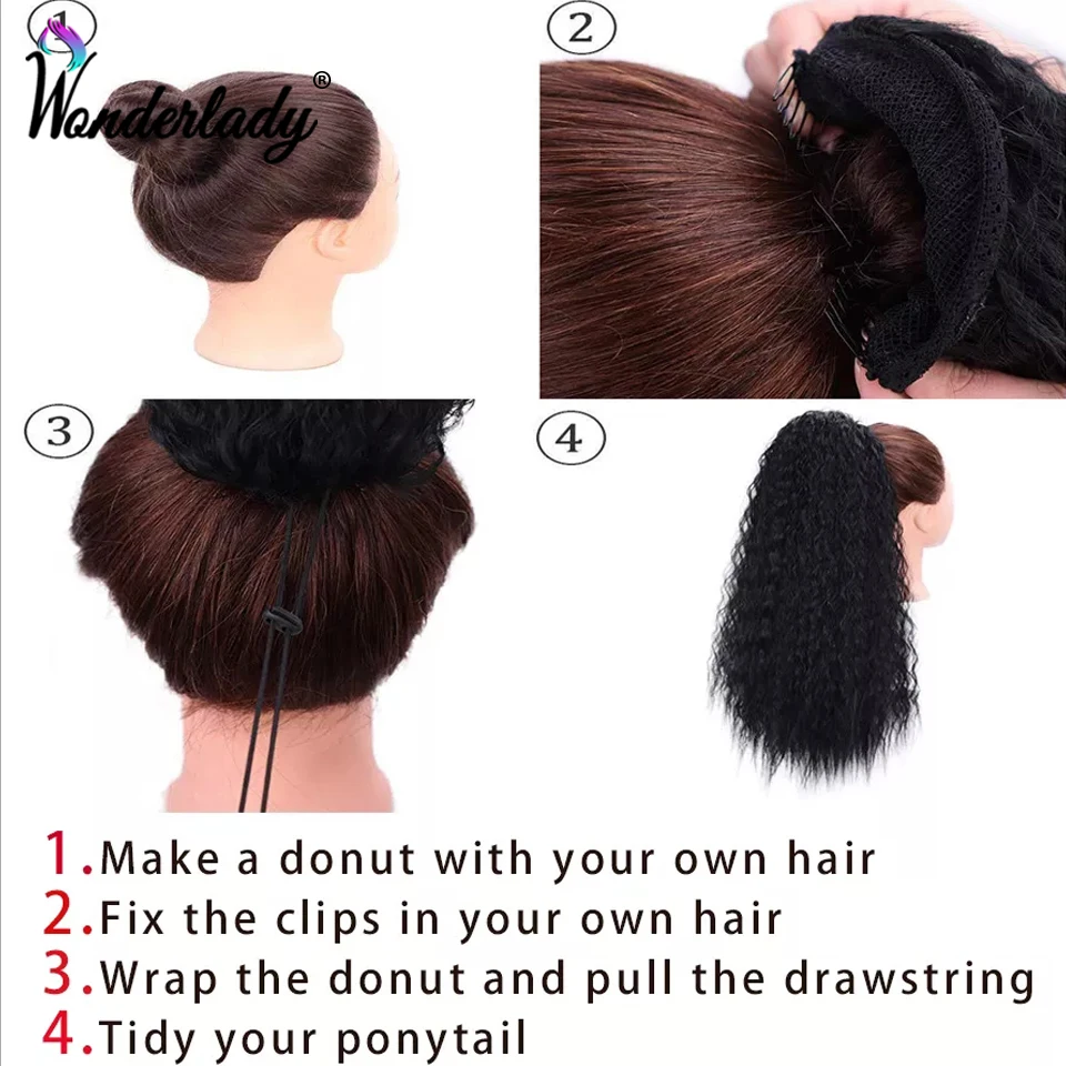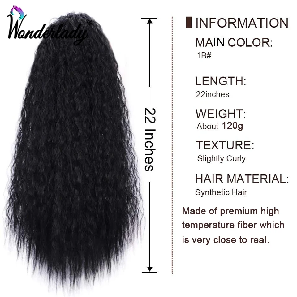 Rubber Band Drawstring Curly Hair Ponytail With Clips 22inch Straight Afro Puff Kinky Curly Ponytail Synthetic Hair Extensions
