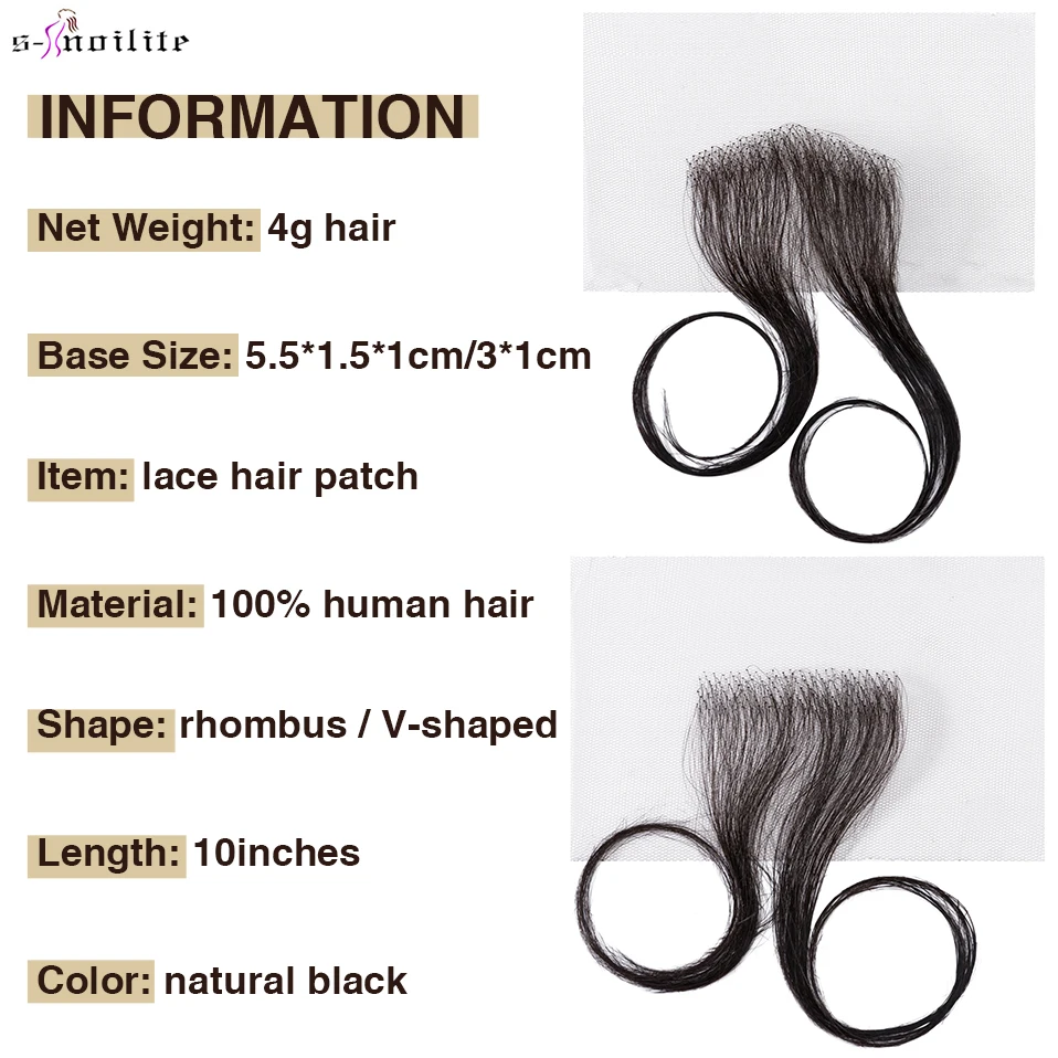 S-noilite 10Inch Lace Hair Toppers Hair Patch Hand Crochet Natural Human Hair Replacement Capillary Prothesis Invisible Temple