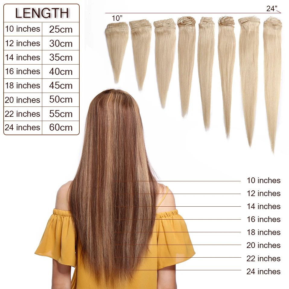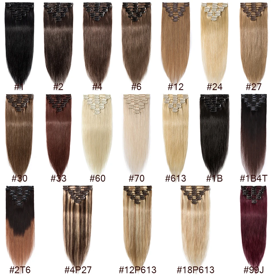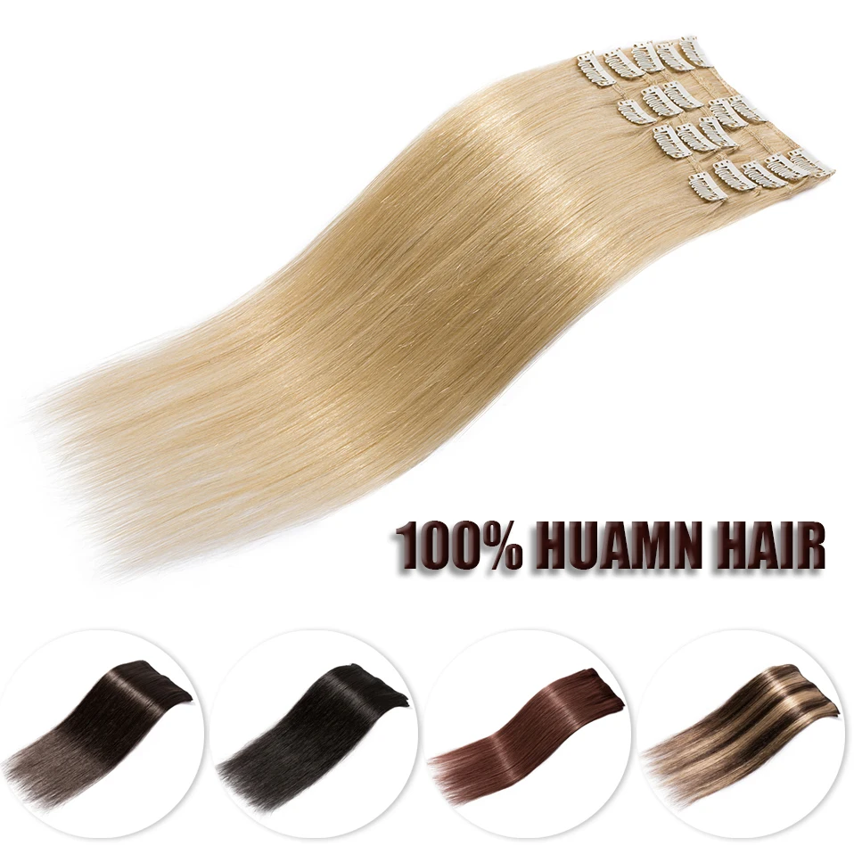 S-noilite 50g-80g 10"-24" Natural Hair Extension Human Hair Non-Remy 8Pcs Full Head Hairpiece Ombre Highlight Hair Clip For Hair