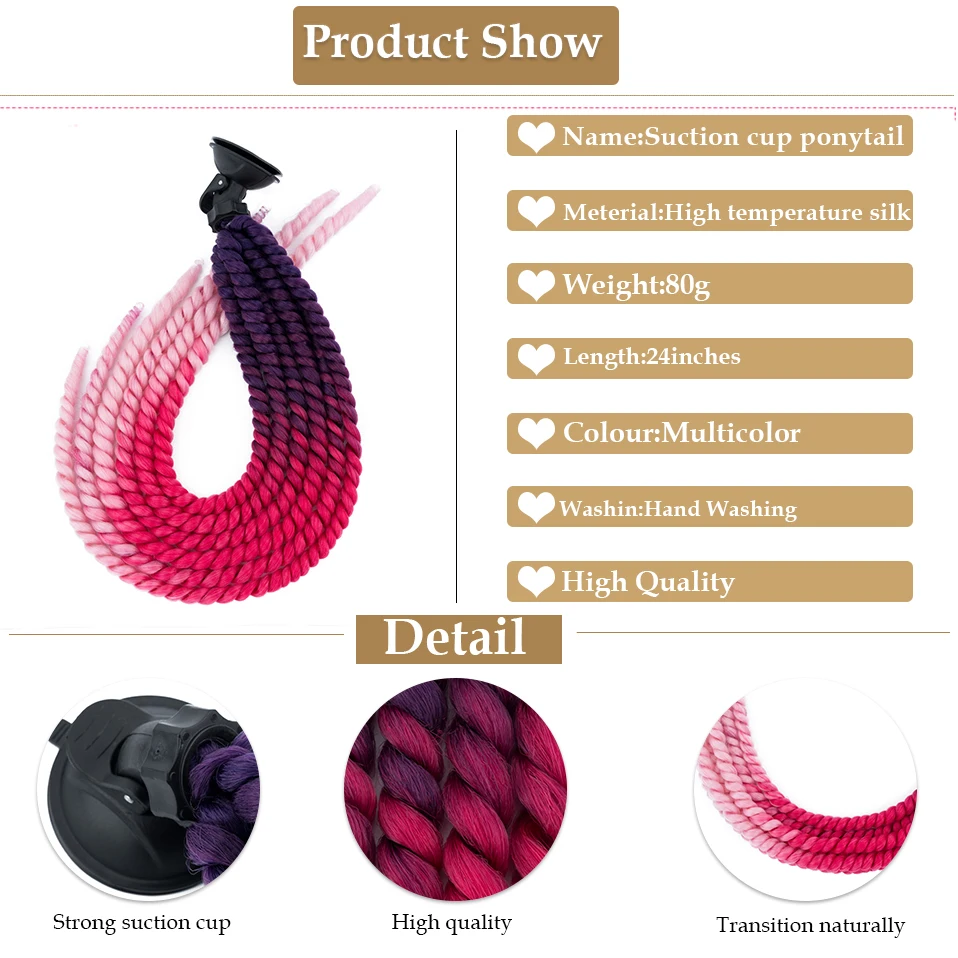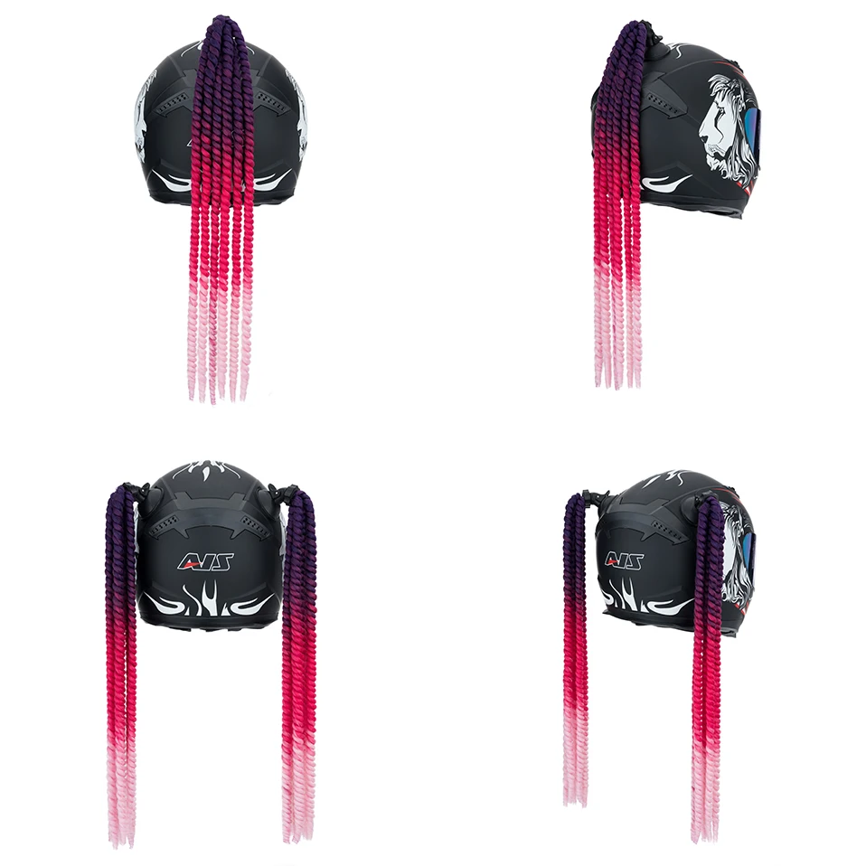 S-noilite Synthetic 1pcs 24” Helmet Mambo Braid Hair Ponytail Suction Motorbike Motorcycle Hair Extension Accessories for Women