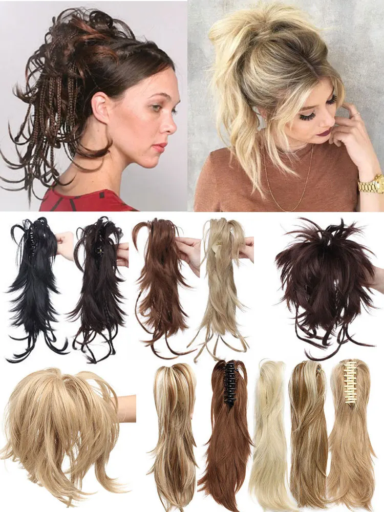 S-noilite Synthetic High Temperature Fiber Hairpieces Long Wavy Claw Clip Ponytail Hair Extensions For Women Black Brown