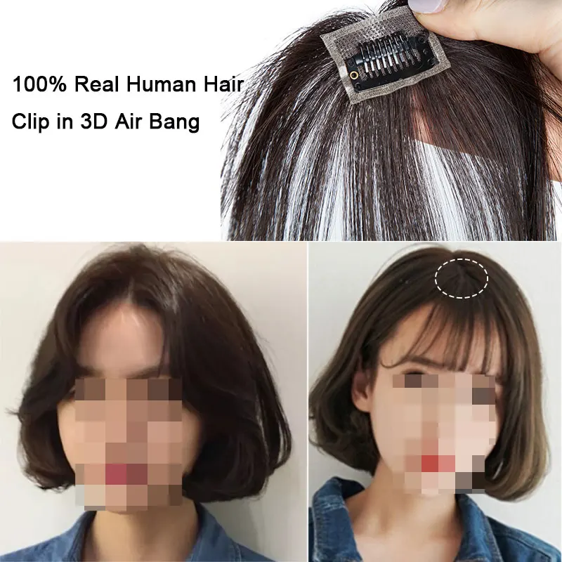 SEGO Small Short 3D Air Hair Bangs with Temples Human Hair Remy Clip in Hair Extensions Natural Fringe Hairpiece for Women