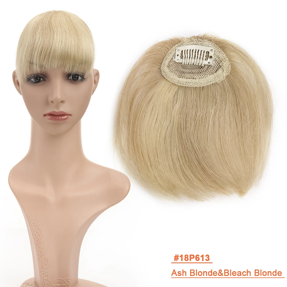 SEGO8G Straight Clips in Mini Bangs Human Hair Extension Remy Top Pieces Brazilian Hair Blonde Color Front Fringes