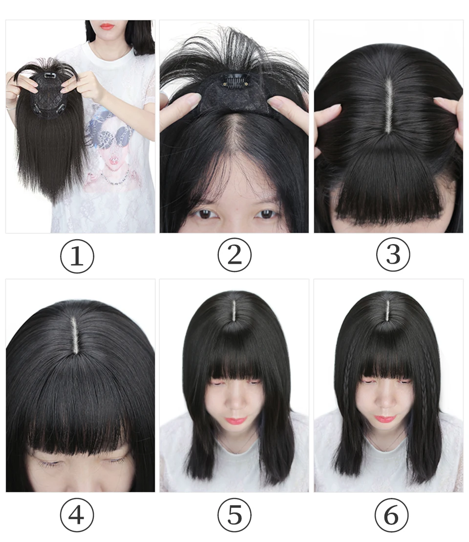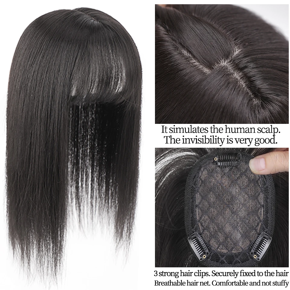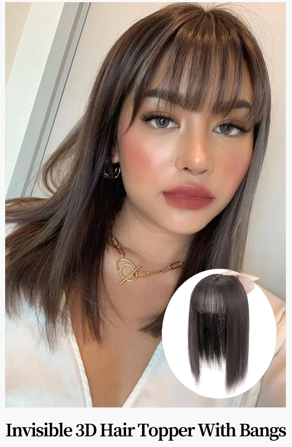 SHANGKE Synthetic Short Straight Hair Topper With Bangs Invisible 3D Hair Toupee For Women Water Wave Clip In Hair Extensions