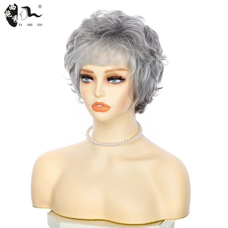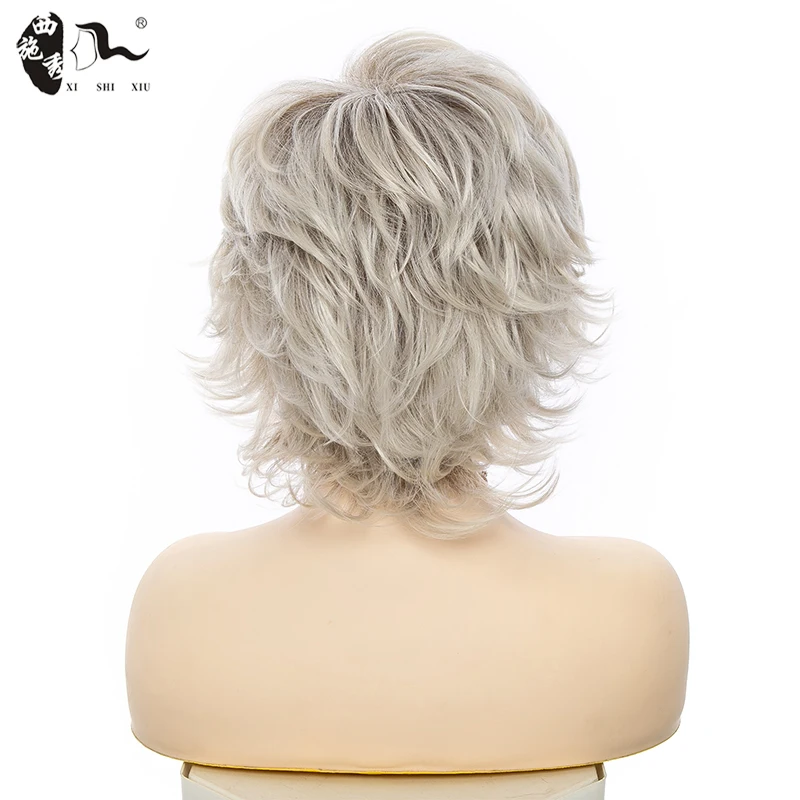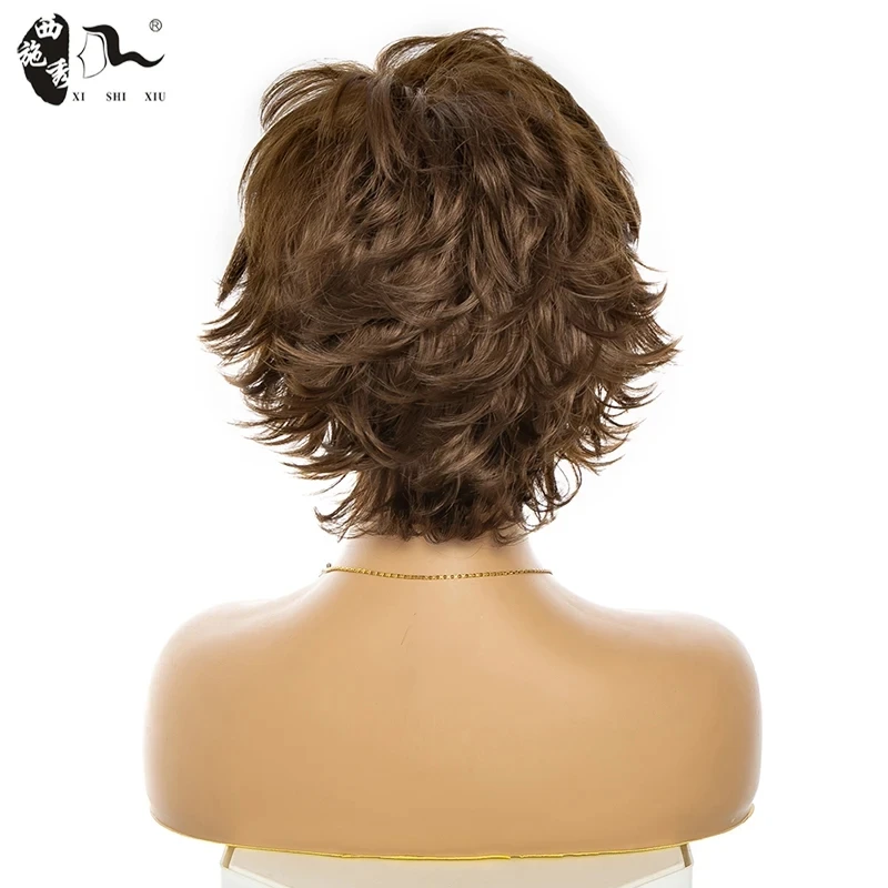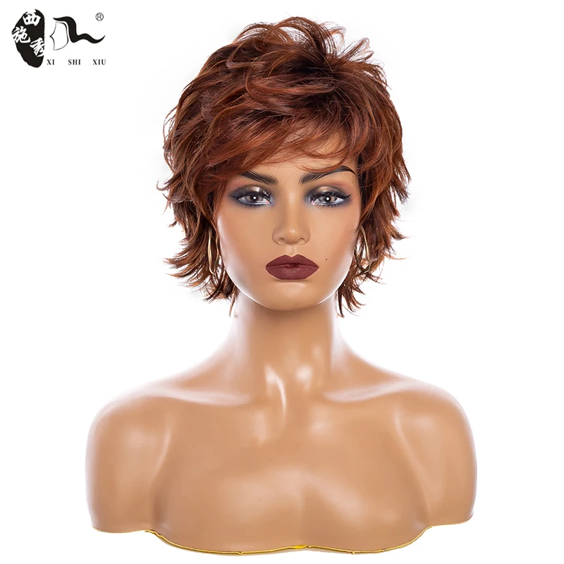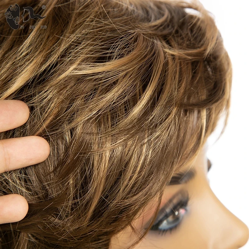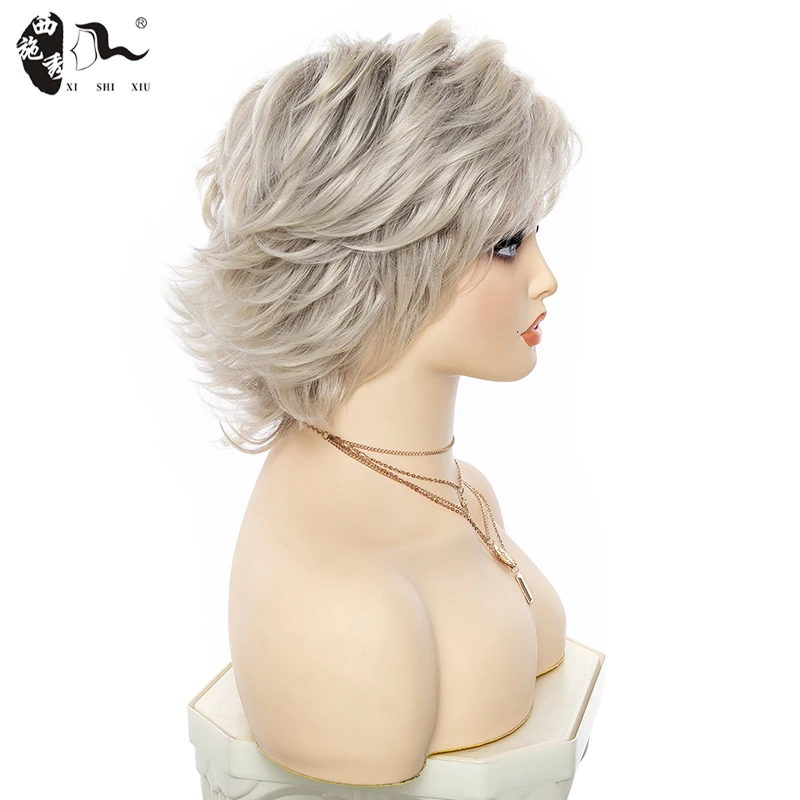 Short Blonde Hair Natural Wave Layered Hair Pixie Cut Synthetic Wigs With Fluffy Bangs For Women Heat Resistant Fiber Daily Wigs