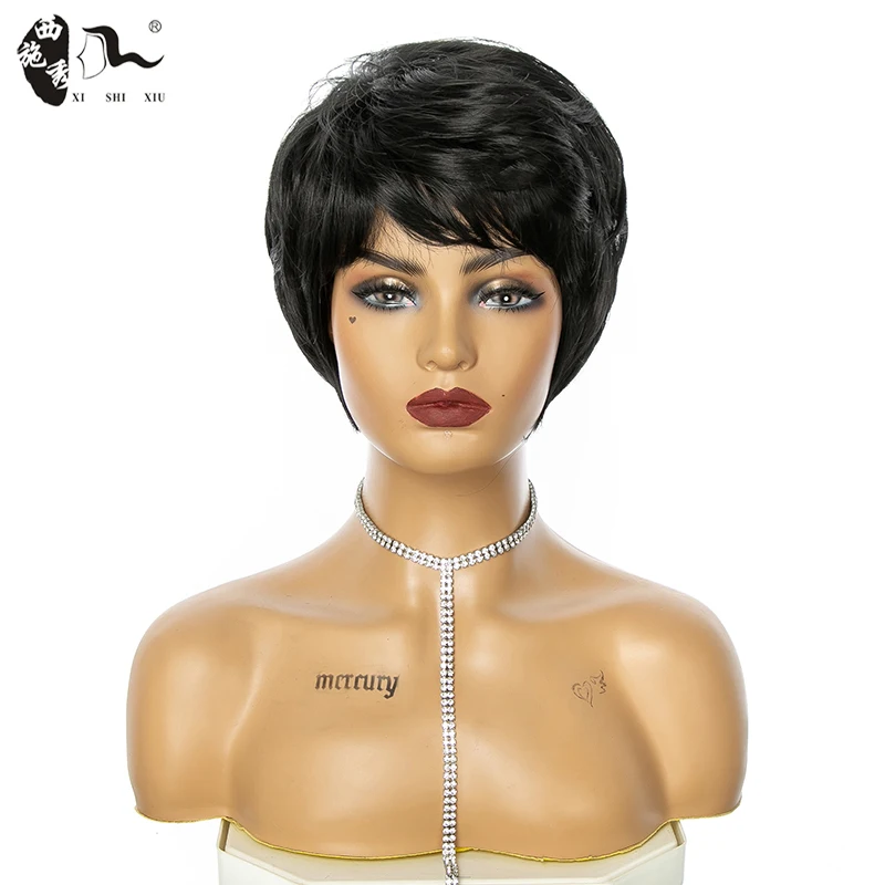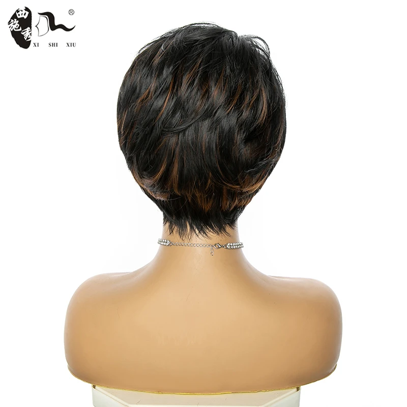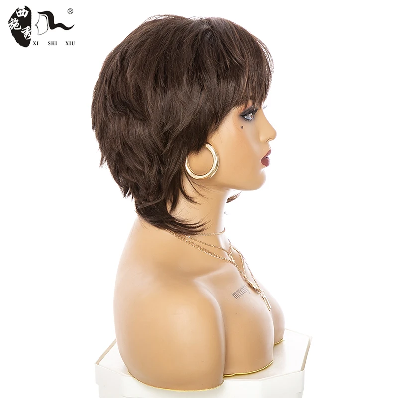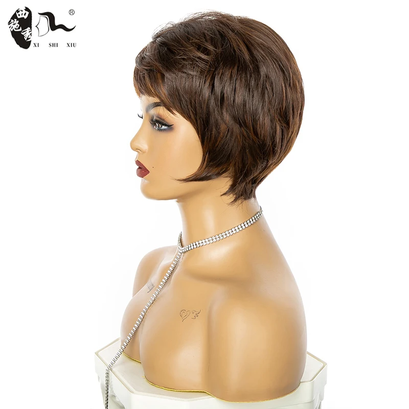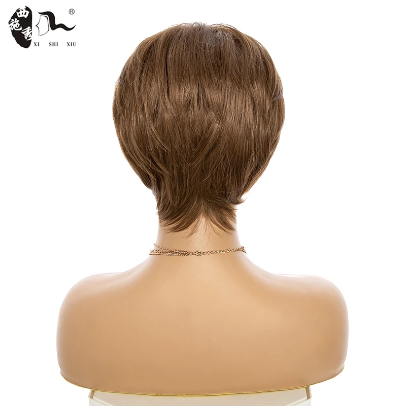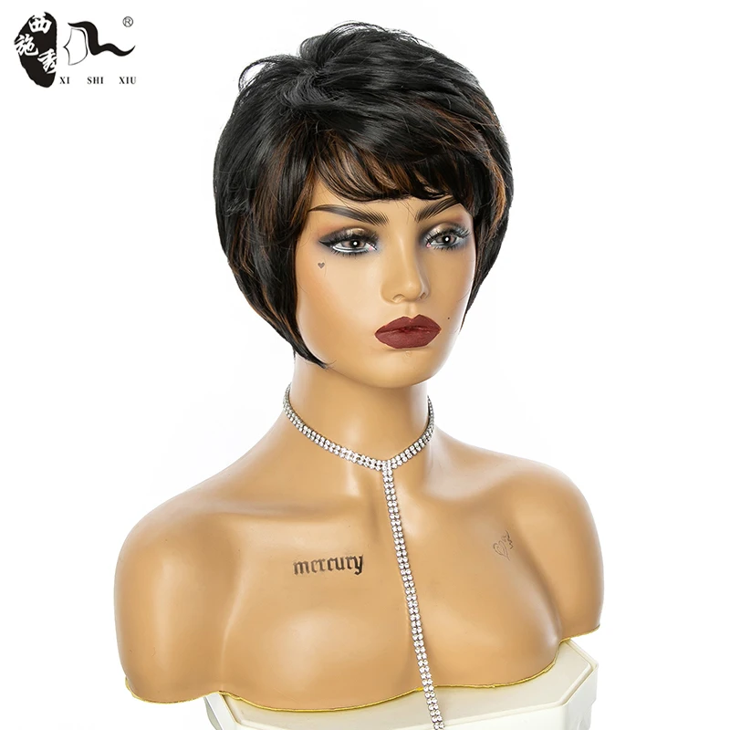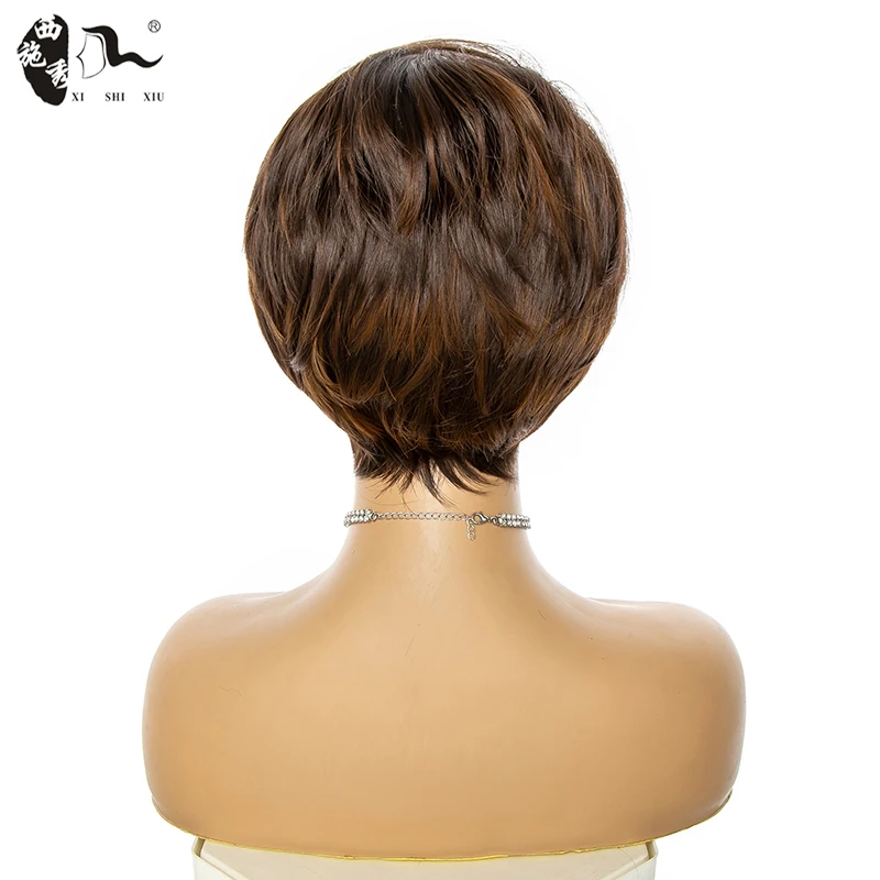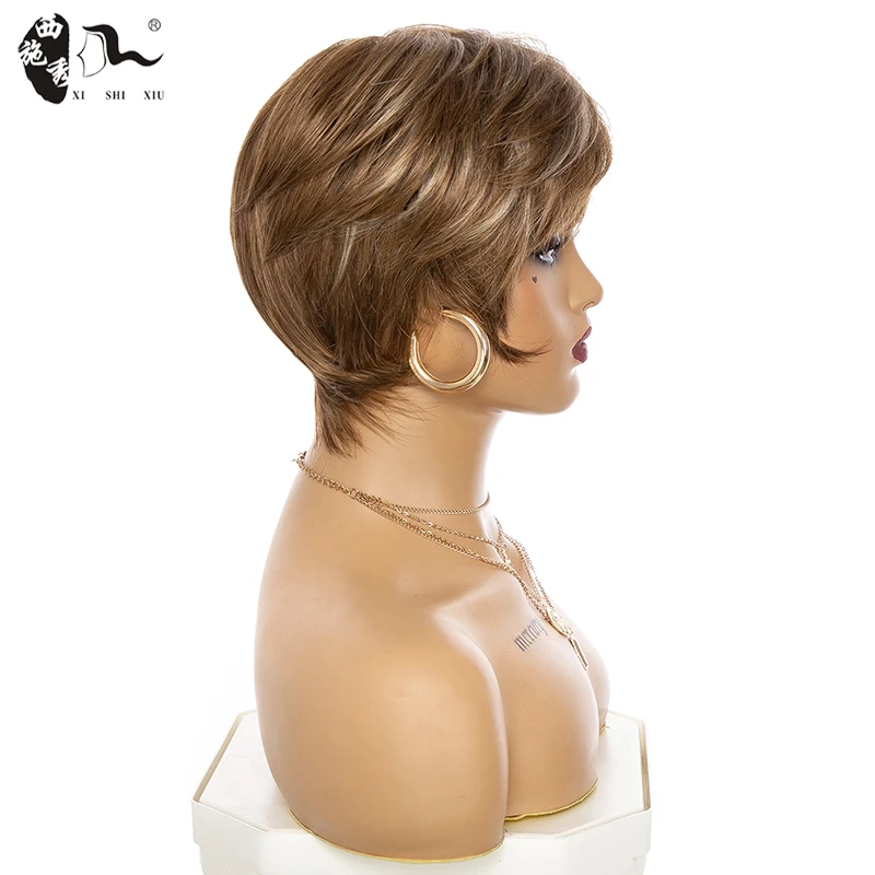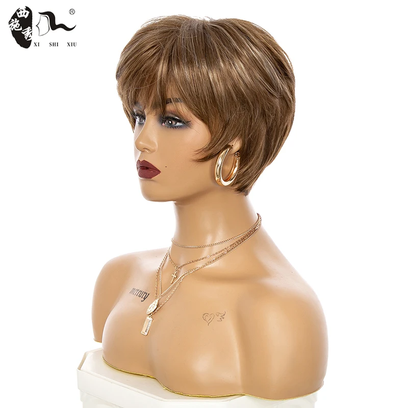 Short Blonde Natural Wavy Synthetic Wigs With Bangs For Women Mixed Brown Blonde High Temperature Fiber Fluffy Hair Daily Wigs