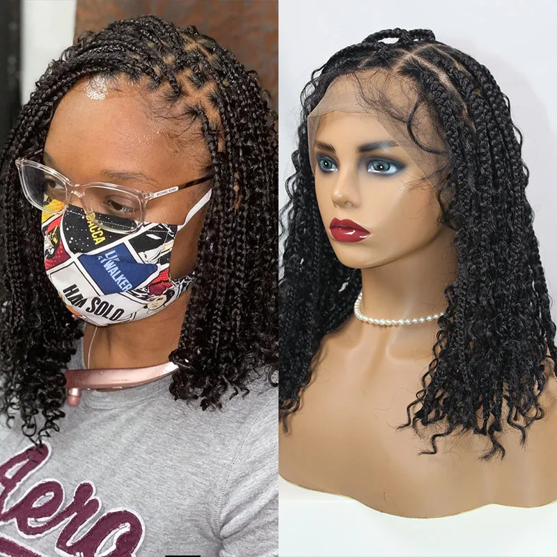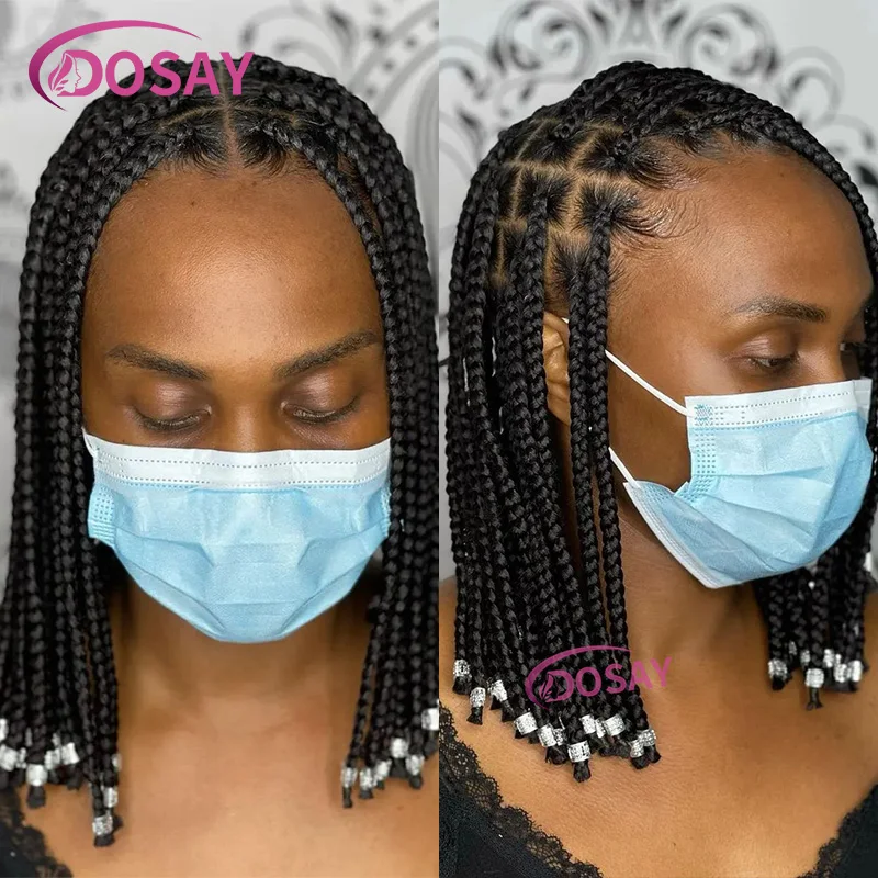 Short Bob Braid Wigs With Baby Hair Full Lace Braided Wigs Knotless Twist Braided Wigs For Black Women Synthetic Wig 10-12Inch