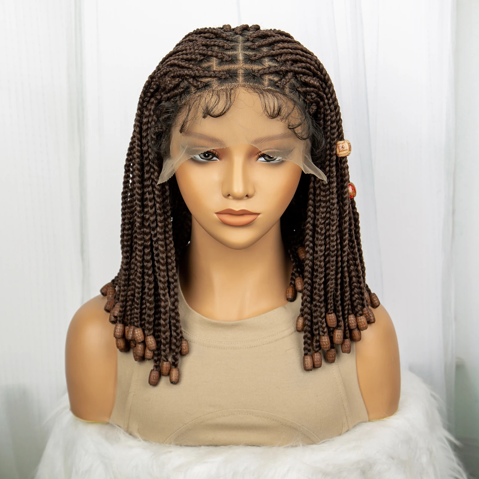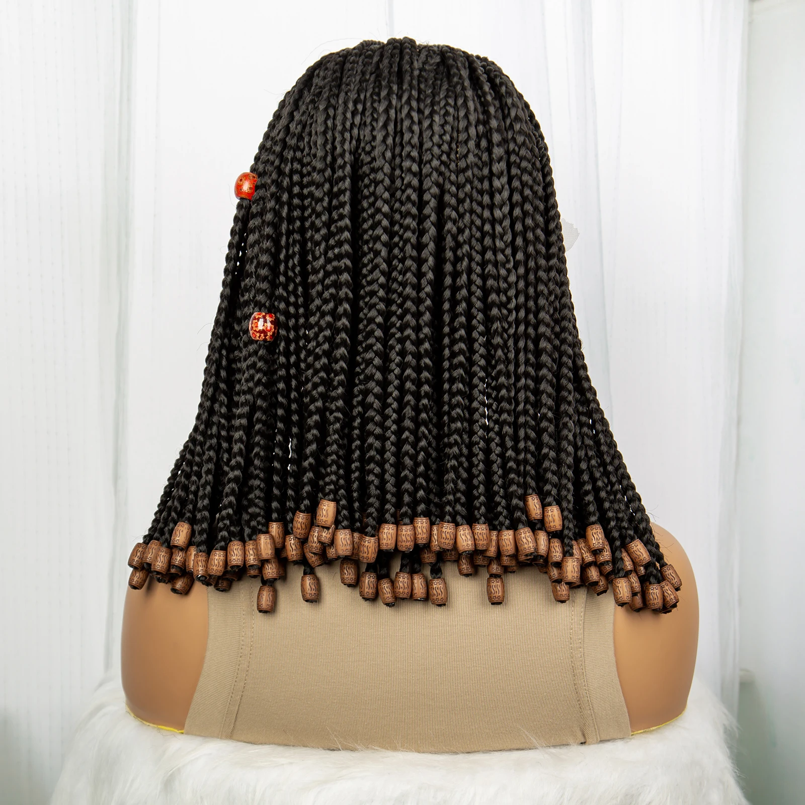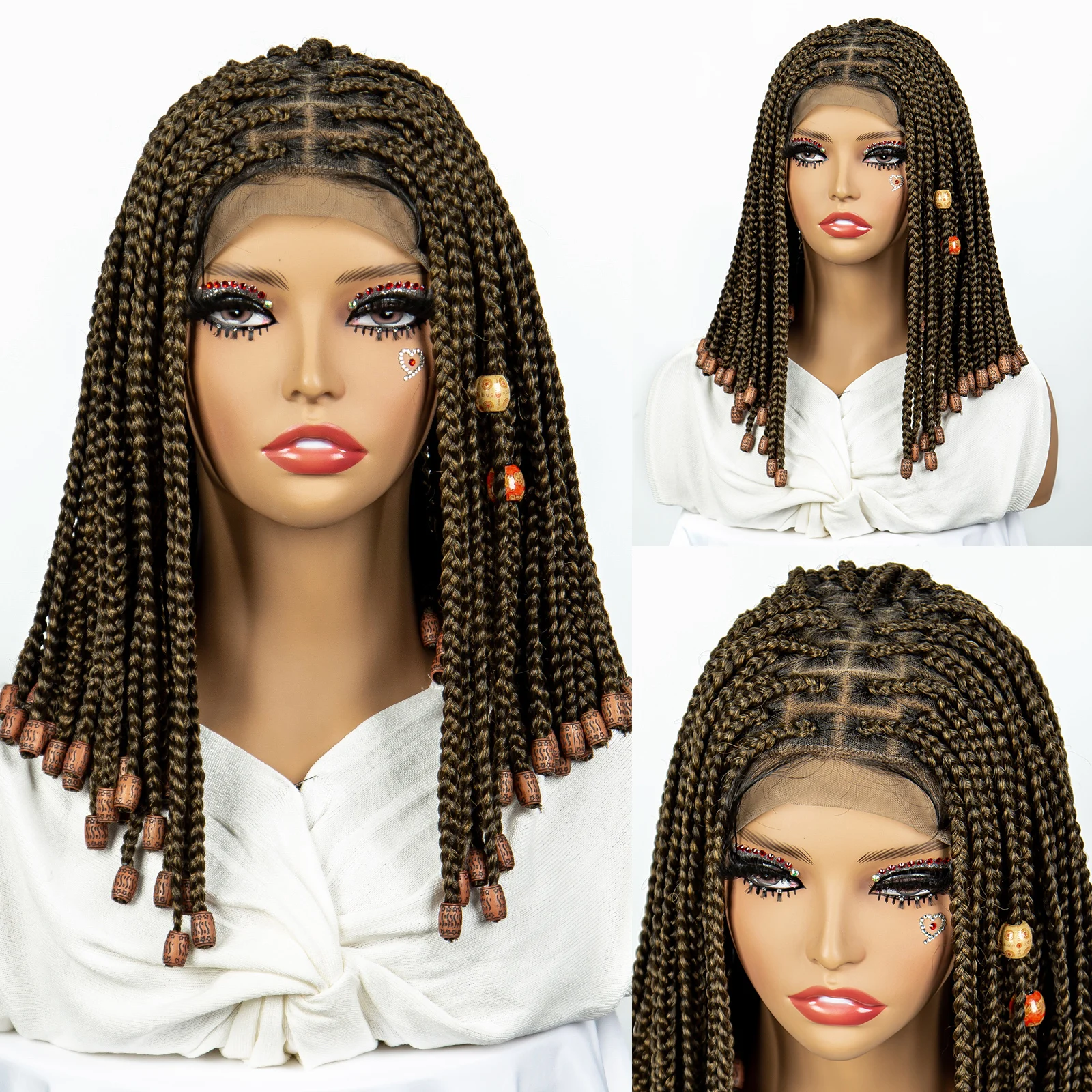 Short Box Braided Wig Knotless Synthetic Braids Wigs with Baby Hair for Women Bob Braids Wigs with Beads Lace Front Braiding WIg