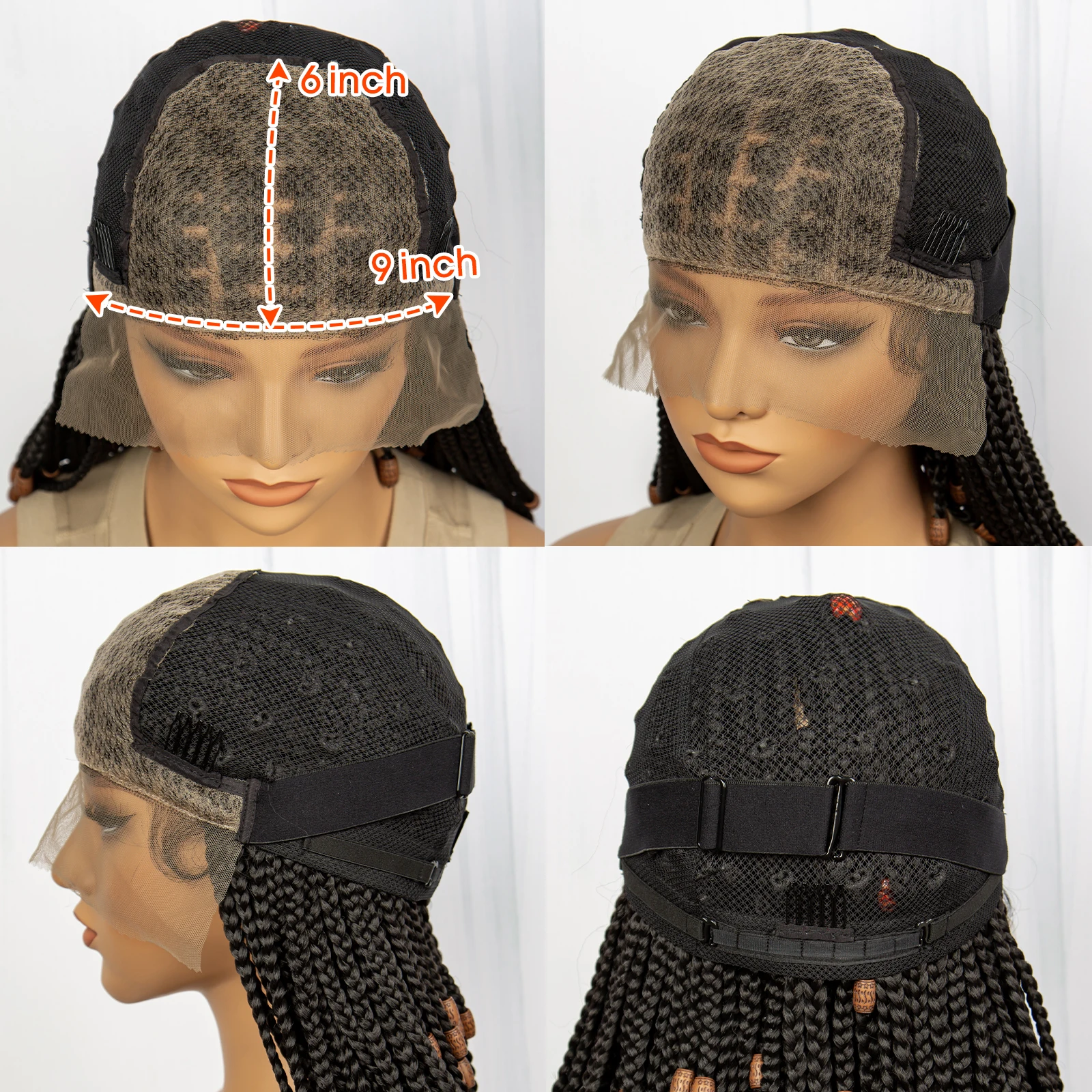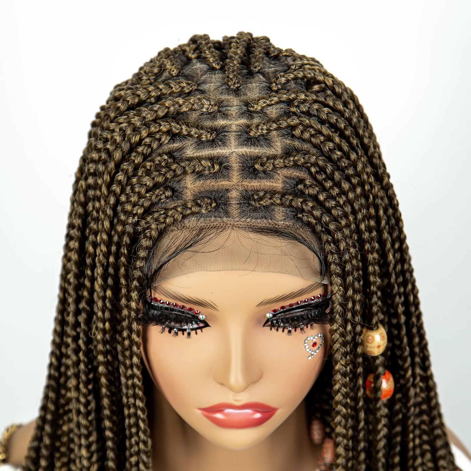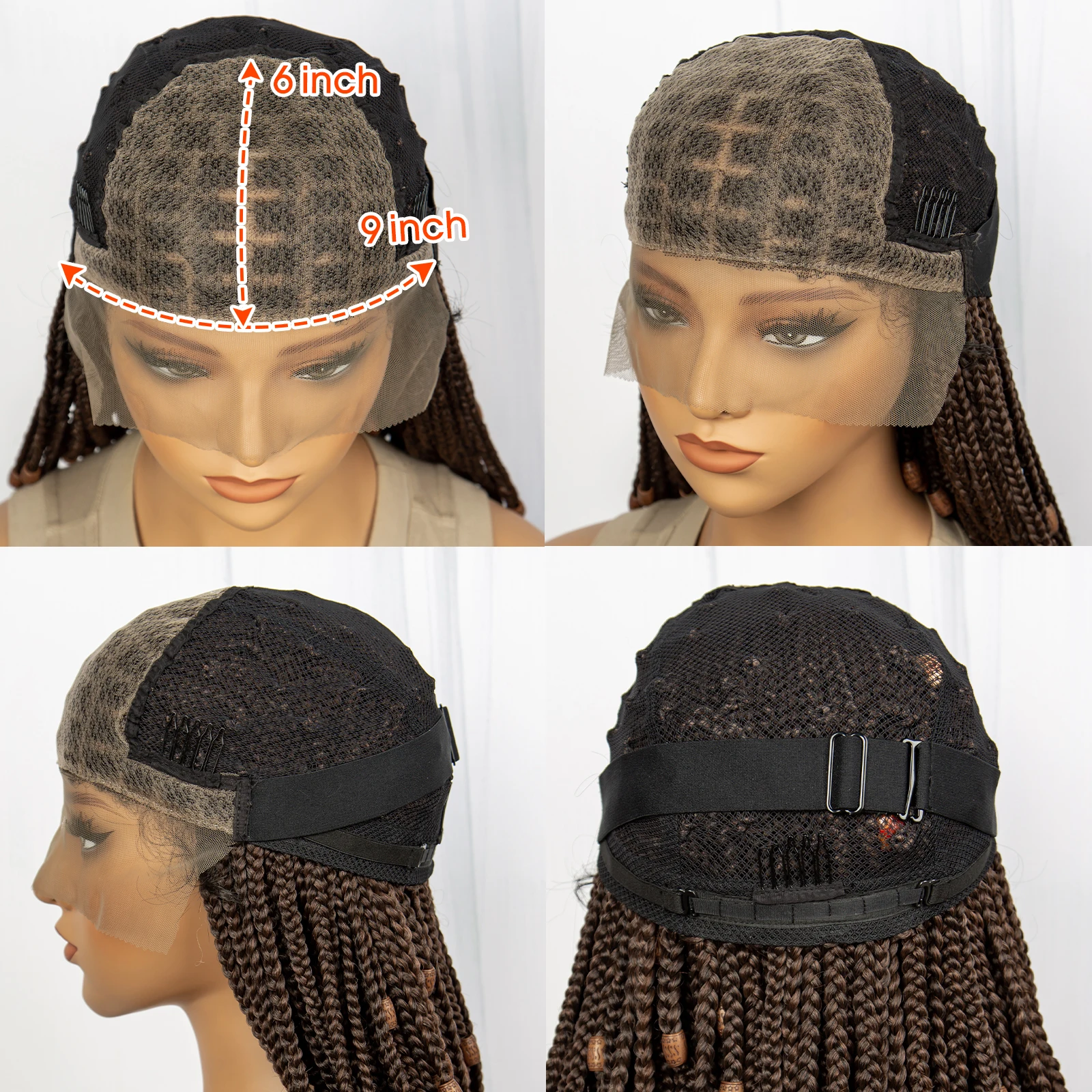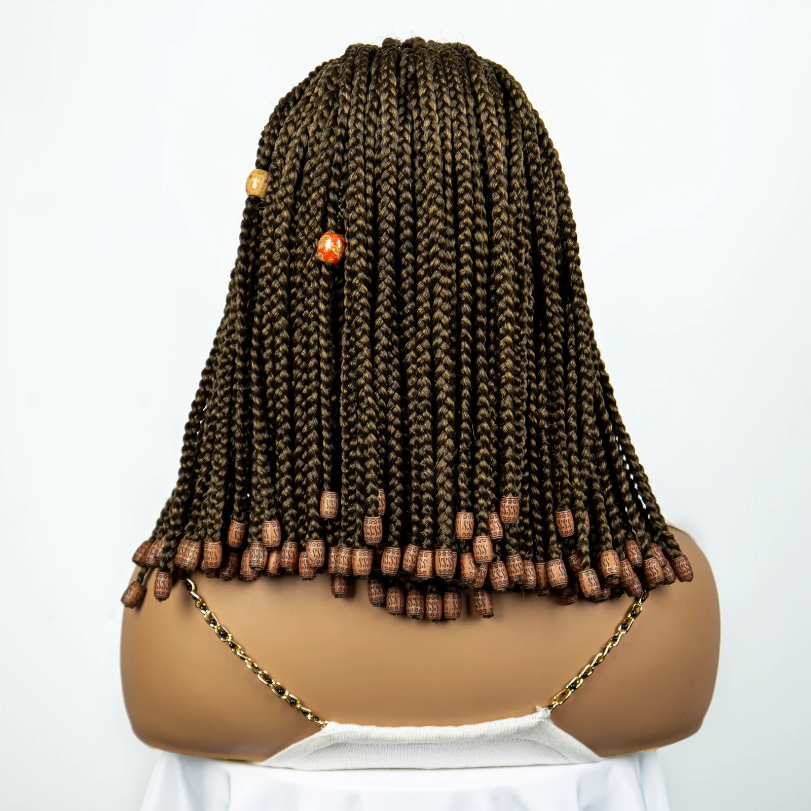 Short Box Braided Wig Knotless Synthetic Braids Wigs with Baby Hair for Women Bob Braids Wigs with Beads Lace Front Braiding WIg