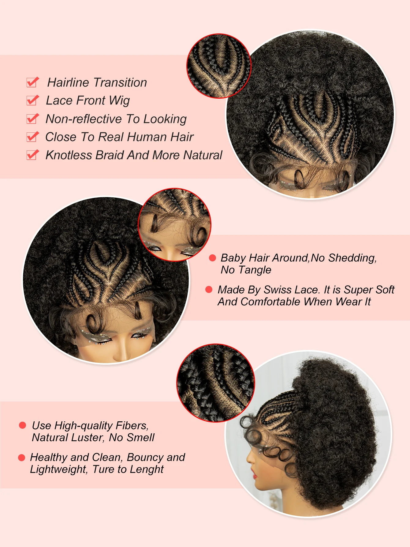 Short Curly Braided Wigs Synthetic Lace Front Braided Wig for Black Women Kontless Braiding Hair Wigs Afro Kinky Curly Hair Wig