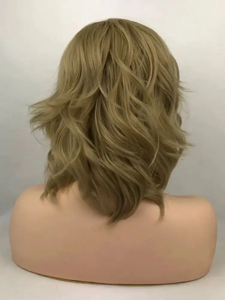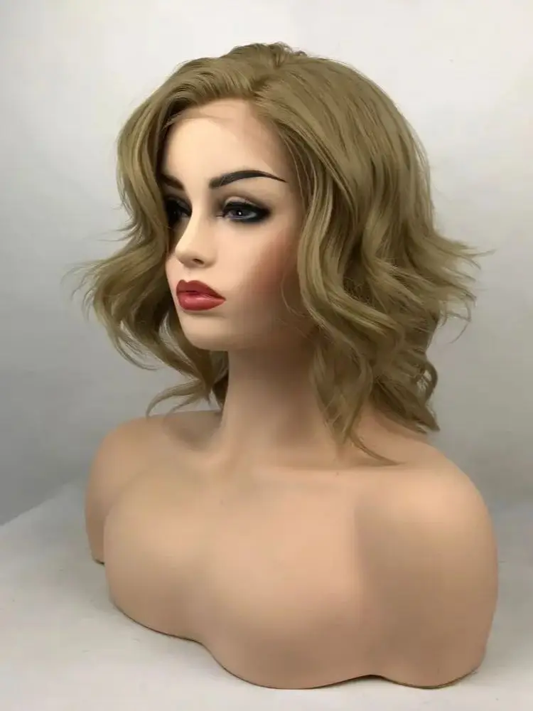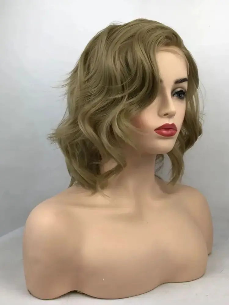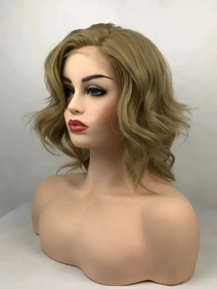 Short Dark Blonde Wavy Loose Transparent Lace Daily Party Synthetic Heat Resistant Fiber Fake Hair