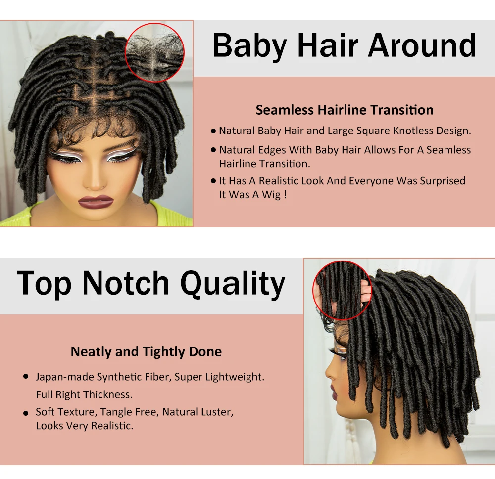 Short Dreadlocks Braided Wigs Synthetic Lace Front Square Knotless Braiding Hair Wigs for Women Twist Natural Locs Crochet Wig