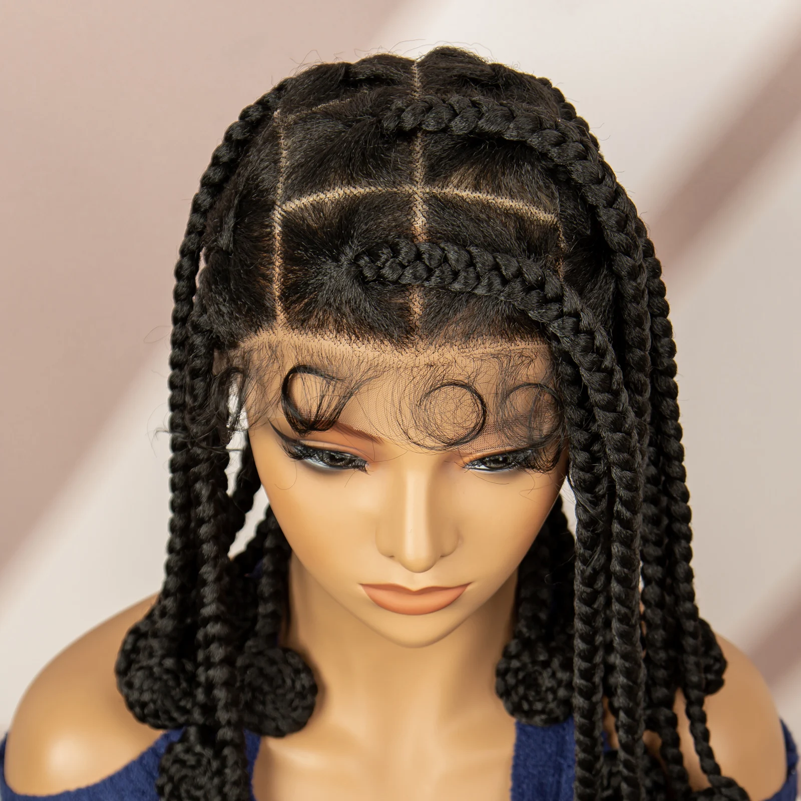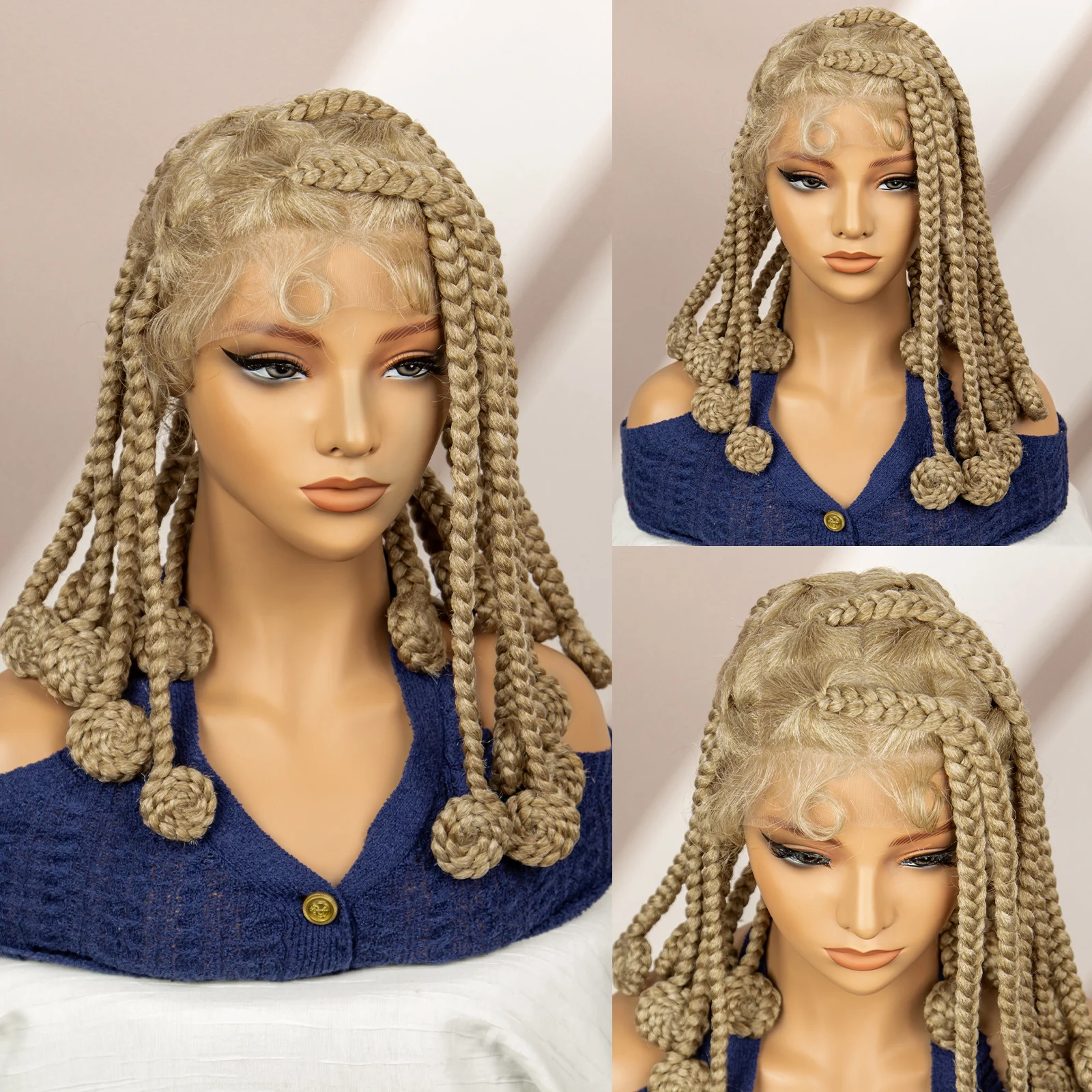 Short Synthetic Braided Wigs Lace Front Bantu Braids Wigs for Women Full Lace Braided wigs with baby hair Box Braided Wigs