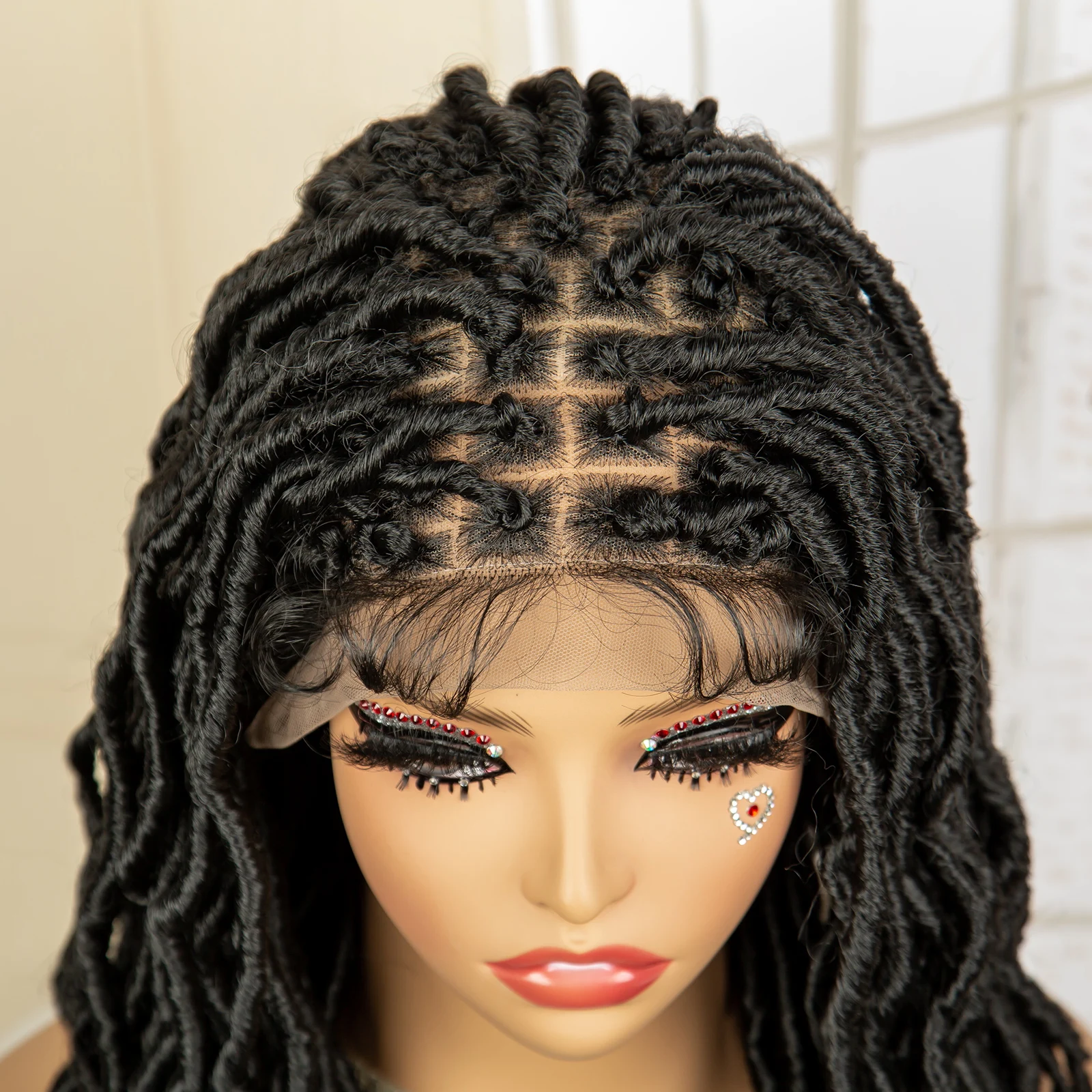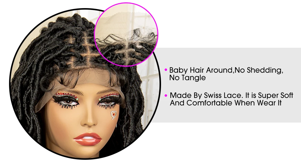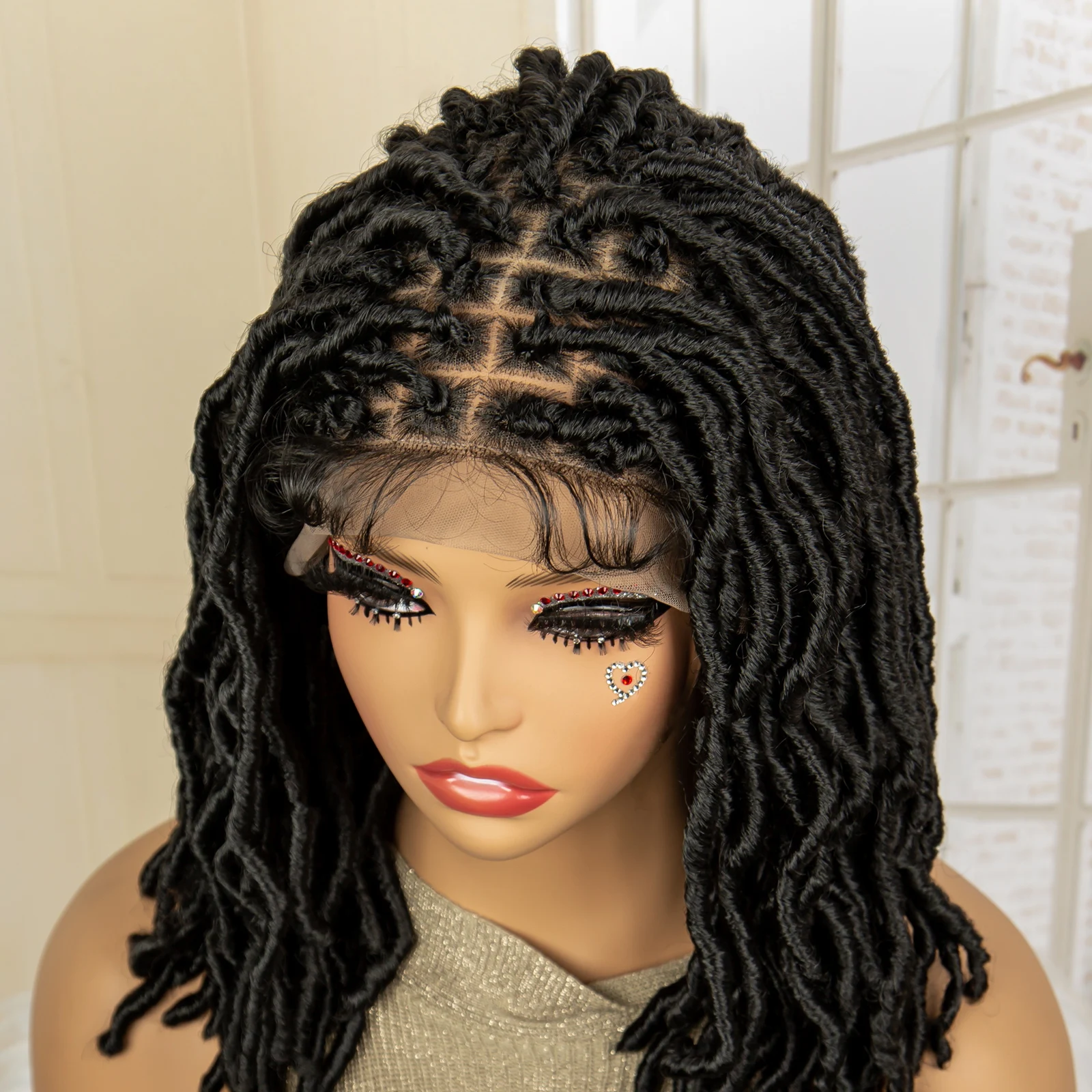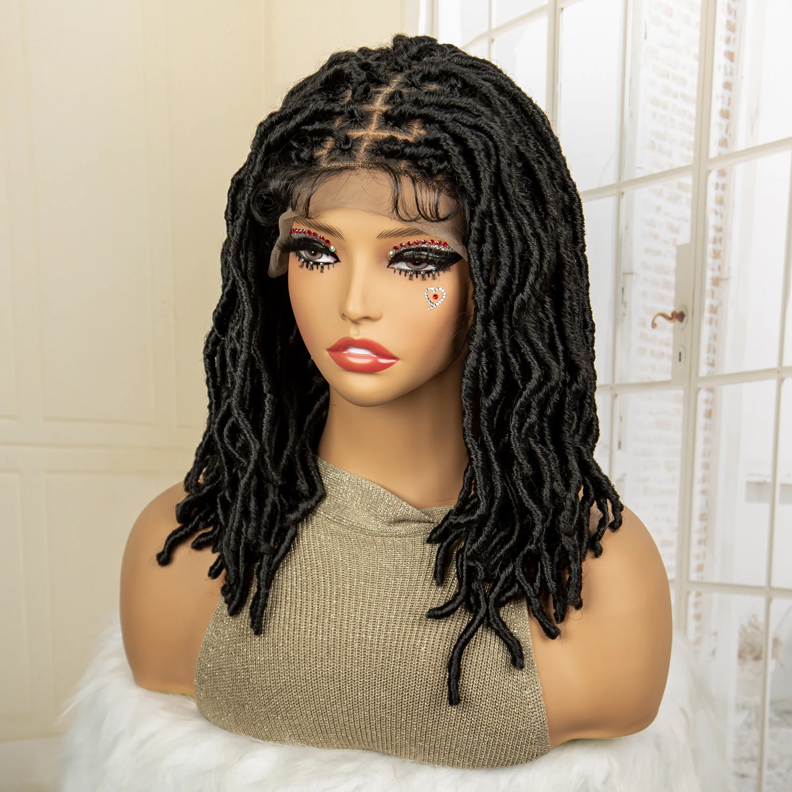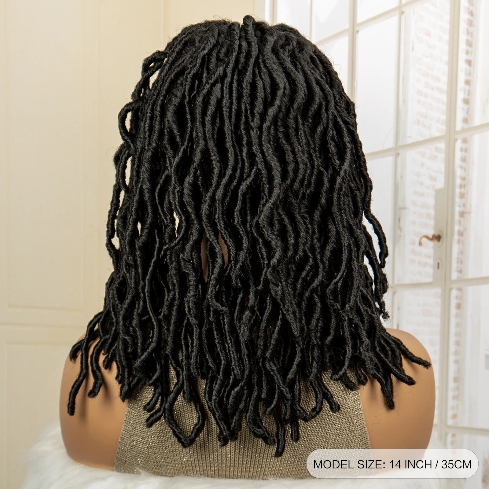 Short Synthetic Locs Braided Wigs Lace Frontal Knotless Box Braids Wig with Baby Hair for Black Women 14 Inches Lightweight Wig