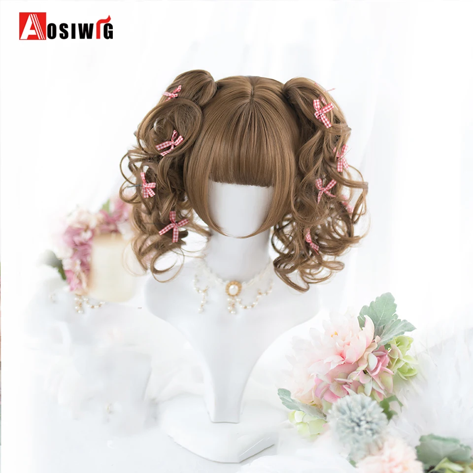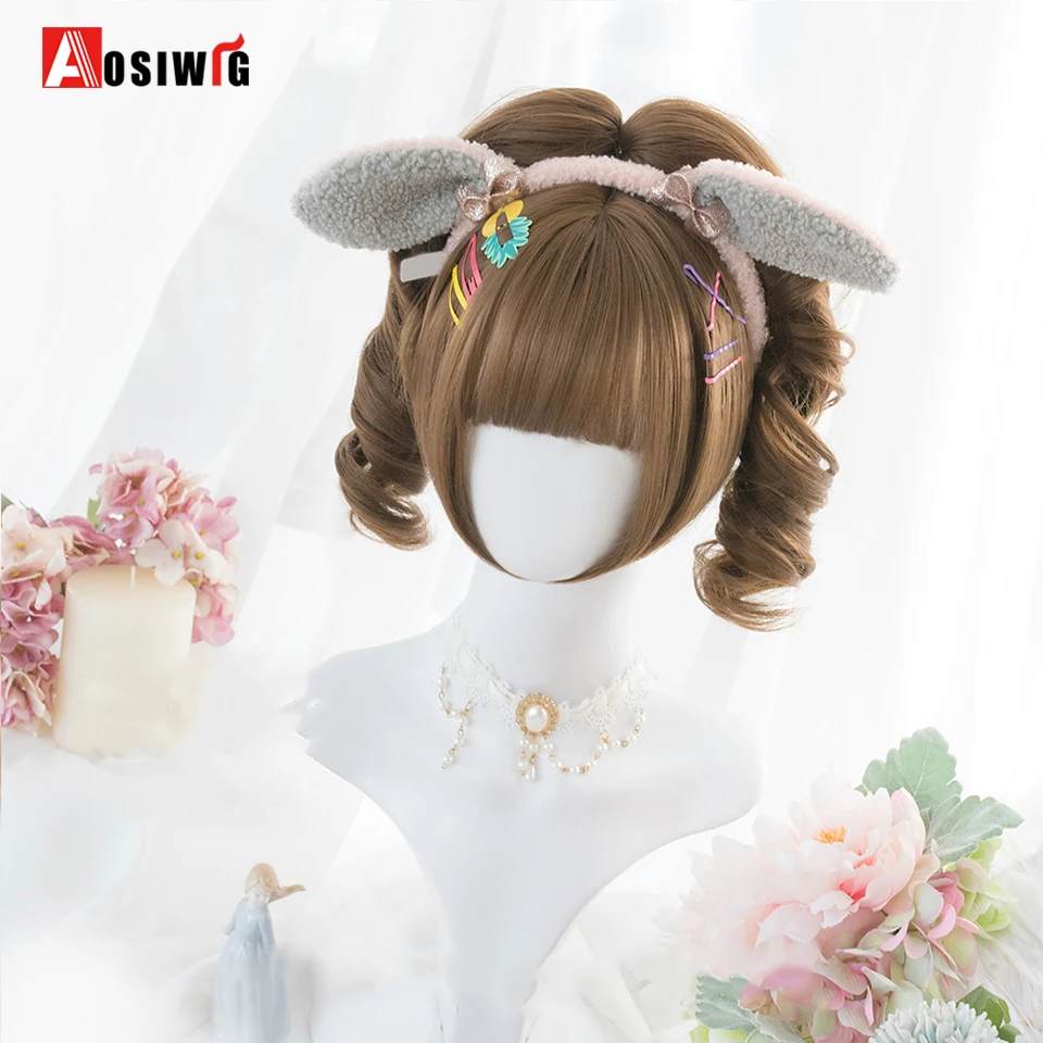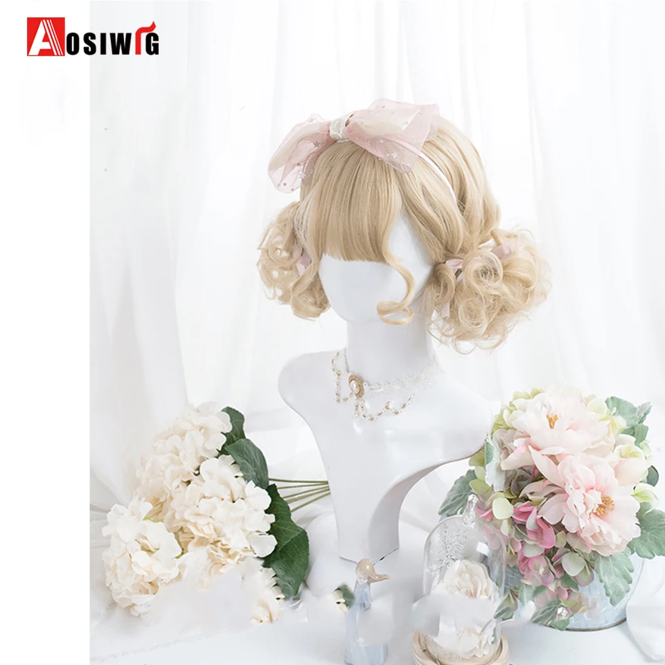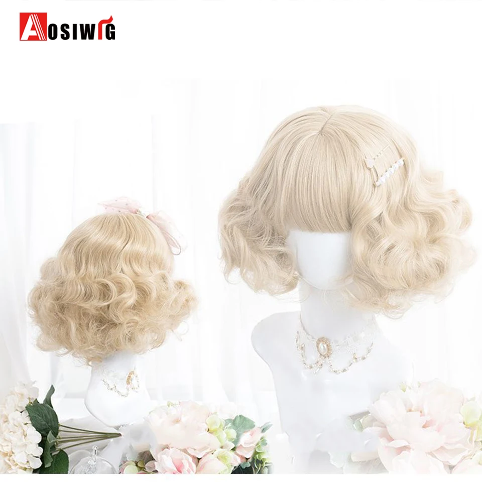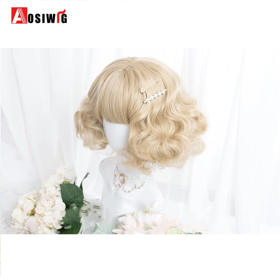 Short Wavy Curly Blonde Wigs With Bangs Synthetic Lolita Cosplay Natural Women Hair Wig For Daily Party