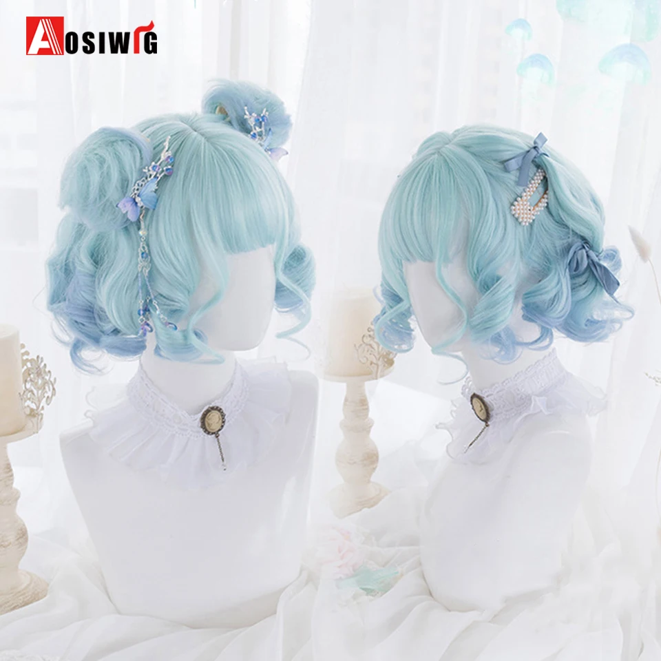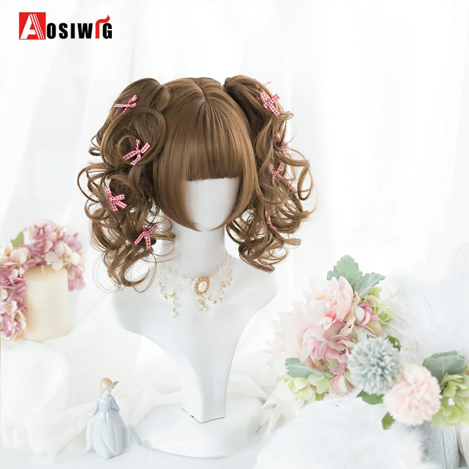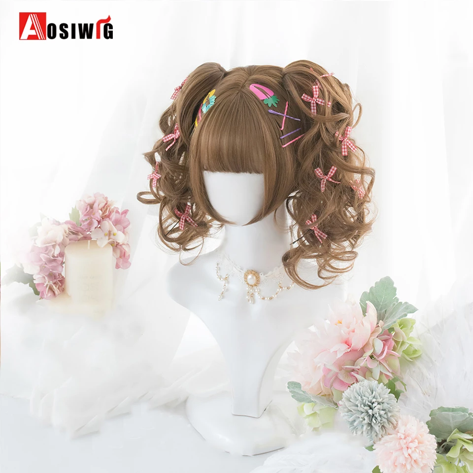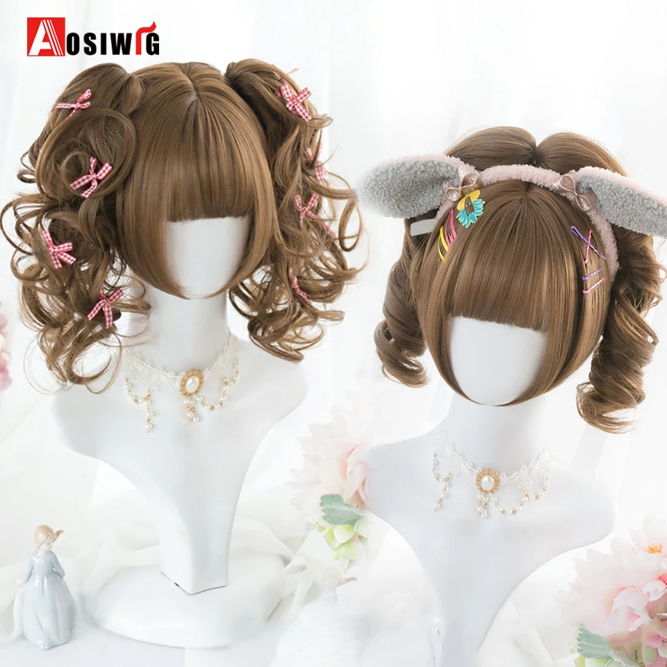 Short Wavy Curly Blonde Wigs With Bangs Synthetic Lolita Cosplay Natural Women Hair Wig For Daily Party