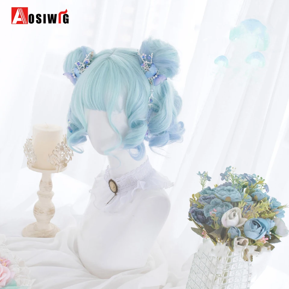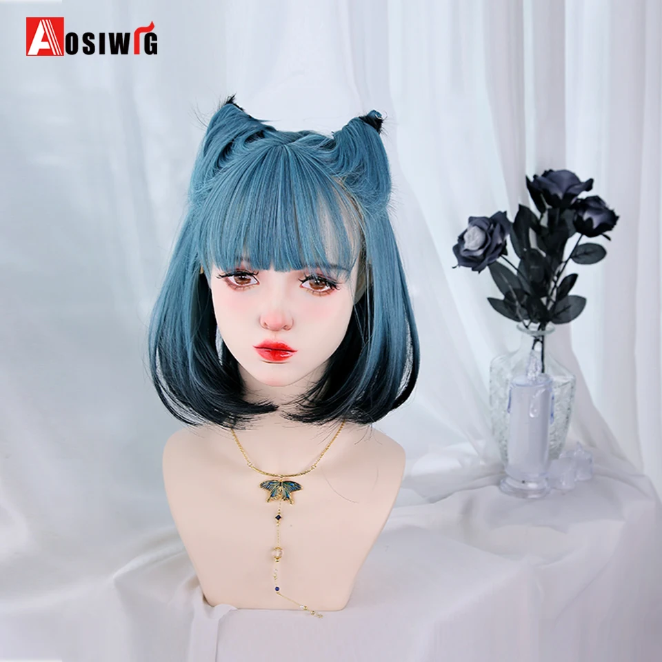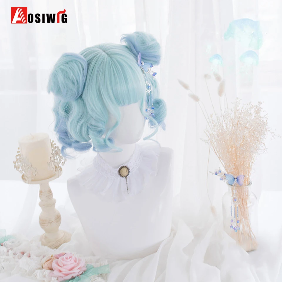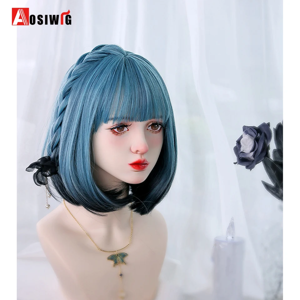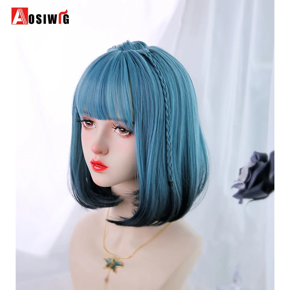 Short Wavy Curly Blonde Wigs With Bangs Synthetic Lolita Cosplay Natural Women Hair Wig For Daily Party