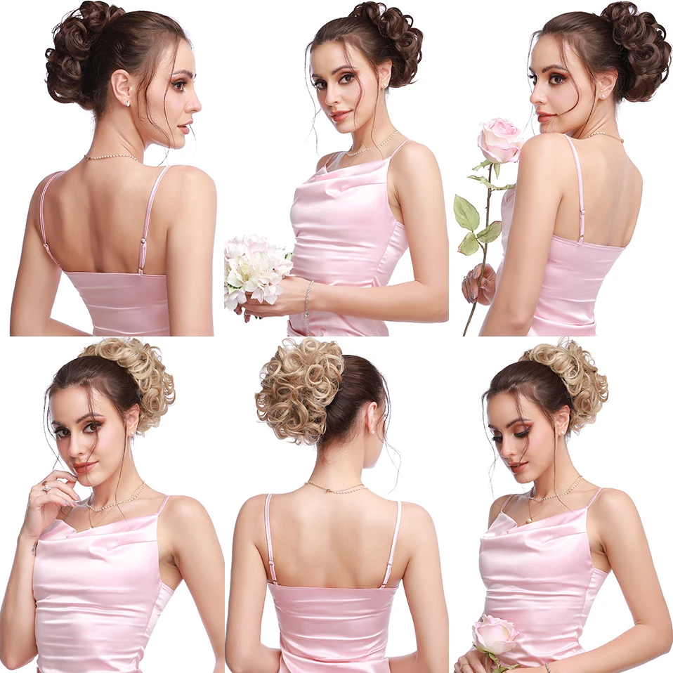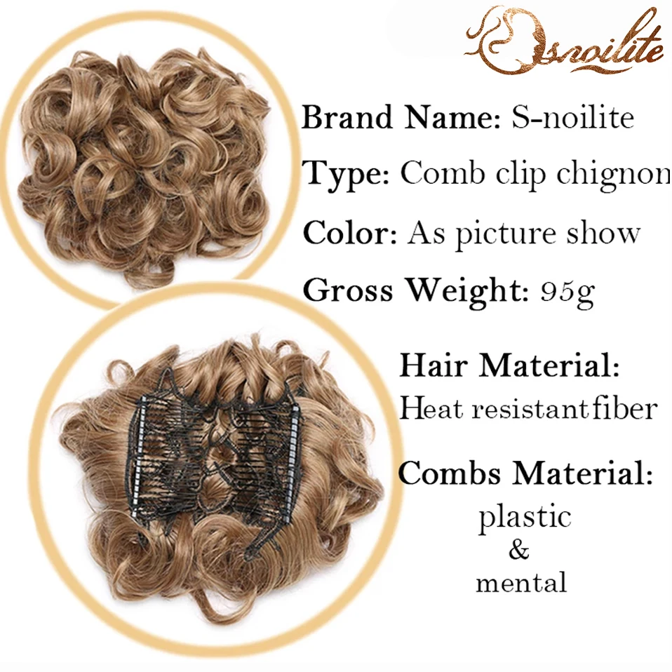Snoilite Synthetic Hair Bun Brown Blonde Curly Chignon Messy Bun Comb Clip In Hair Extension Updo Chignon Hairpieces For Women