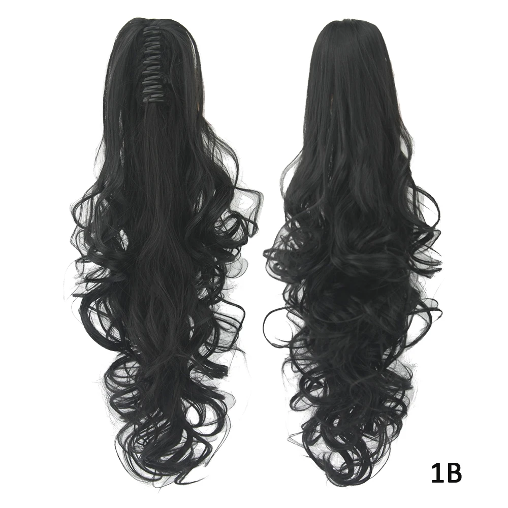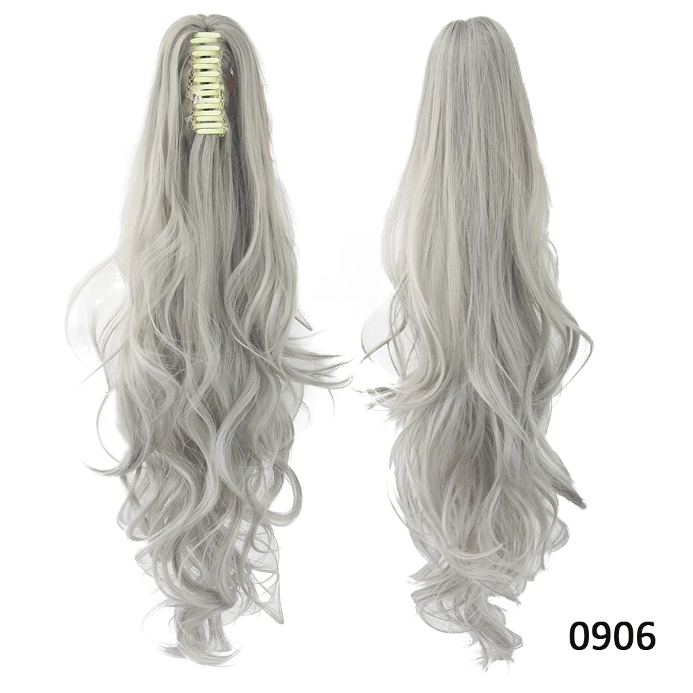 Soowee Black Gray Wavy Synthetic Hair Pony Tail Claw Ponytail Clip In Hair Extensions Hairpiece Hair Accessories for Women