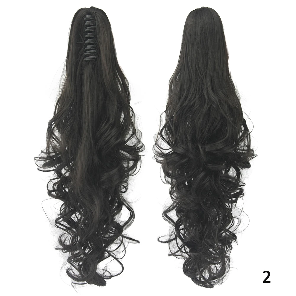Soowee Black Gray Wavy Synthetic Hair Pony Tail Claw Ponytail Clip In Hair Extensions Hairpiece Hair Accessories for Women