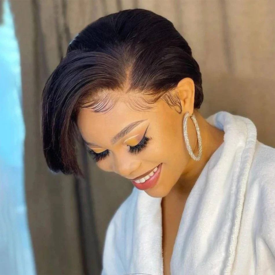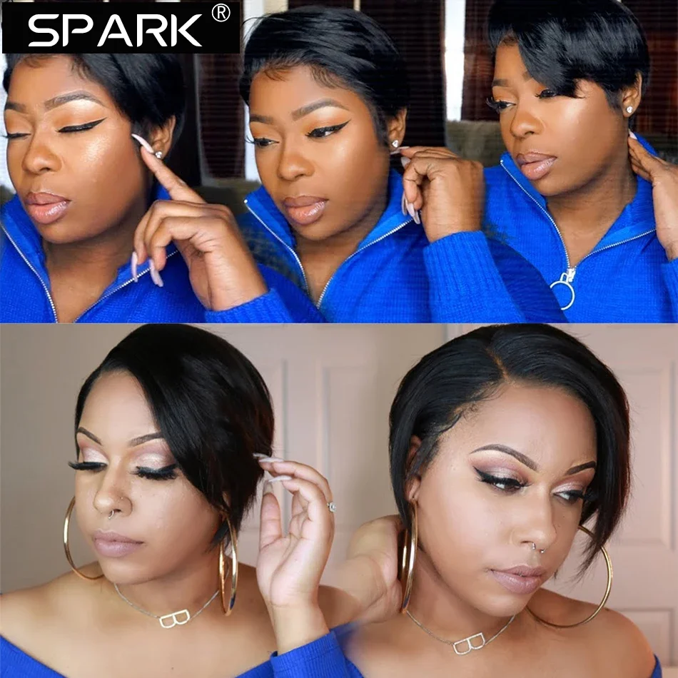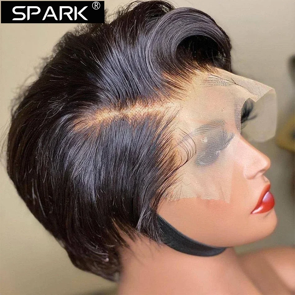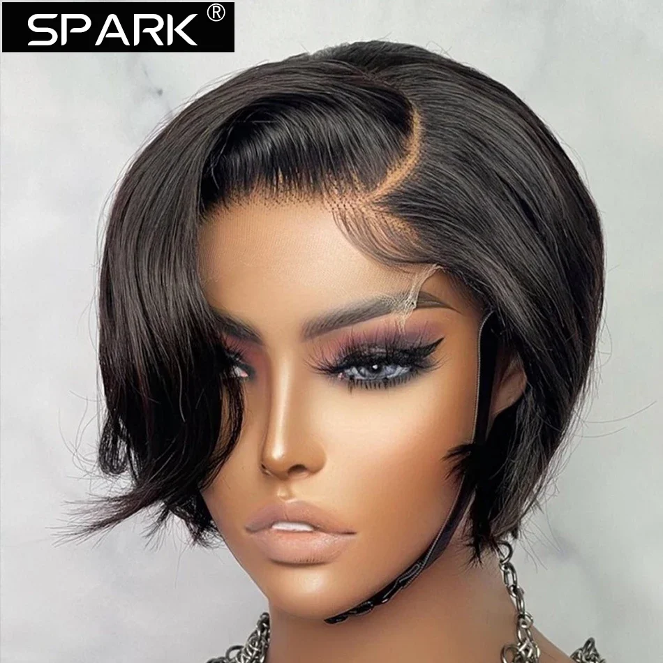 SPARK Pixie Cut Wig Short Straight Bob Human Hair Wigs Transparent Lace Wig For Women PrePlucked Lace Wigs Perruque Femme