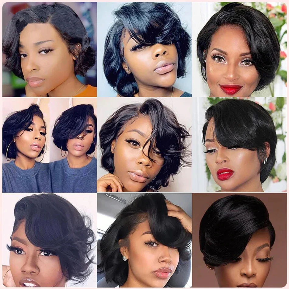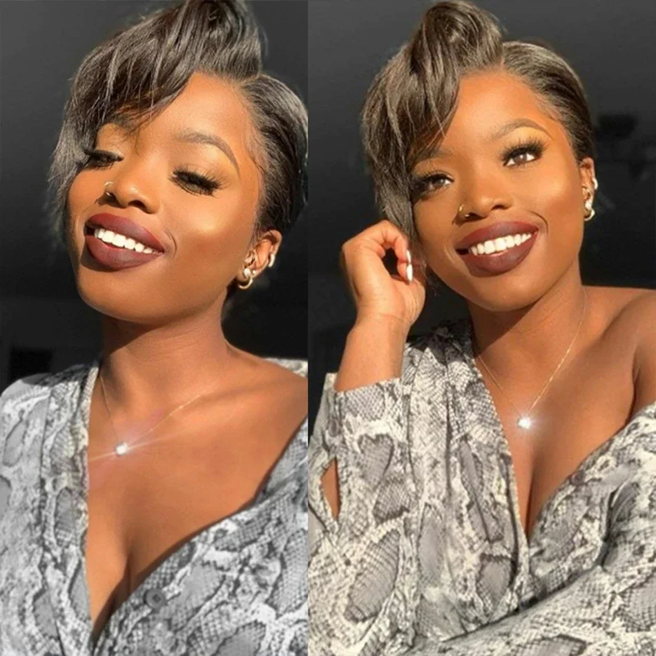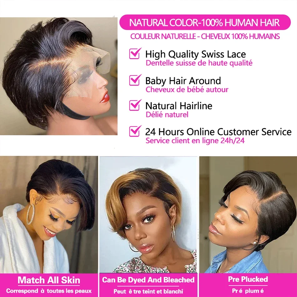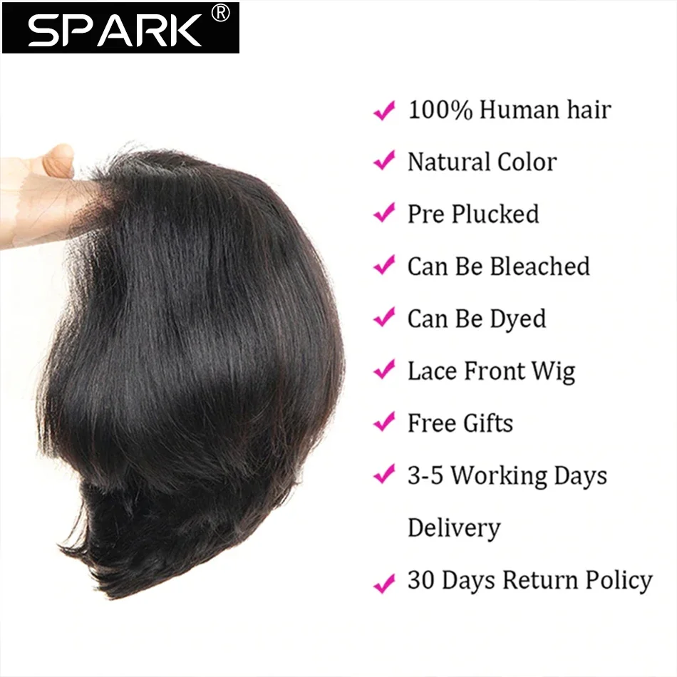 SPARK Pixie Cut Wig Short Straight Bob Human Hair Wigs Transparent Lace Wig For Women PrePlucked Lace Wigs Perruque Femme