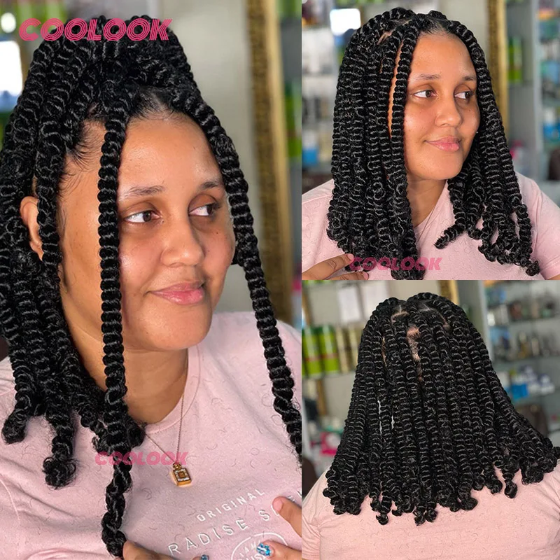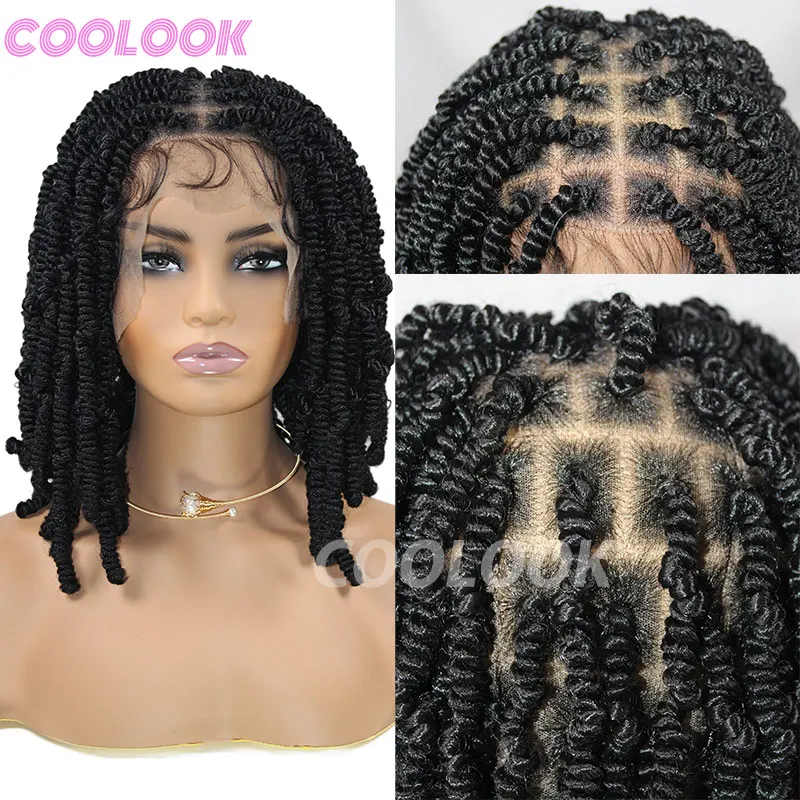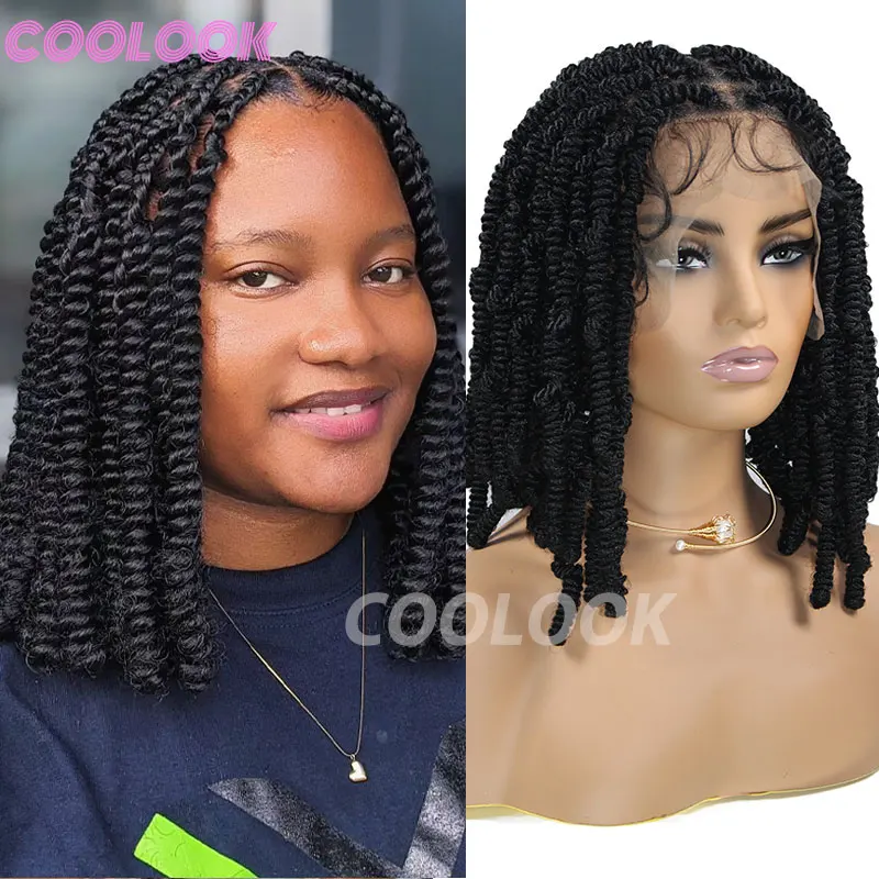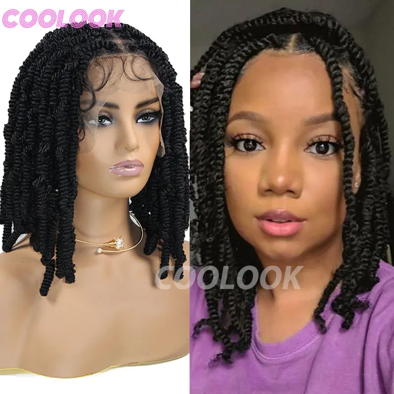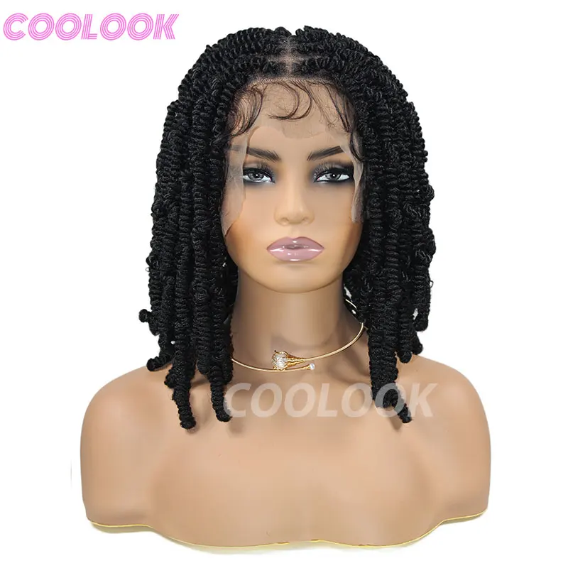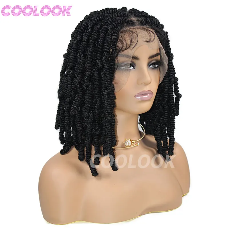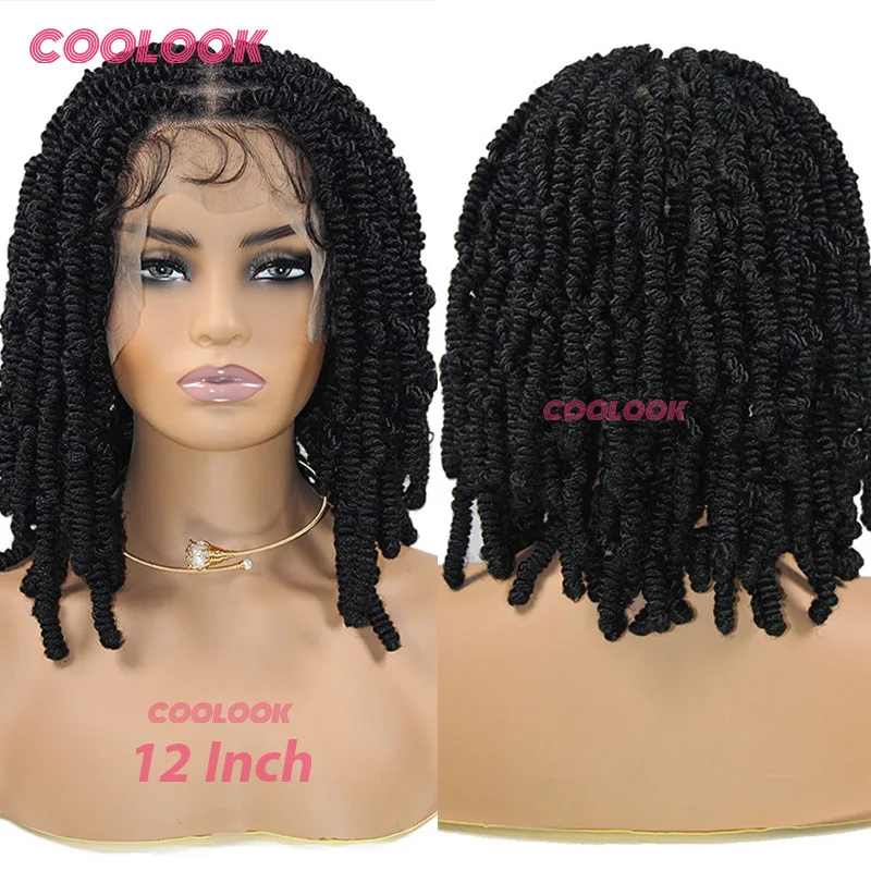 Spiral Curls Braided Wigs Spring Twist Hair 12 Inches Full Lace Curly Braided Wigs Afro Spring Crochet Dreadlocks Synthetic Wigs