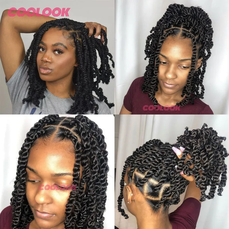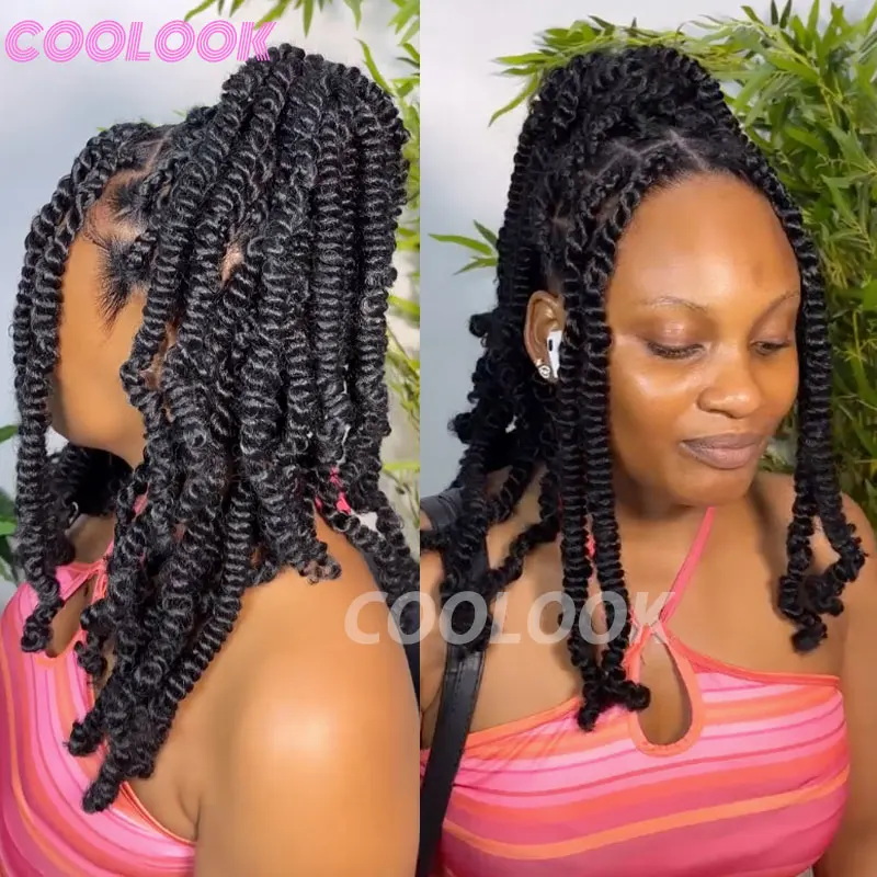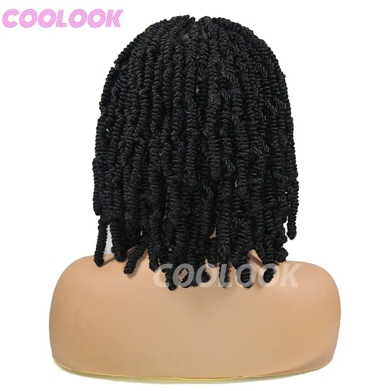 Spring Afro Twist Wig Dreadlock Wigs For Black Women 12" Bob Spiral Curls Wig Afro Braided Wigs Faux Locs Braiding Synthetic Wig