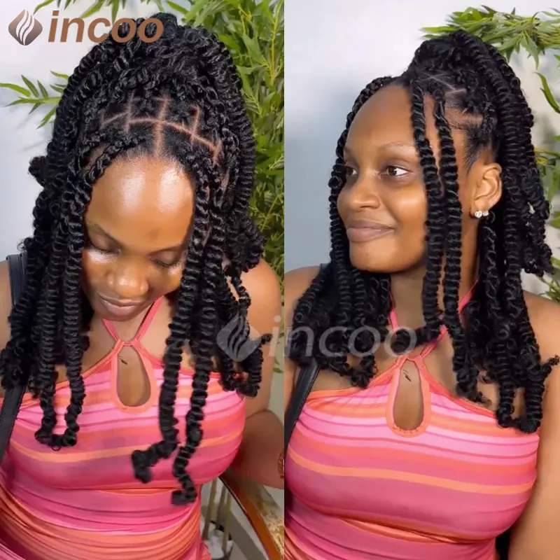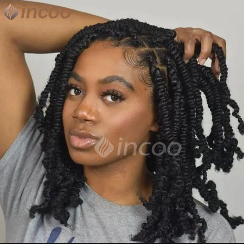Spring Afro Twist Wig Dreadlock Wigs For Black Women 12" Bob Spiral Curls Wig Afro Braided Wigs Faux Locs Braiding Synthetic Wig