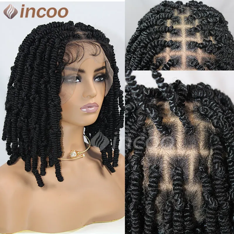 Spiral Curls Braided Wigs Synthetic Spring Twist Hair 12 Inches Full Lace Curly Braided Wigs Afro Spring Crochet Dreadlocks Wigs
