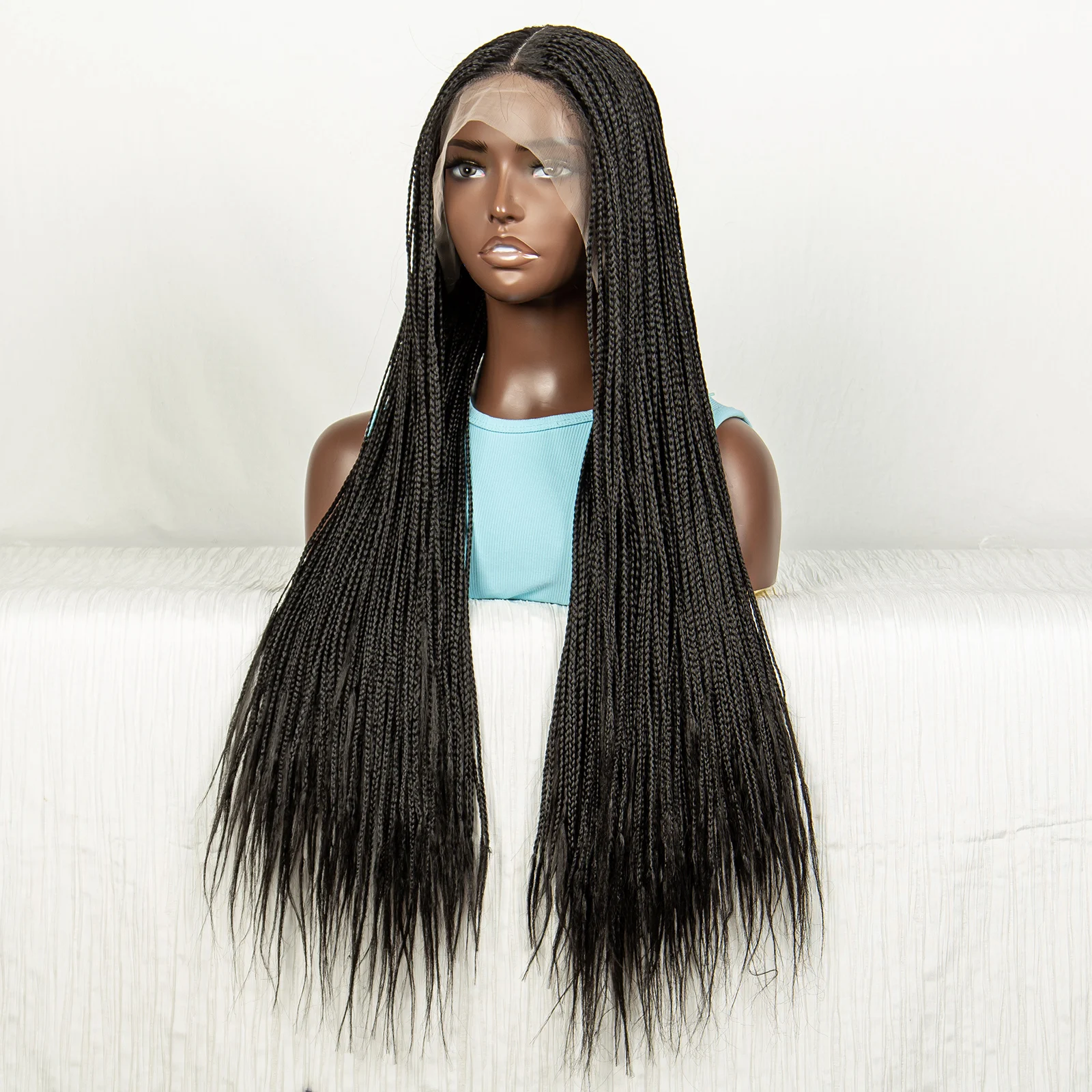 Straight Braided Wigs 32inch Synthetic Lace Front Braiding Hair Wig Transparent Lace Frontal Knotless Braided Wig with Baby Hair