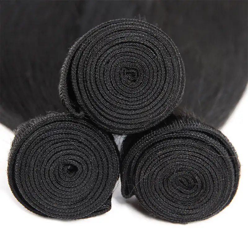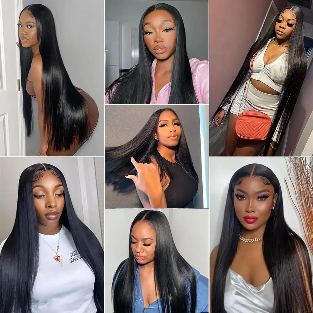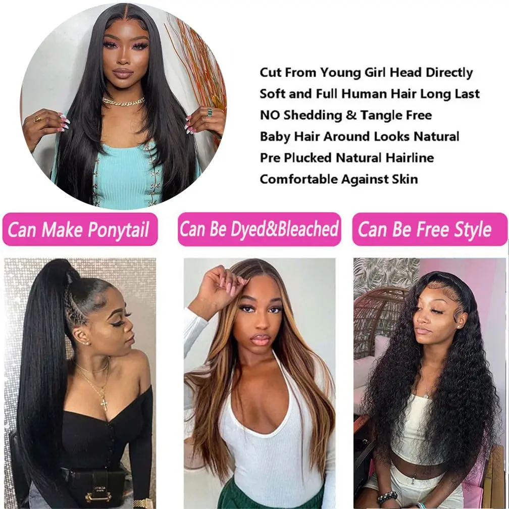 Straight Bundles and Closure Brazilian Human Hair 3 Bundles with 4x4 HD Closure Pre Plucked Natural Black Bundles with Closure