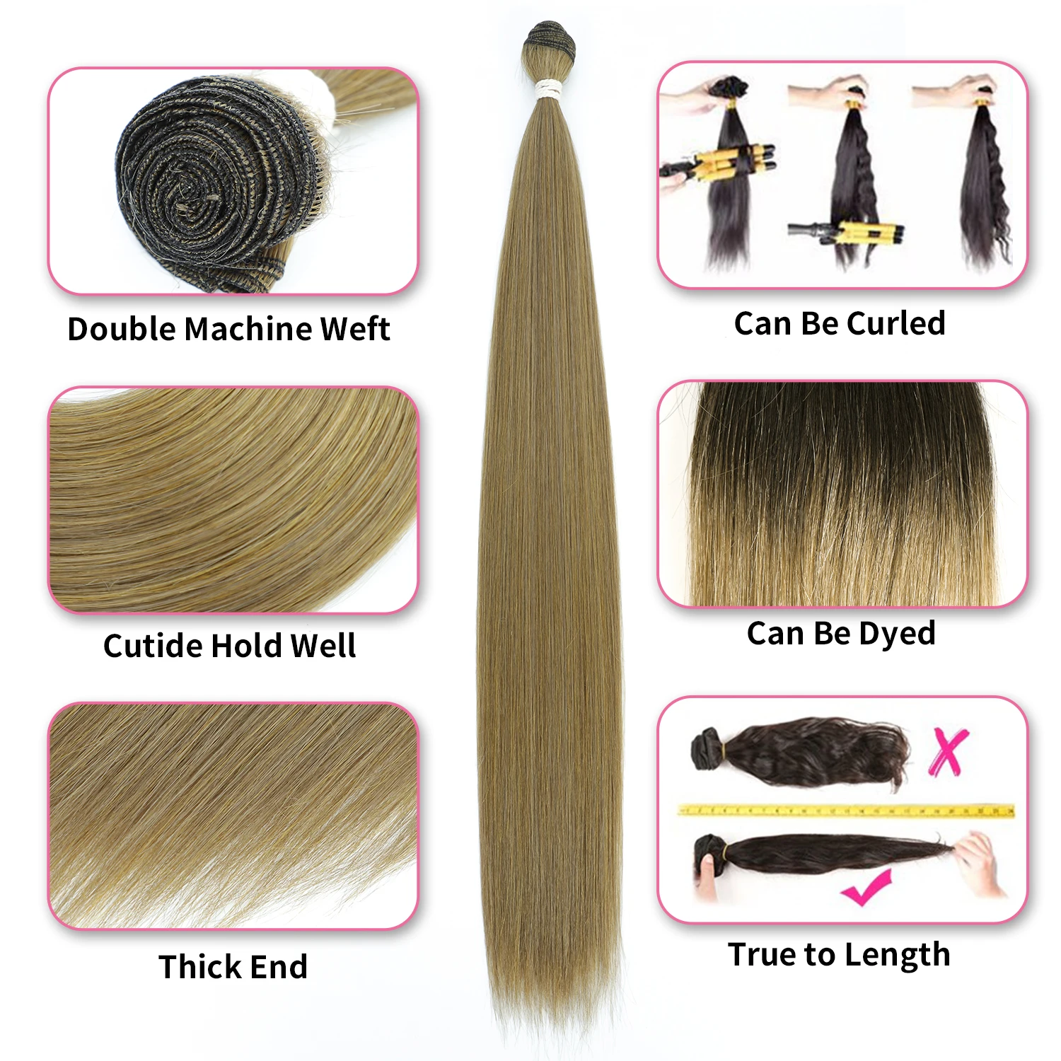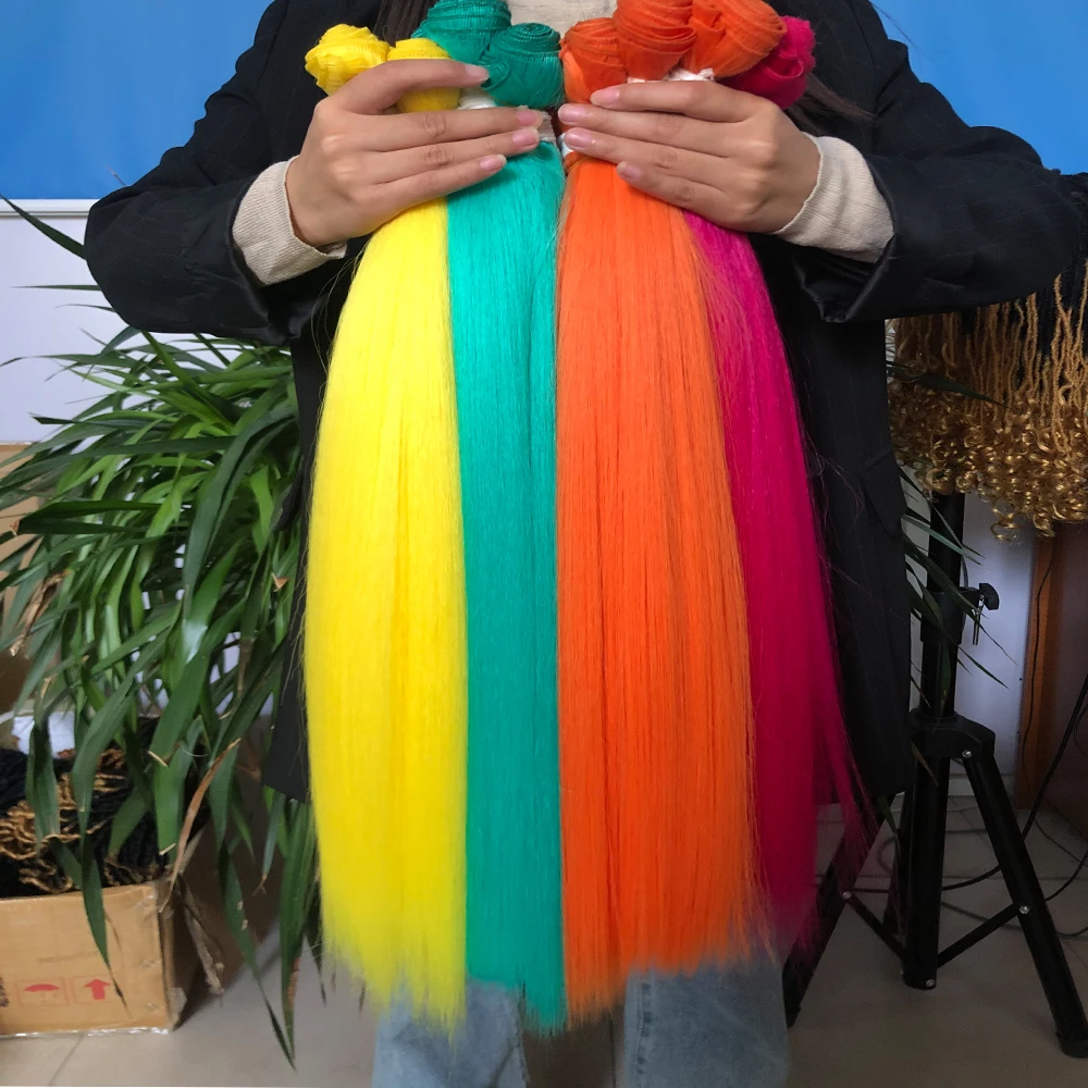Straight Bundles Synthetic With Weft Hair Straight Hair Extension Colorful 30 Inch For Women Straight Hair Weaving Full To En